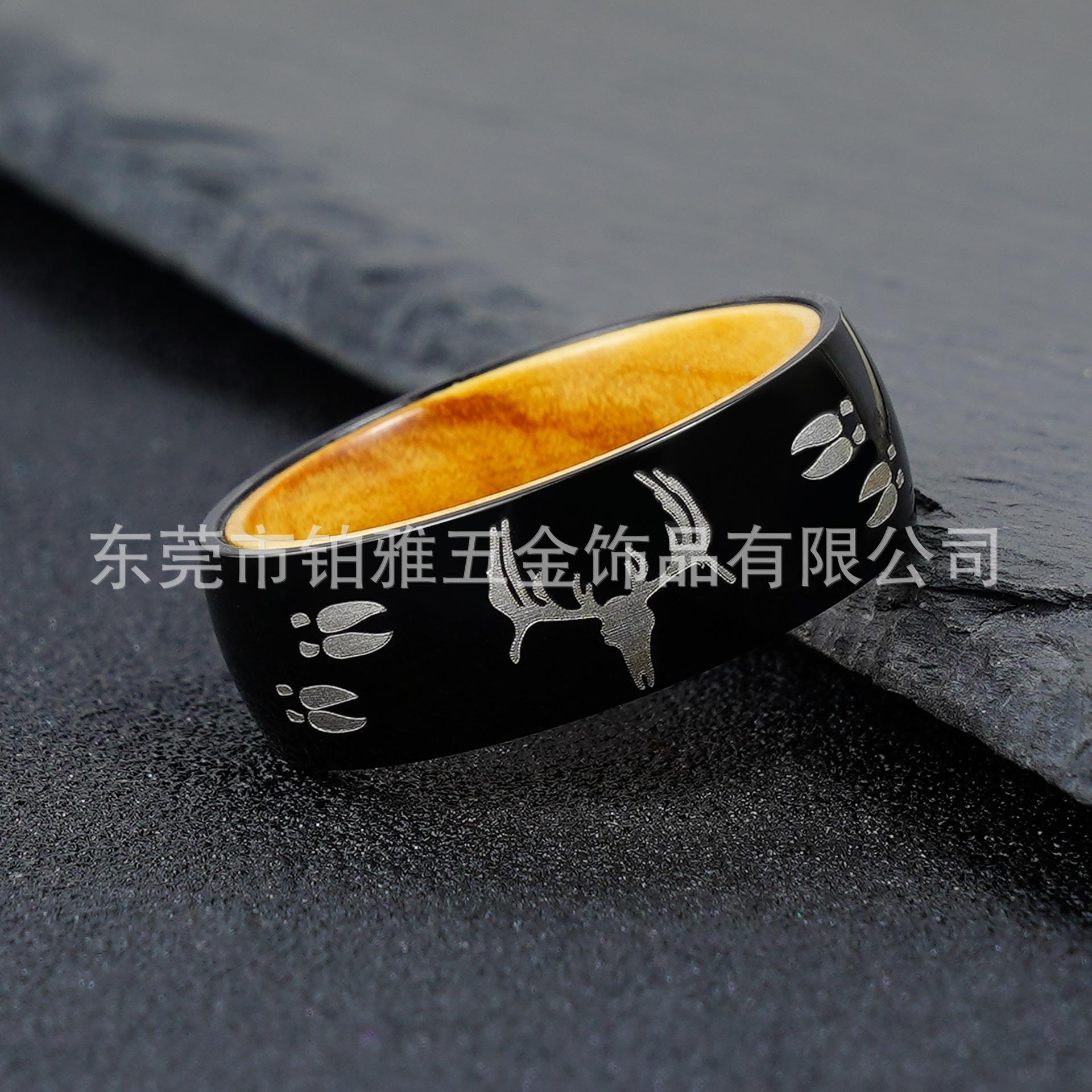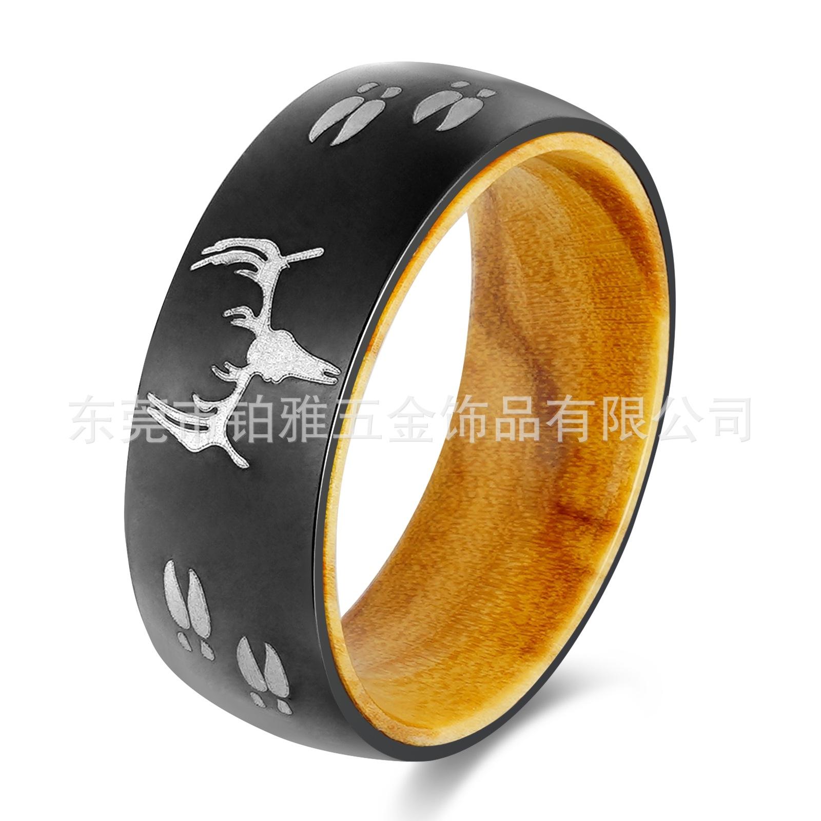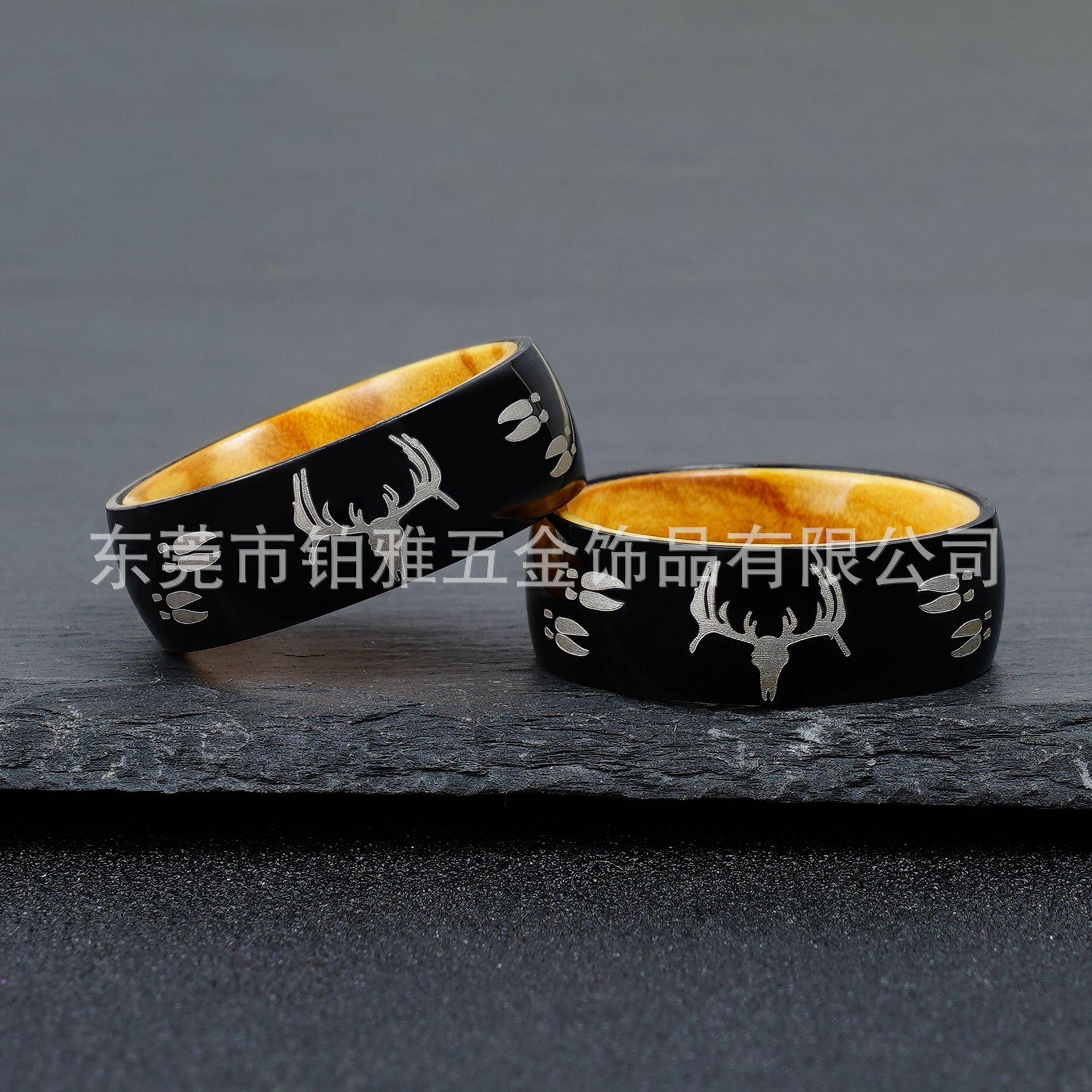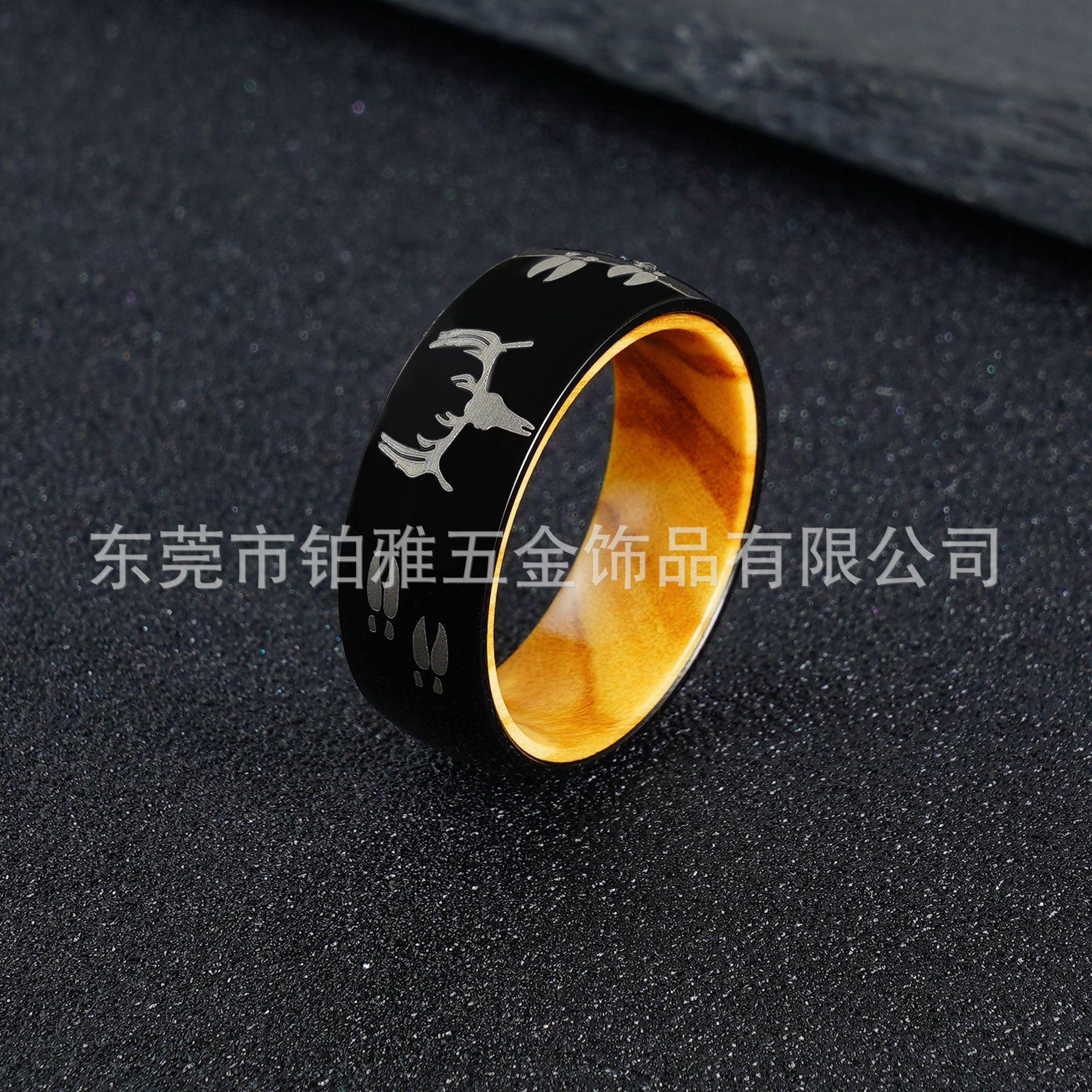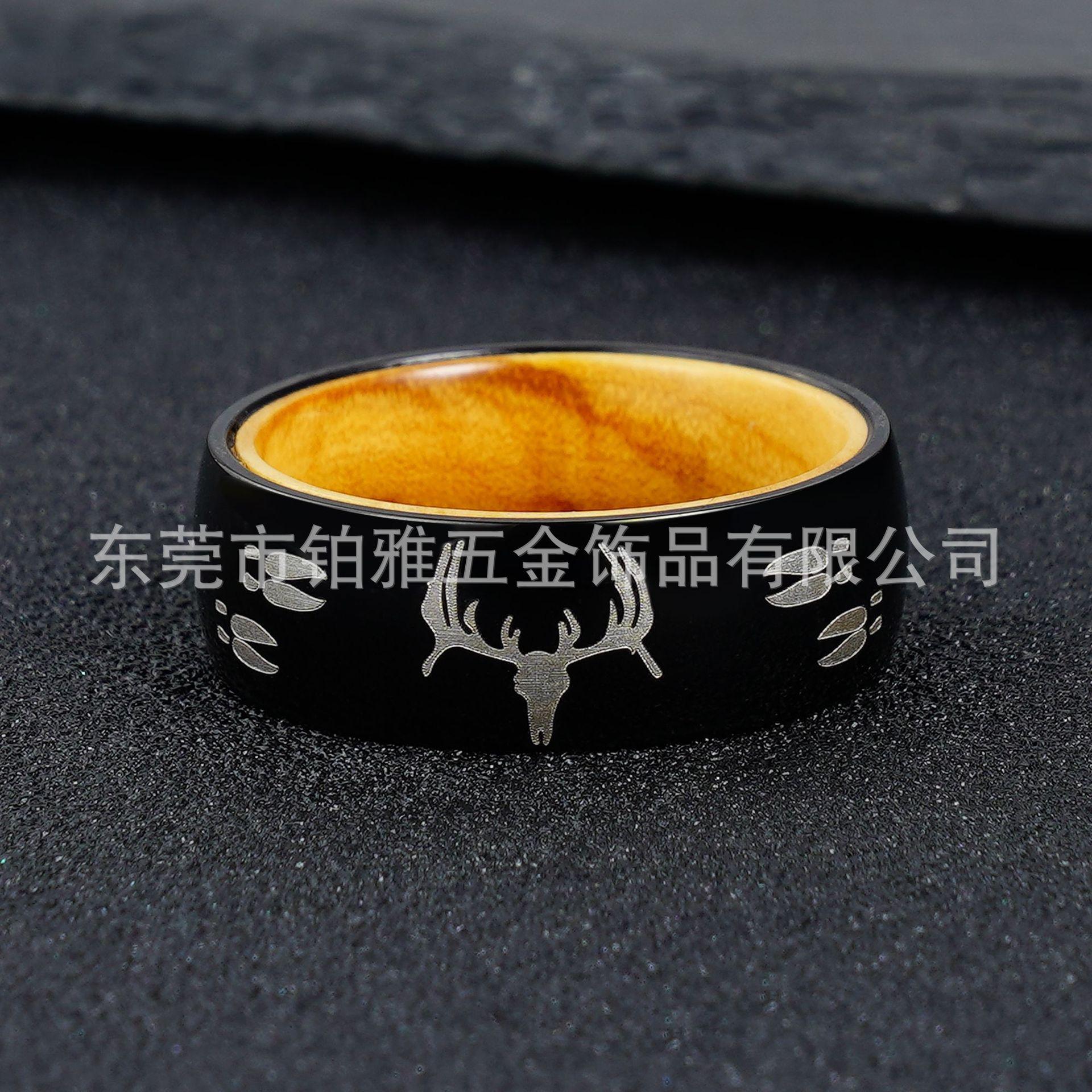 Compra Anillo de acero inoxidable con diseño de ciervo y flor exterior de madera de olivo, color negro eléctrico, 8 mm, para verano al por mayor en Joom.pro