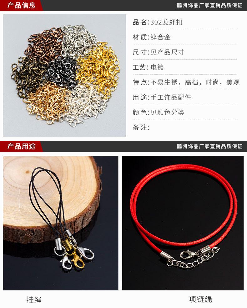 Cierre de langosta de aleación de zinc 302, hebilla colgante para joyería, accesorios, gancho para collar, pulsera, hebilla para bolso, venta al por mayor
