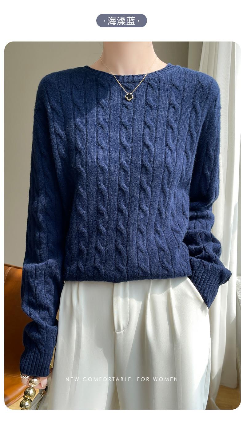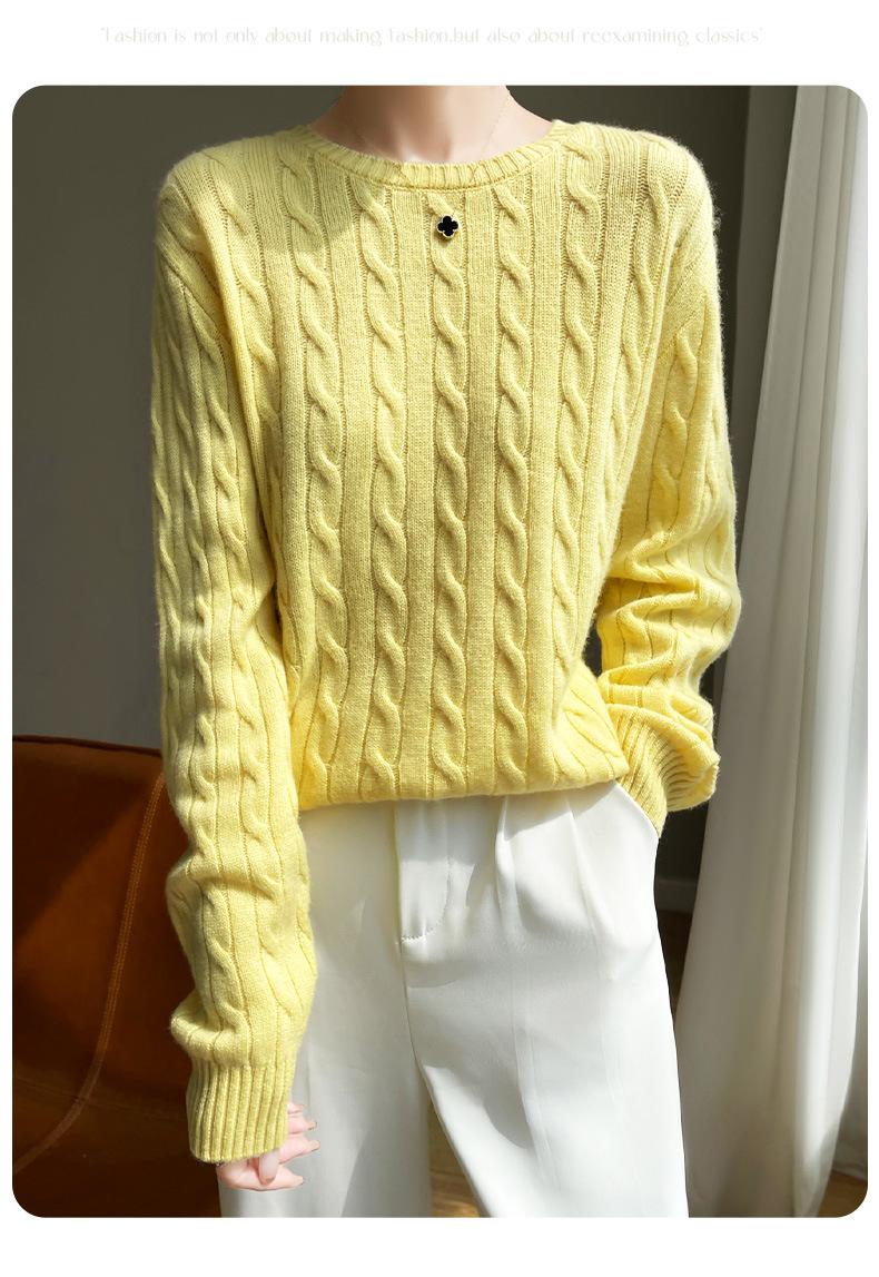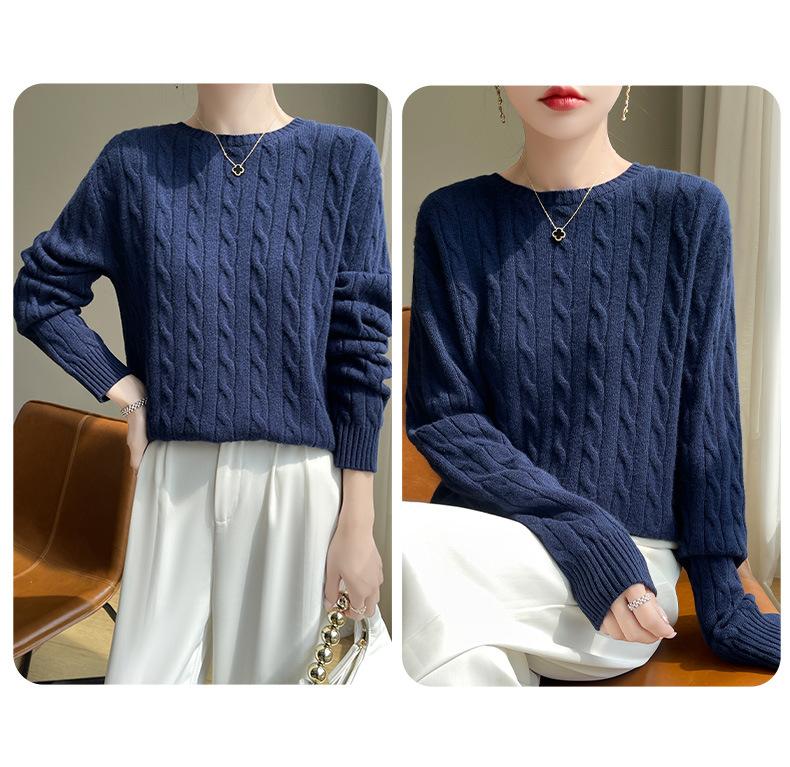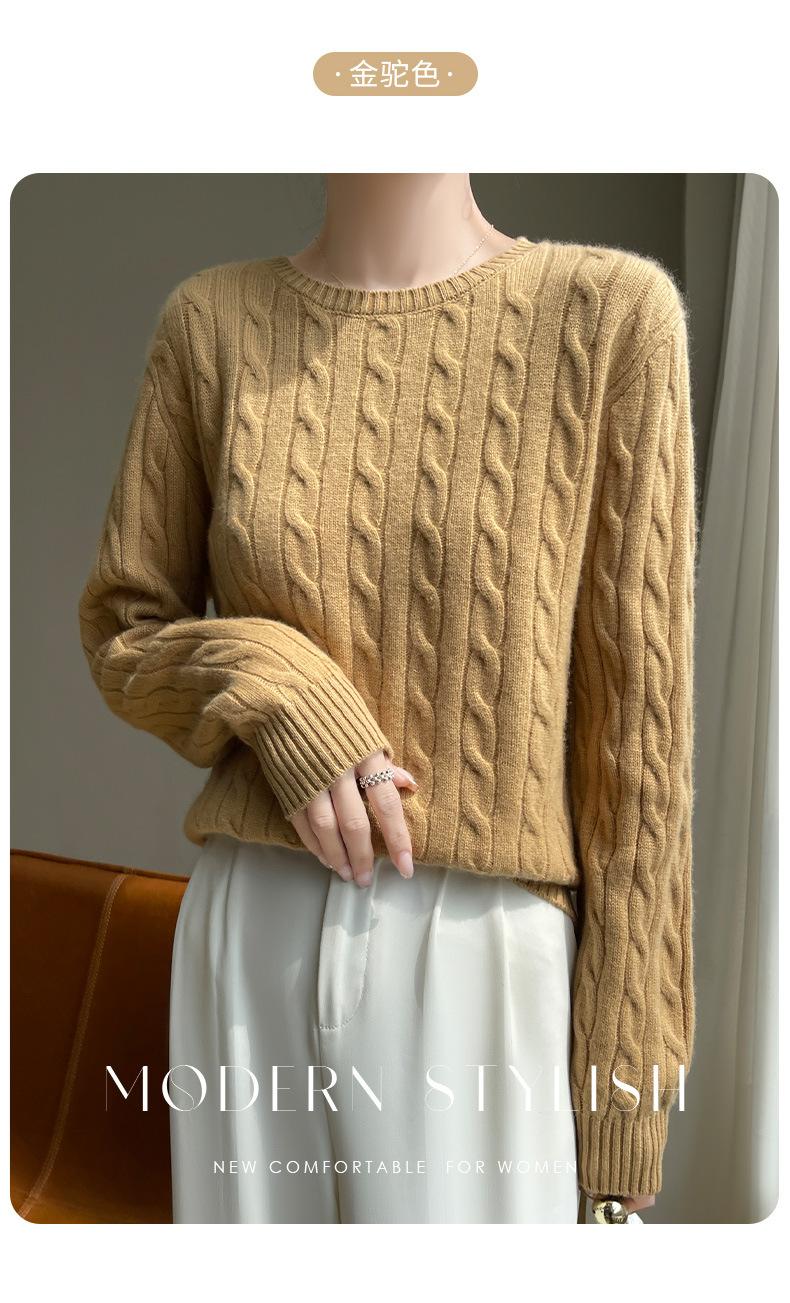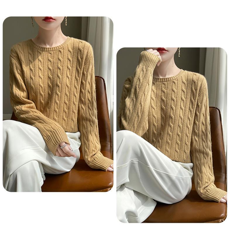 Suéter Grueso de Cuello Redondo con Trenzas para Mujer Camisa de Punto de Terciopelo Andy Nueva para Mujer Jersey de Trenzas de Manga Larga Suéter Básico para Mujer