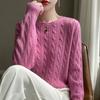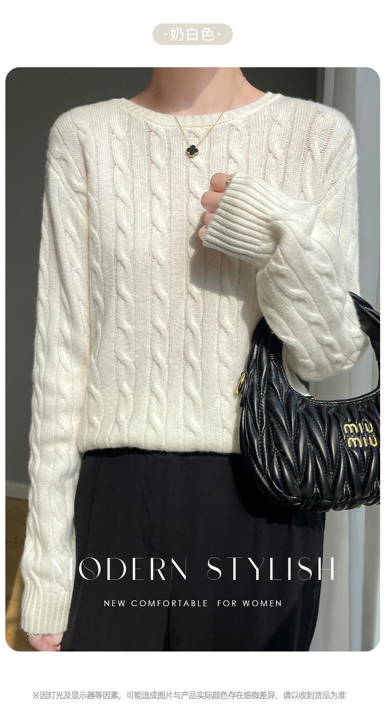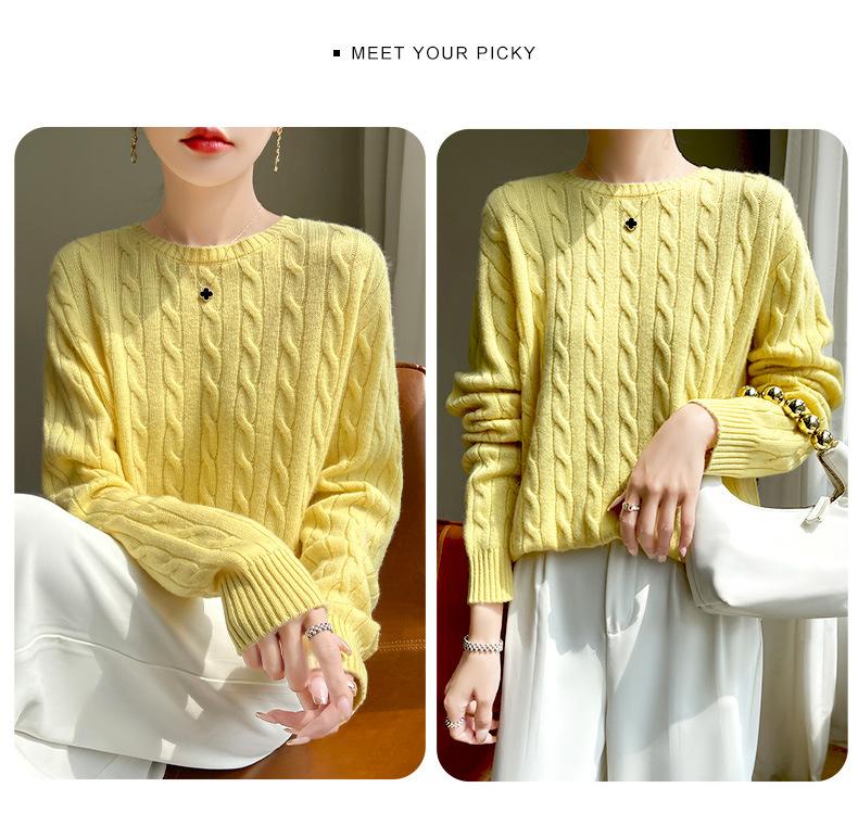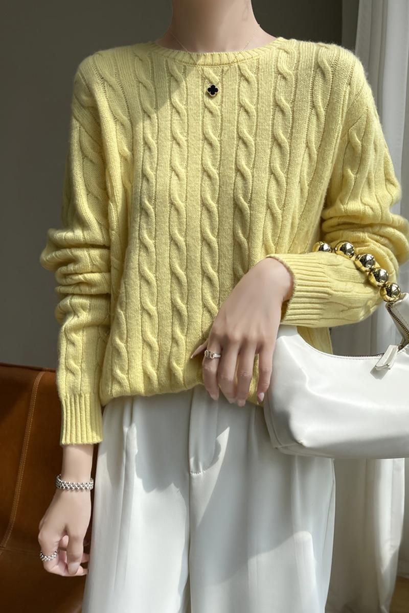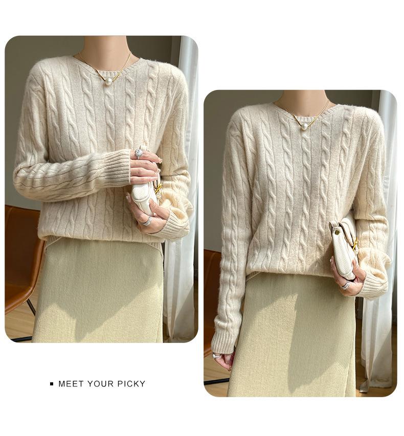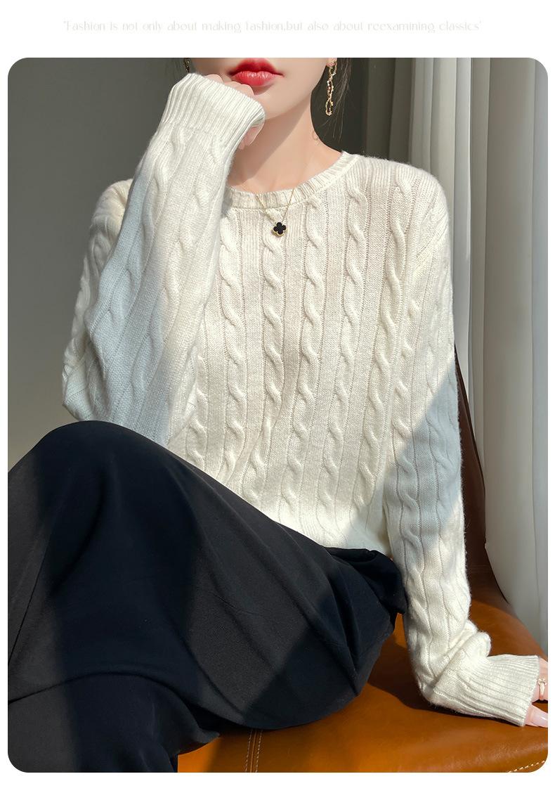 Suéter Grueso de Cuello Redondo con Trenzas para Mujer Camisa de Punto de Terciopelo Andy Nueva para Mujer Jersey de Trenzas de Manga Larga Suéter Básico para Mujer