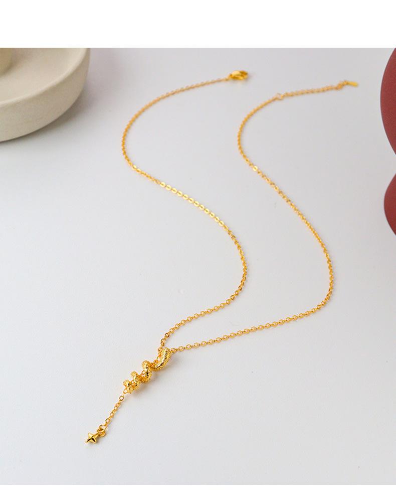 Nuevo Collar de Serpiente Enroscada de Moda, Nicho Elegante de Alta Gama, Versátil Retro Exquisito Cadena de Clavícula con Borla de Estrella