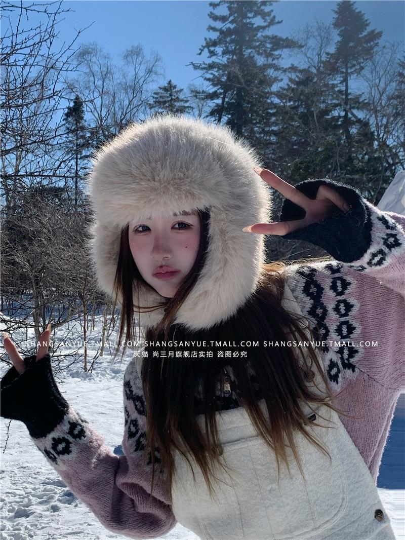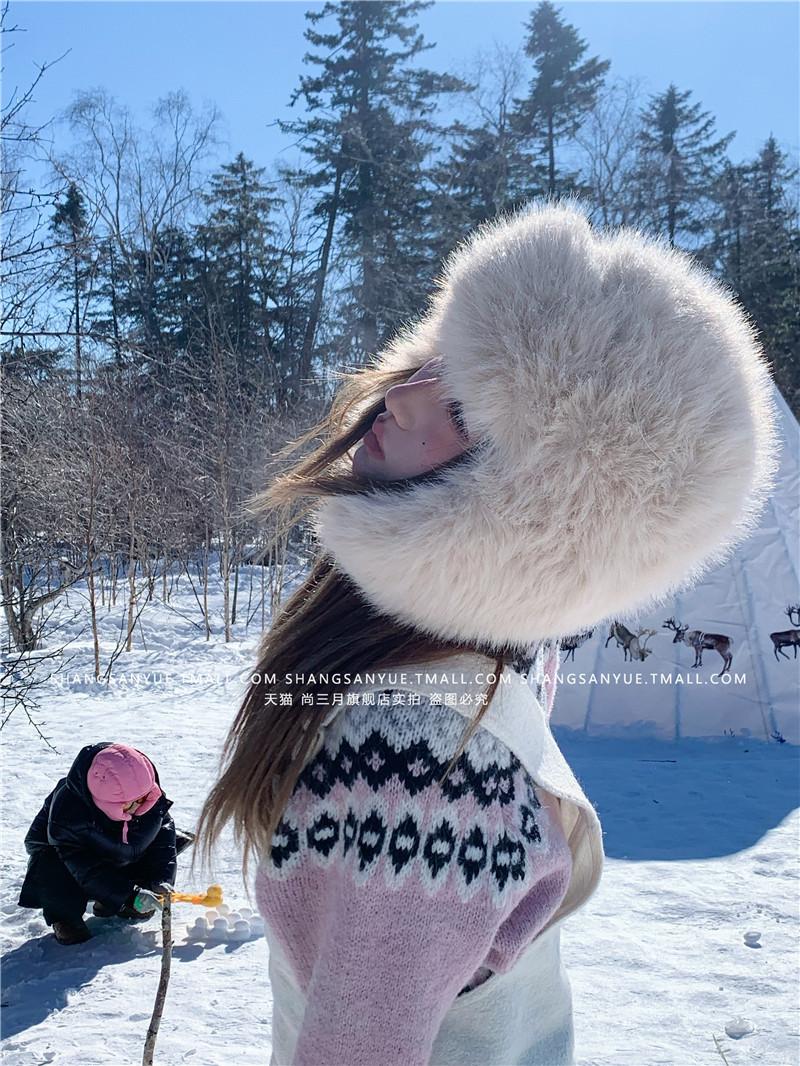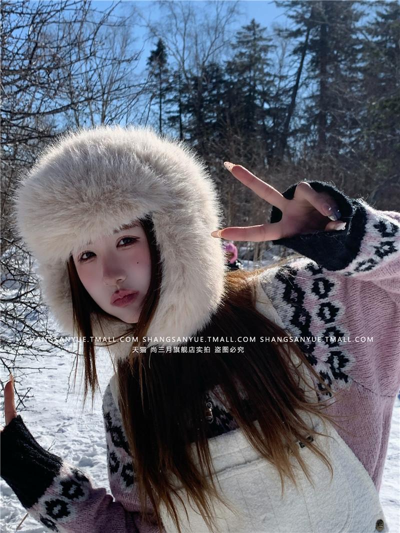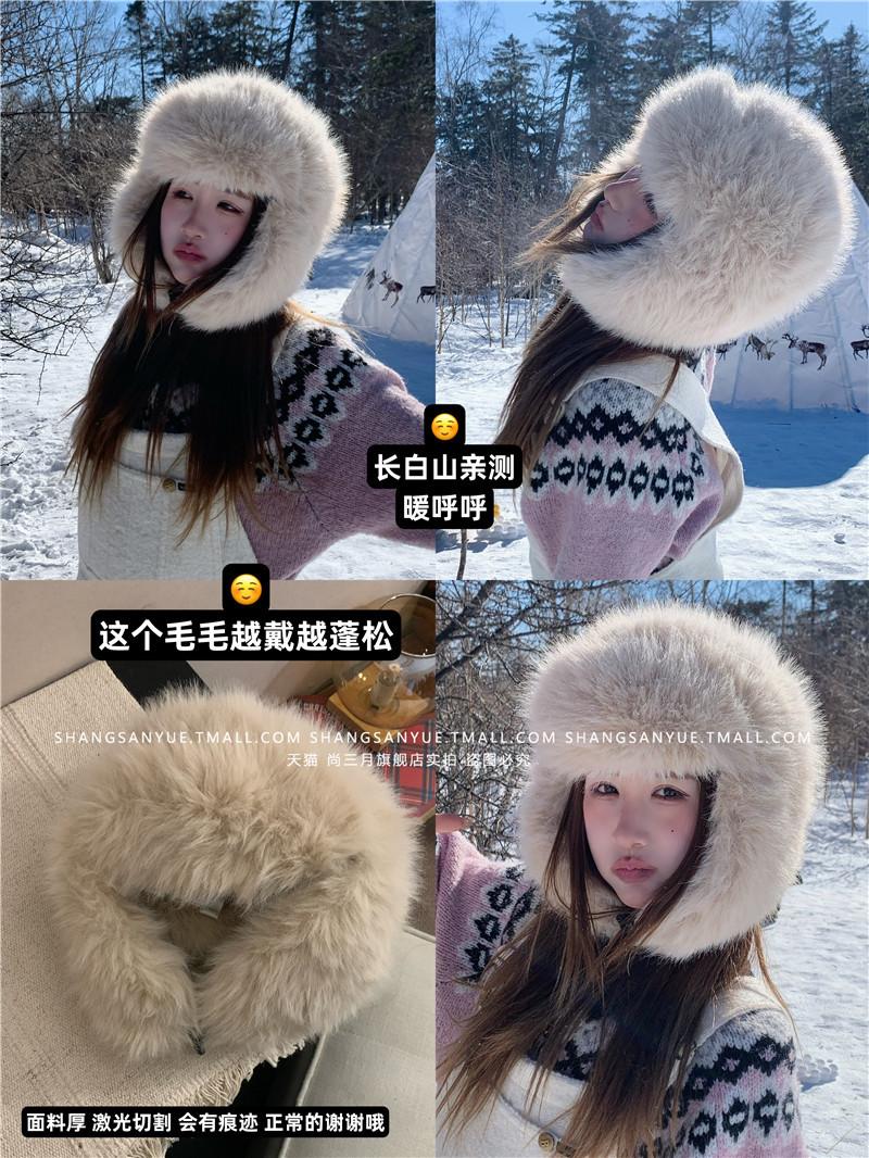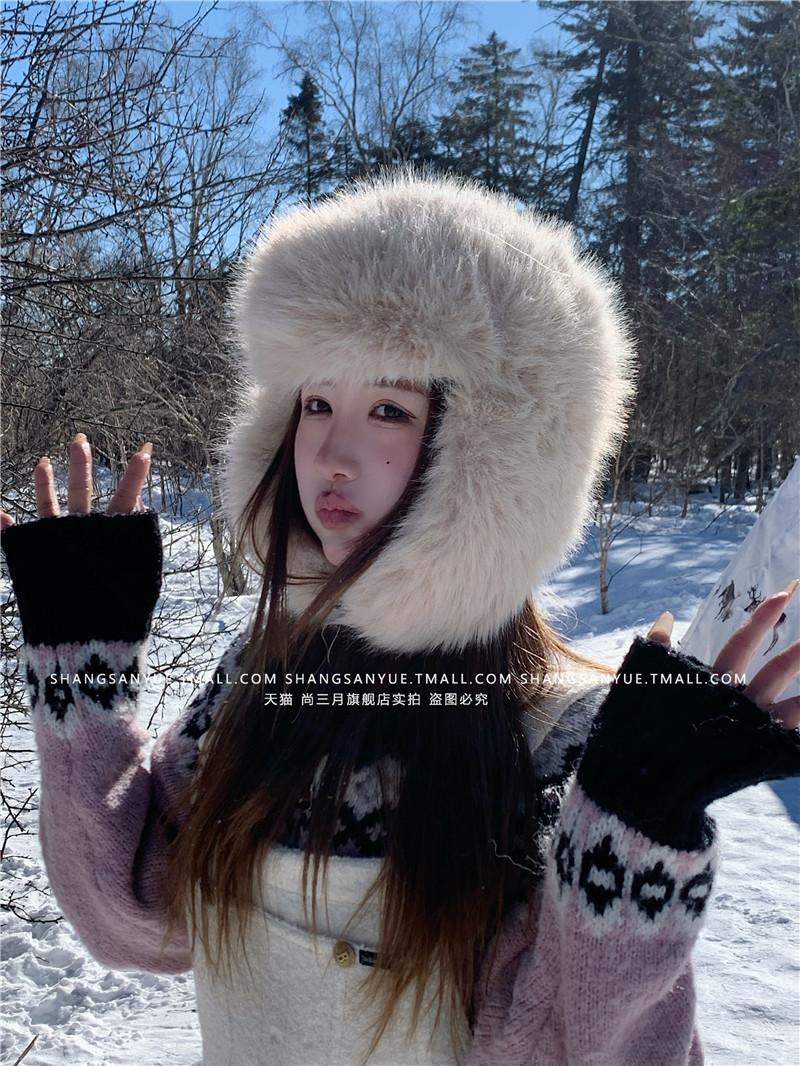 Gorro de Lei Feng de felpa con hebilla de cuerno para mujer, grueso y cálido, con protección para los oídos, para esquí del noreste, para ciclismo al aire libre y frío.