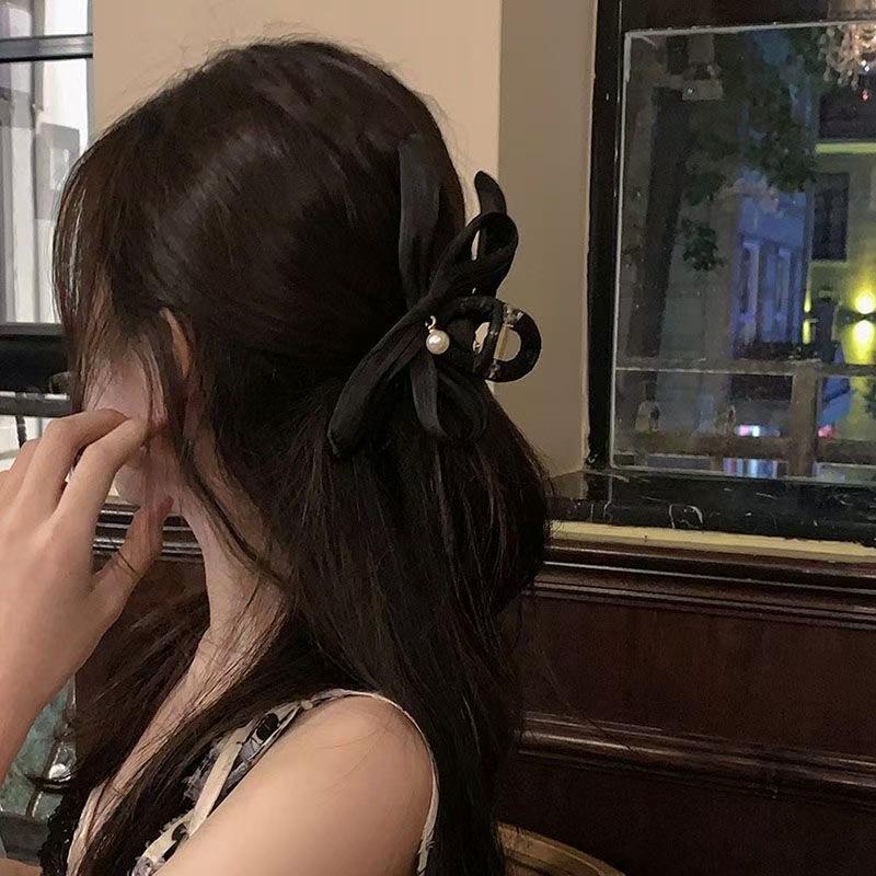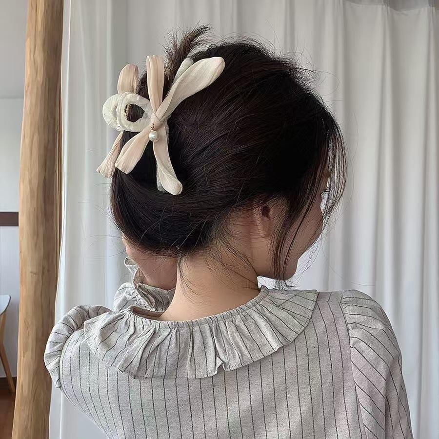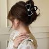 Elegante y de Alta Gama Pinza de Pelo Francesa con Lazo Plisado y Perla para Mujer con Cabello en la Parte Posterior de la Cabeza, Clip Grande de Tiburón