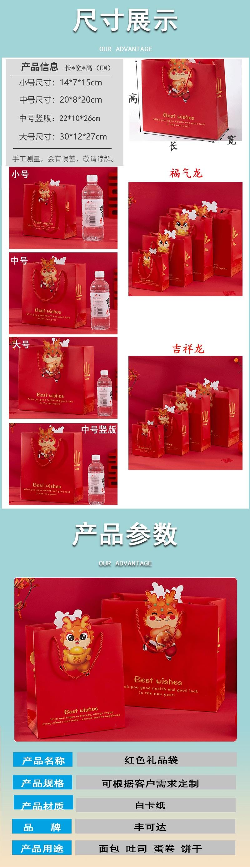 Bolsa de regalo de Año Nuevo de la marea nacional, bolsa de papel del Festival de Primavera del Año del Dragón, bolsa de bendición, bolsa de embalaje, venta al por mayor, se puede imprimir el logotipo20.25precio de descuento:20.25
