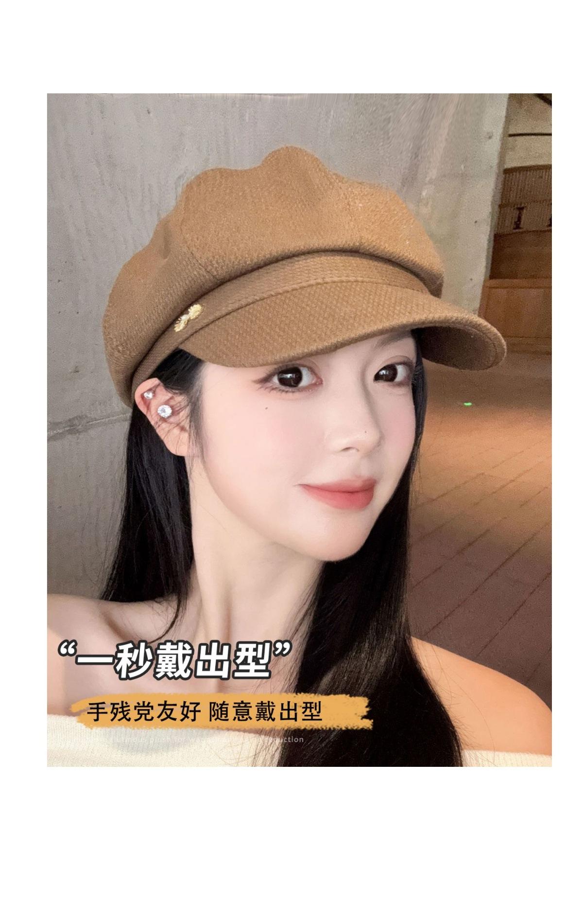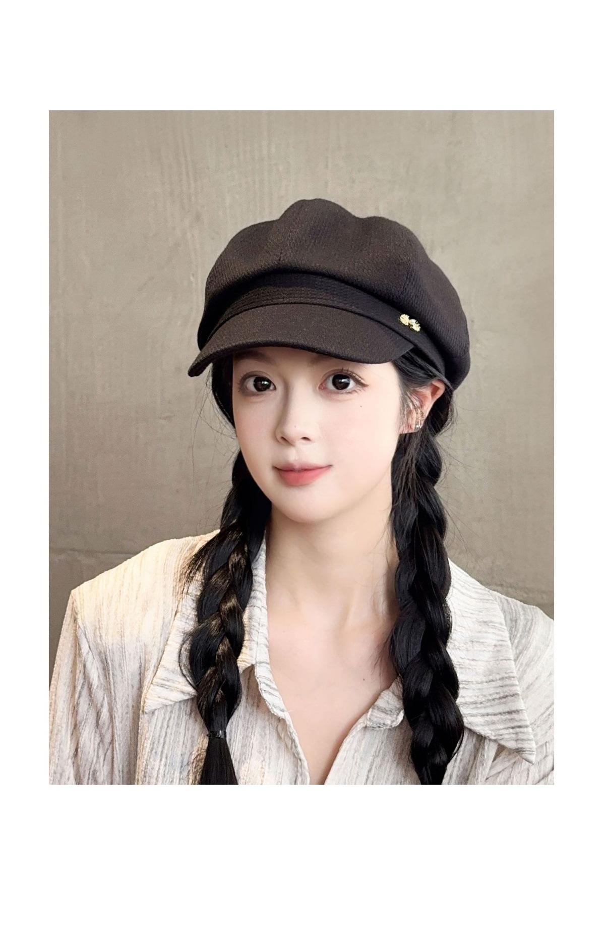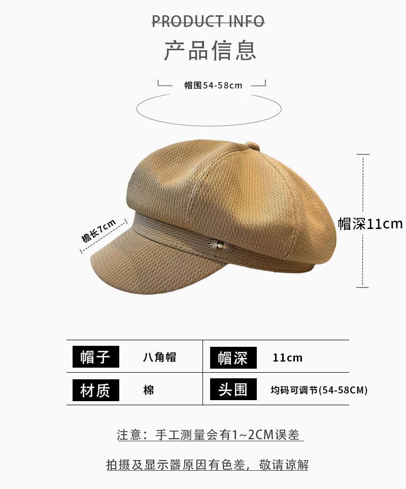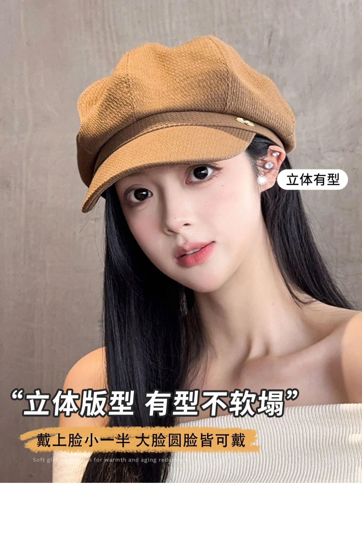 Sombrero Boina de Verano para Mujer Estilo Punk Gorra Octogonal Japonesa Cabeza Grande Retro Combinable Muestra Rostro Sombrero de Pintor Pequeño