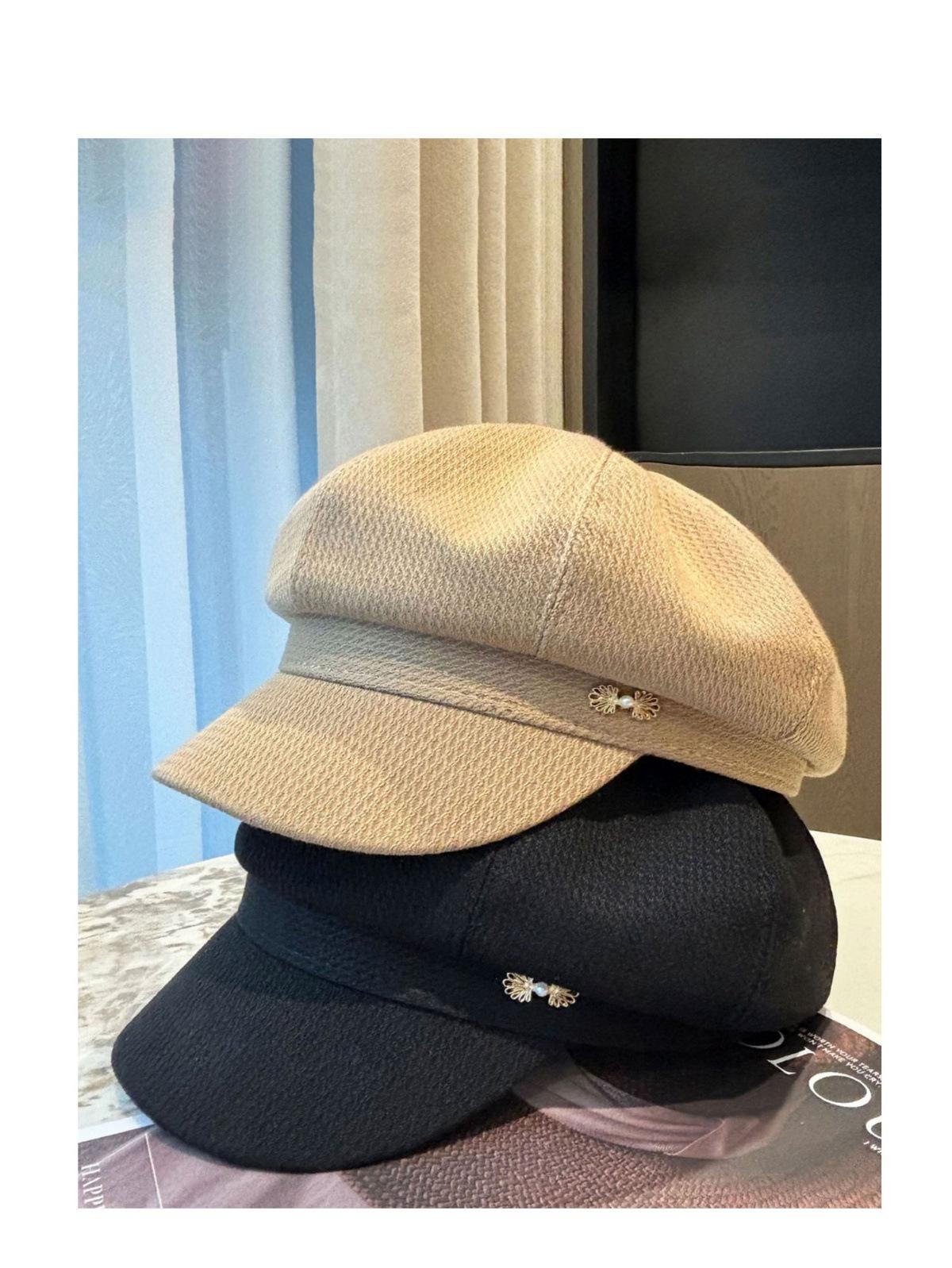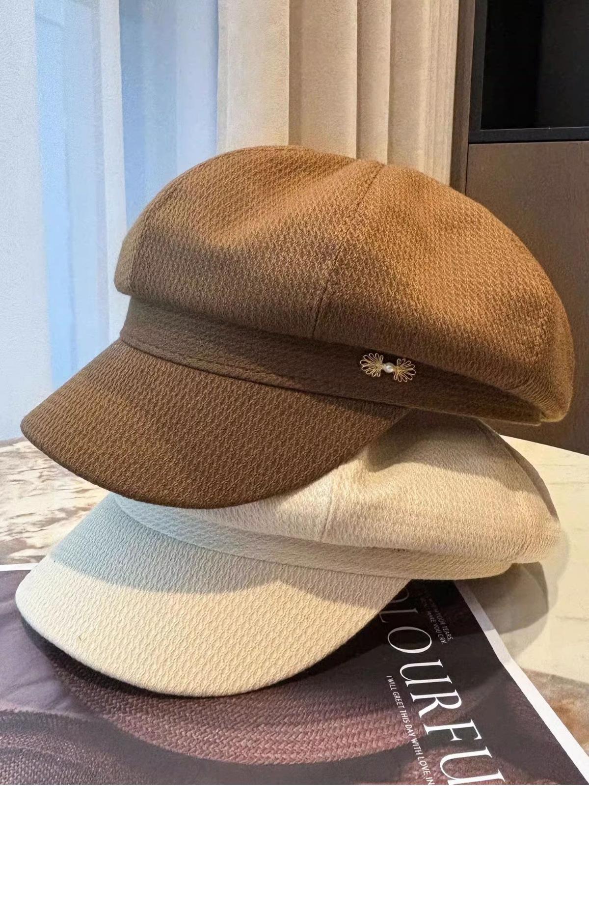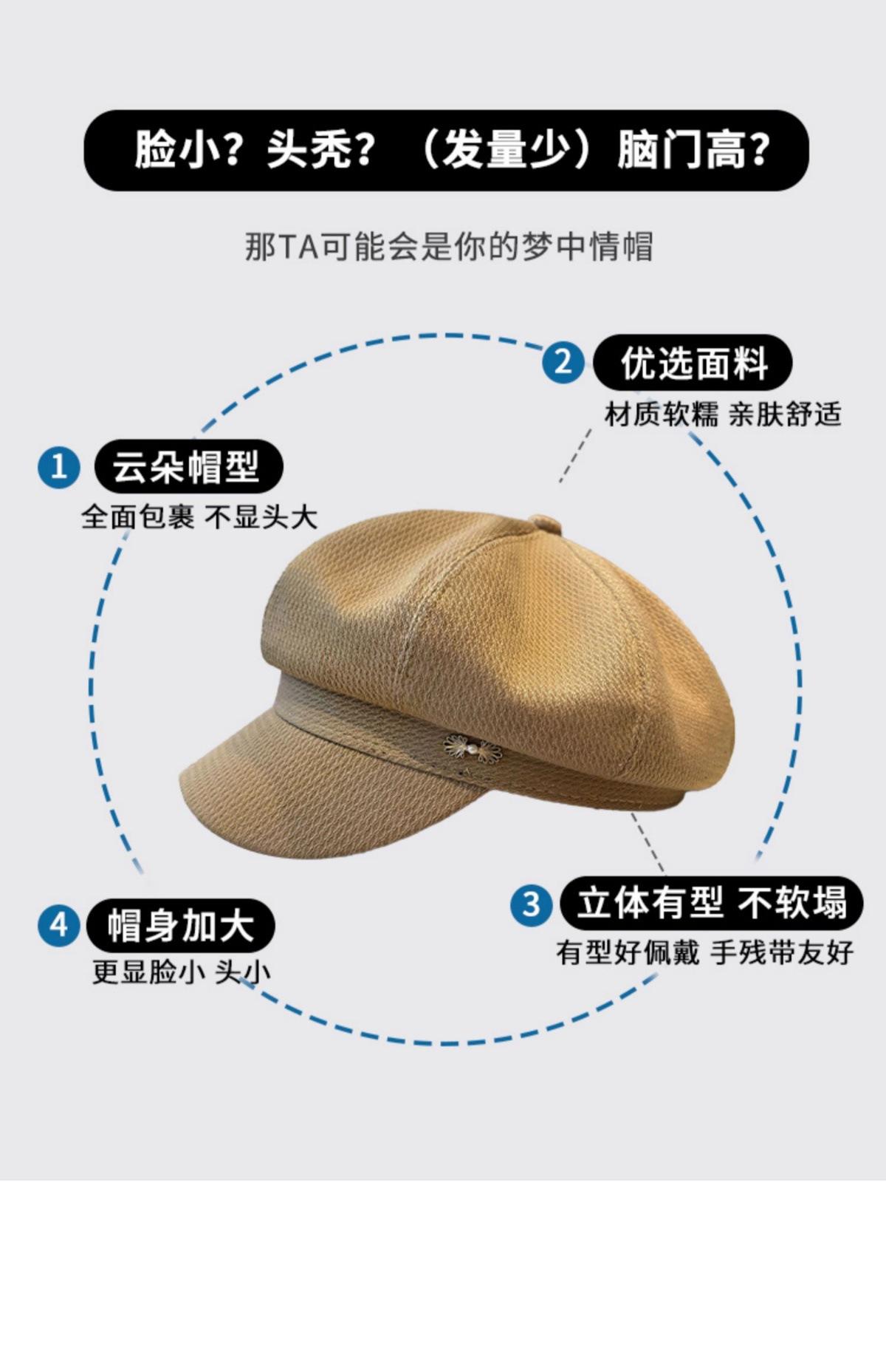 Sombrero Boina de Verano para Mujer Estilo Punk Gorra Octogonal Japonesa Cabeza Grande Retro Combinable Muestra Rostro Sombrero de Pintor Pequeño