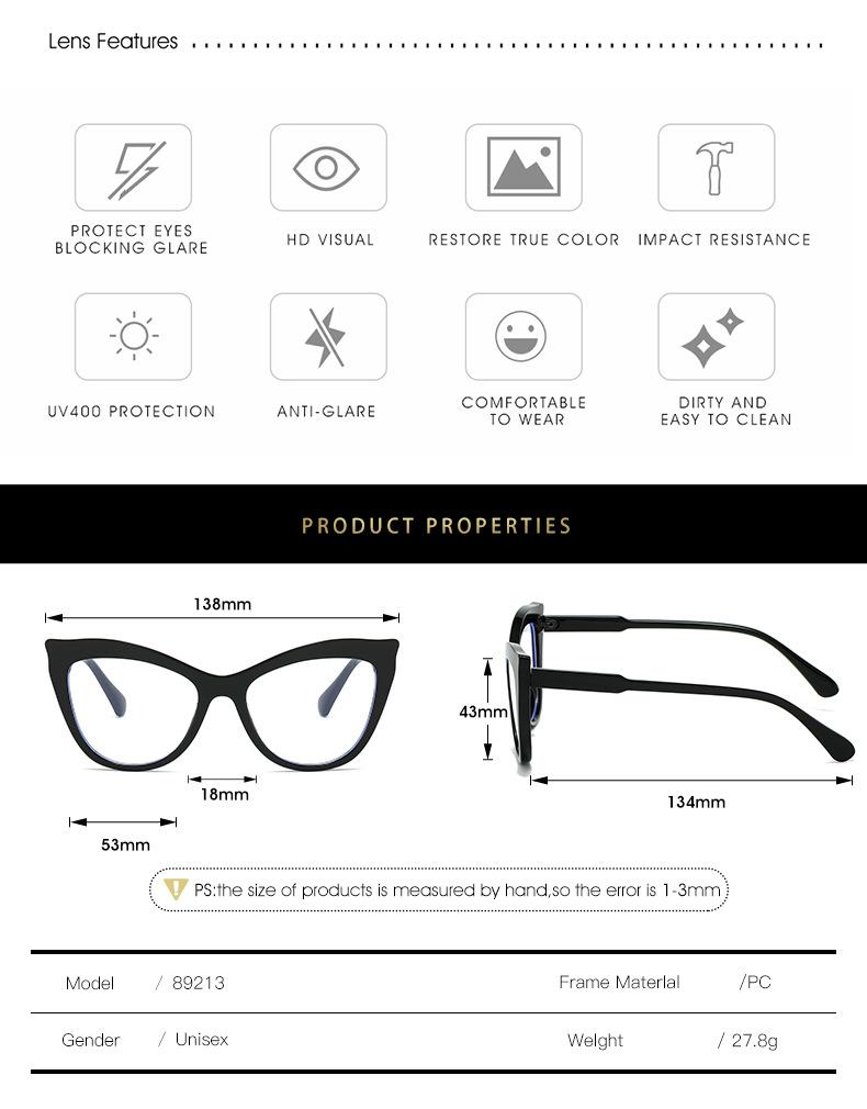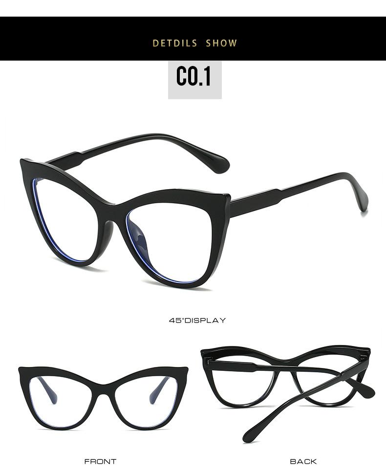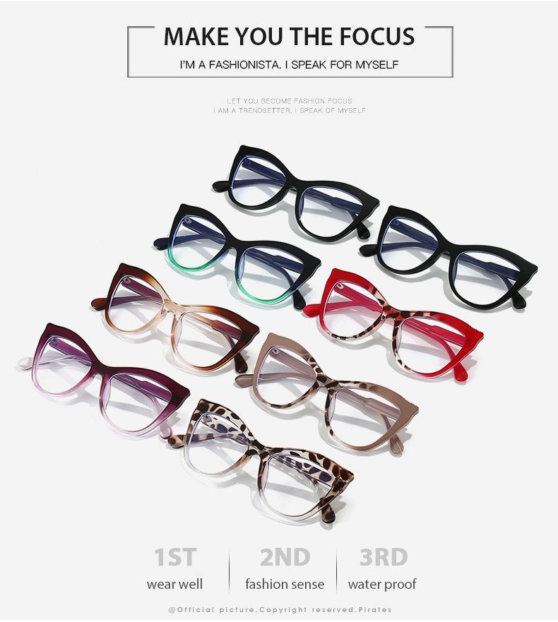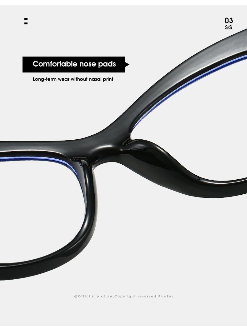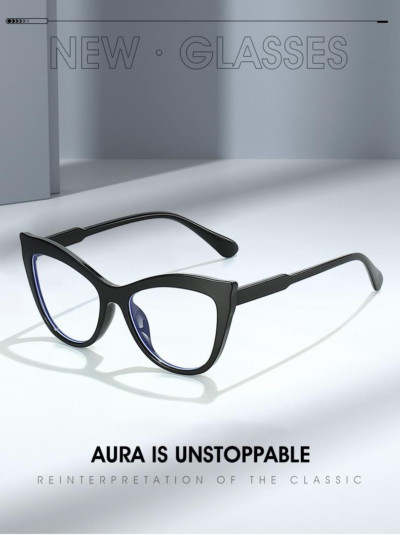 Gafas antiazules de ojo de gato transfronterizas para mujer, nuevas gafas planas de contraste retro, montura de gafas lisas, sin rostro y a la moda.