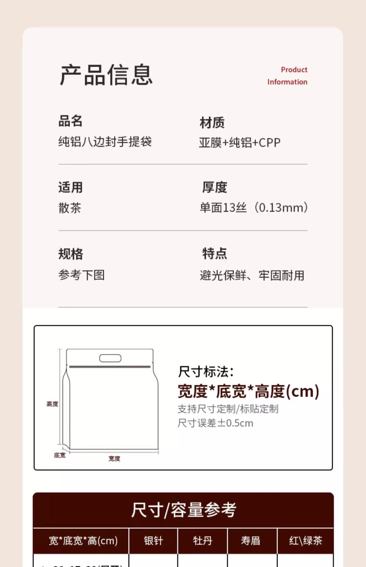 Descuento en empaque de té Fuding té blanco bolsa sellada bolsa de aluminio puro almacenamiento té bolsa autosellable bolsa sellada bolsa para empaque de té lote
