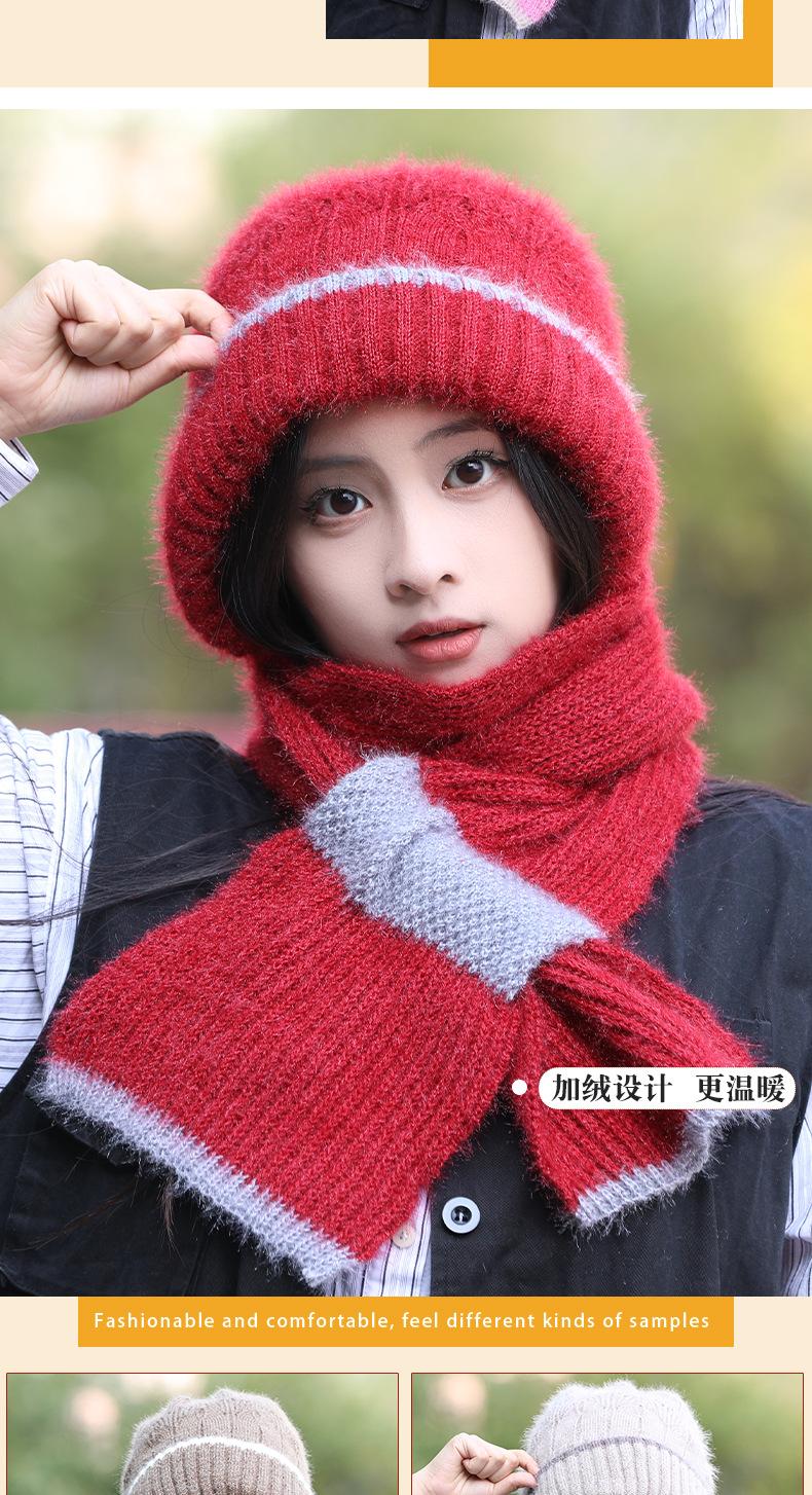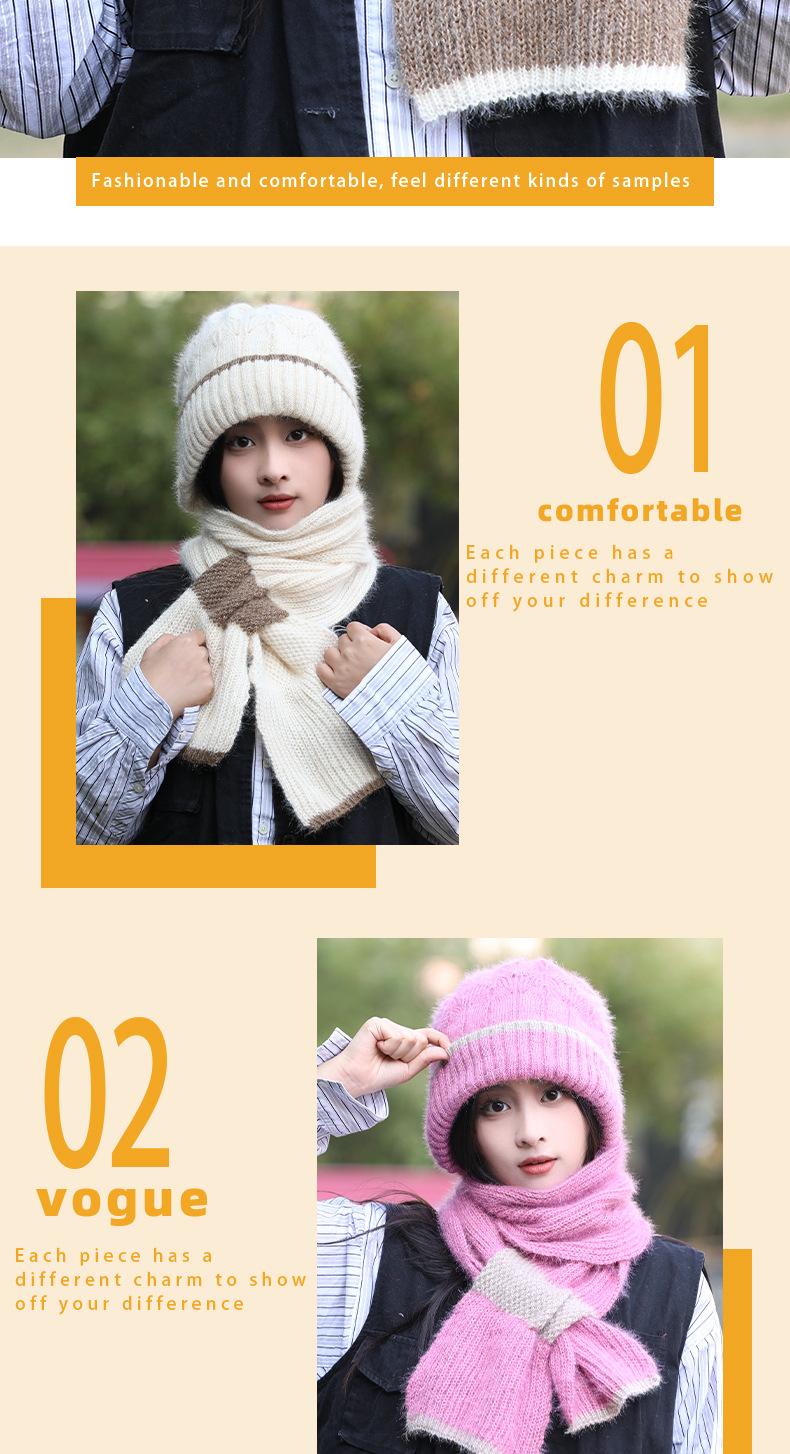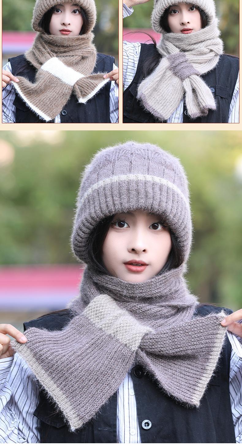 Traje cálido grueso de invierno bufanda gorro traje de una pieza gorro de nieve para mujer protección para los oídos coreano nueva combinación de colores