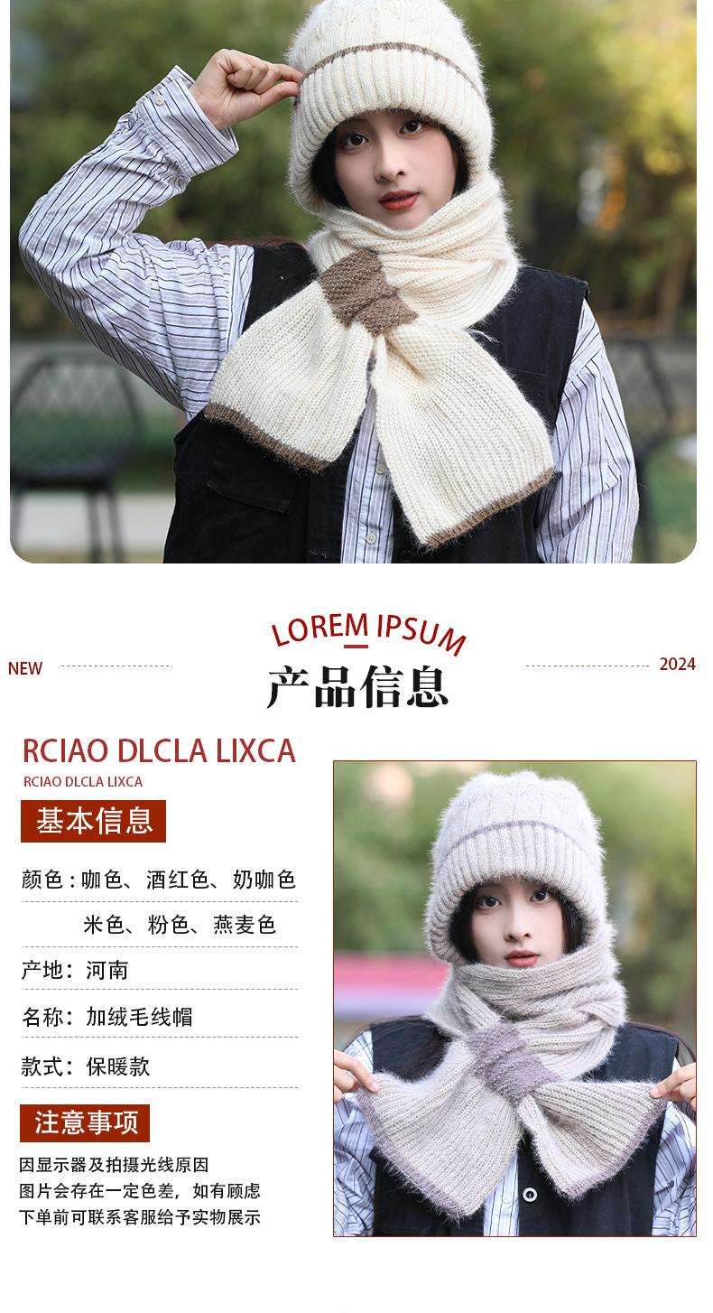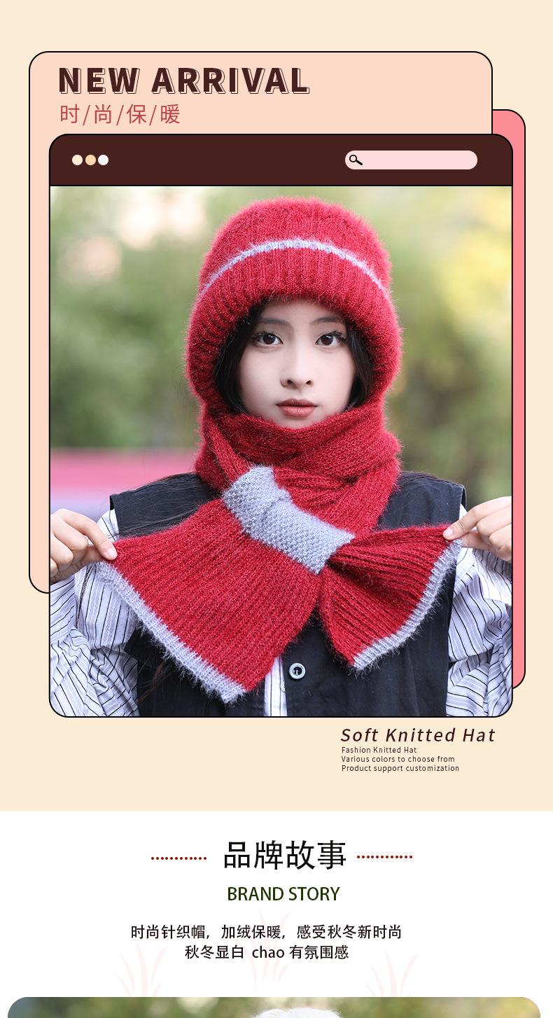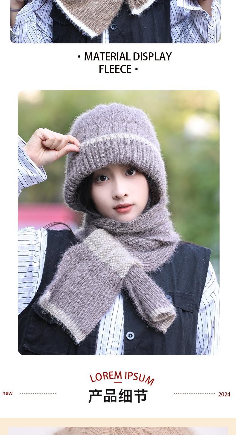 Traje cálido grueso de invierno bufanda gorro traje de una pieza gorro de nieve para mujer protección para los oídos coreano nueva combinación de colores