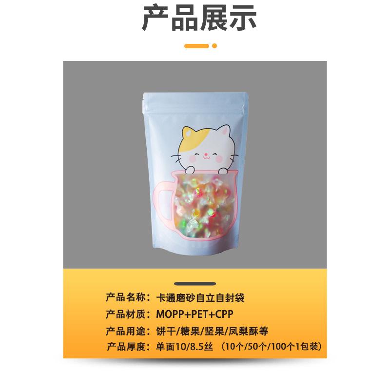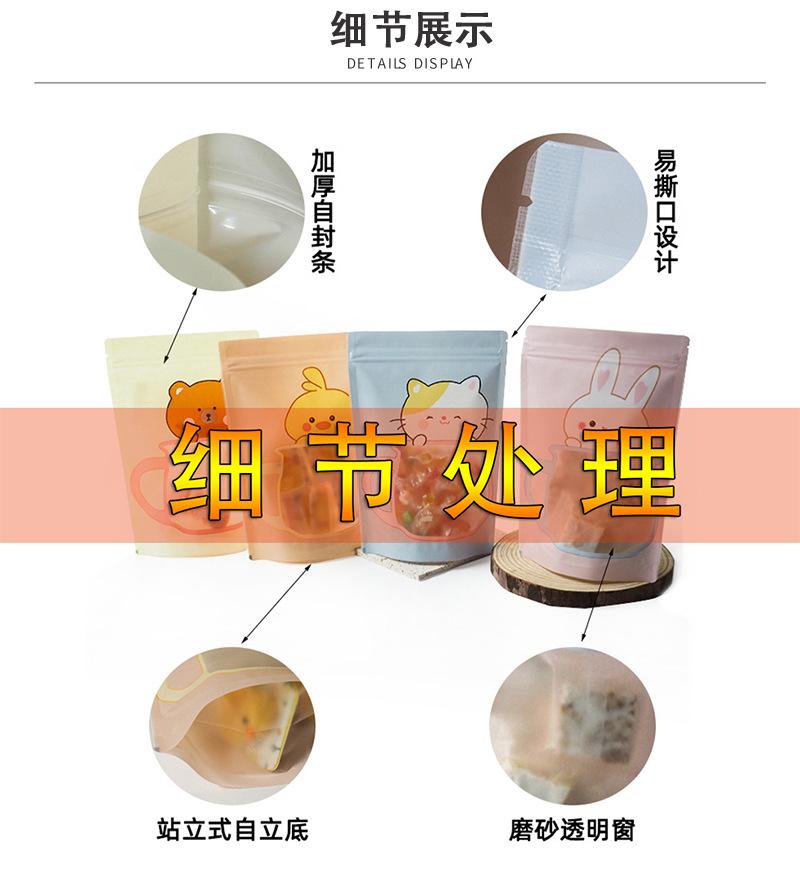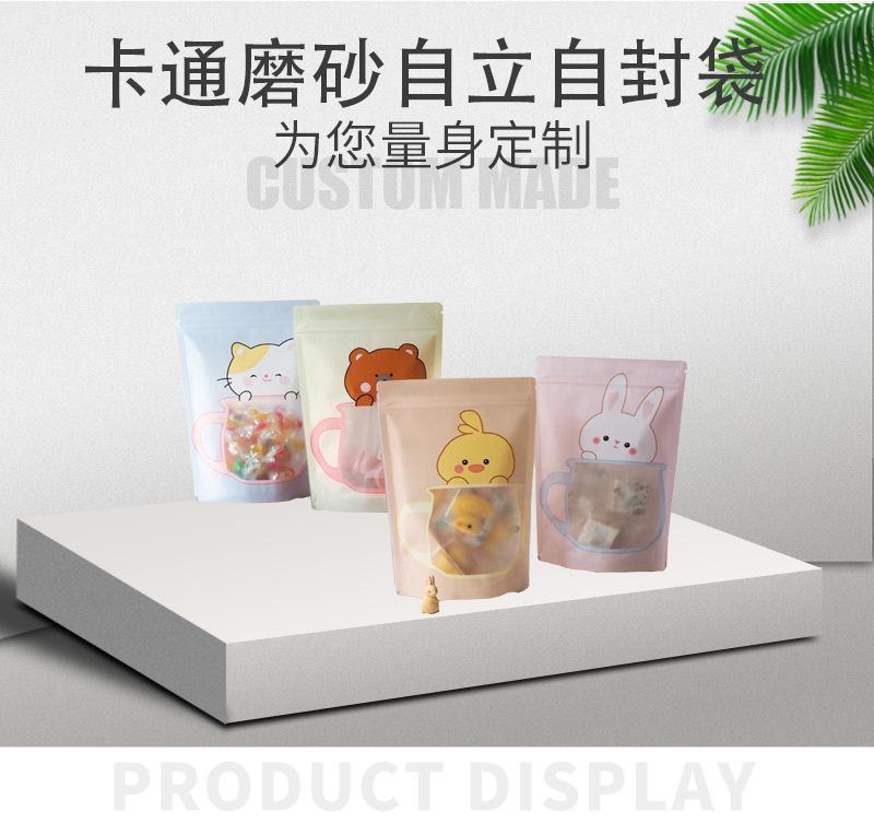 Bolsa de embalaje autosellable con ventana esmerilada, autoportante, con impresión de dibujos animados, para alimentos, té, aperitivos, frutos secos y dulces.