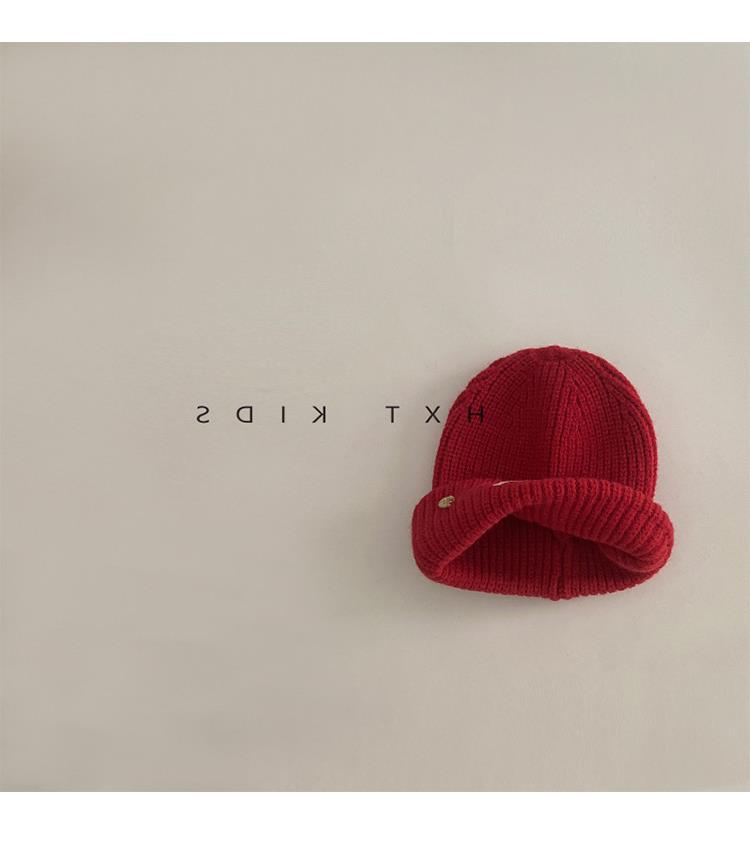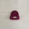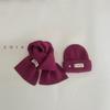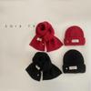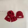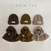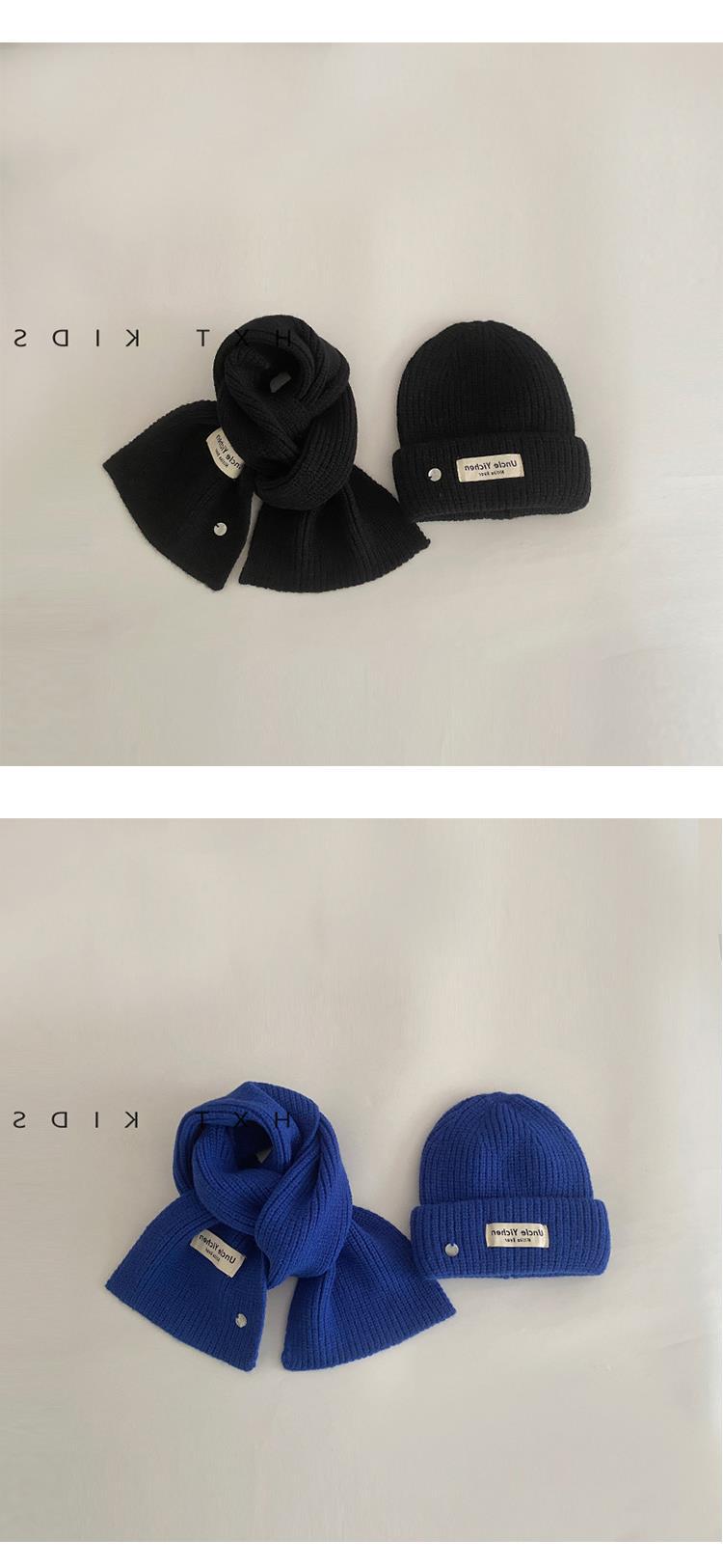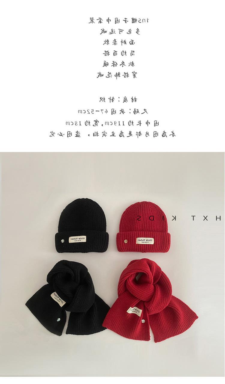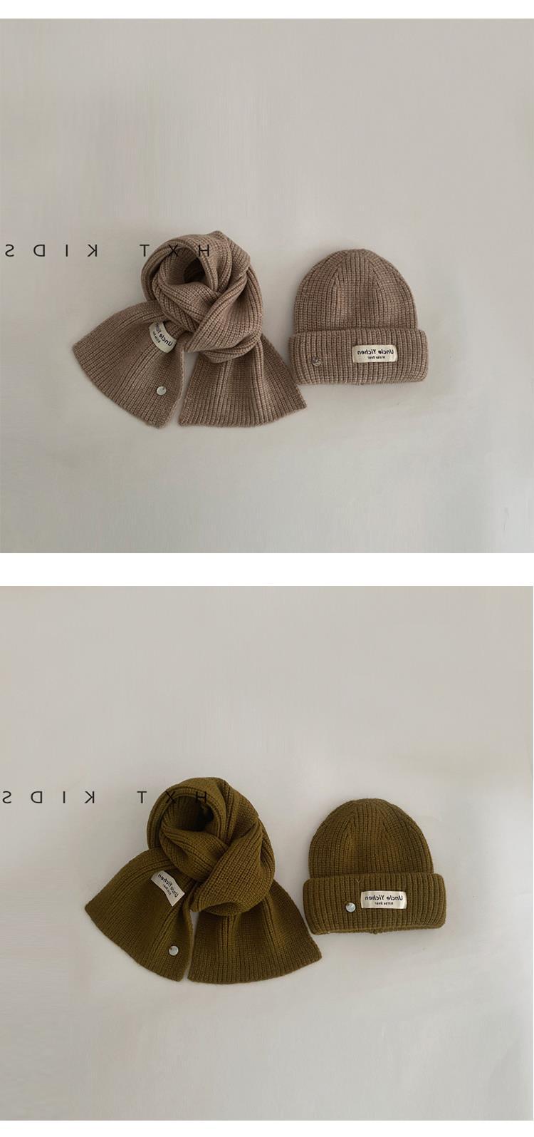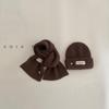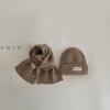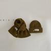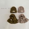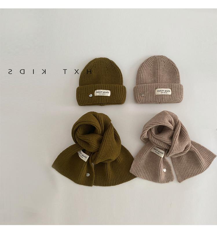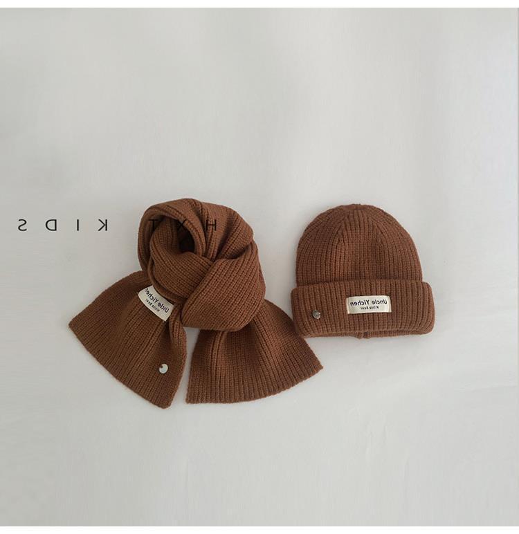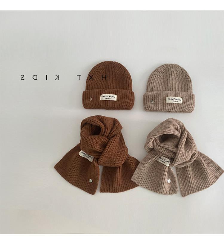 Gorro y bufanda para niños, dos piezas, otoño e invierno, estilo extranjero, color sólido, etiqueta pequeña, gorro de punto, traje cálido para bebé, invierno