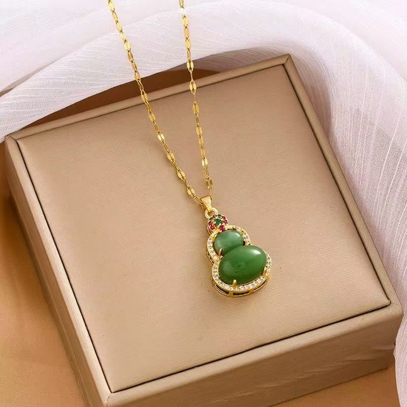 Collar con colgante de calabaza verde de nuevo estilo para mujer, diseño de nicho de lujo ligero, cadena de clavícula de alta calidad, estilo étnico 2024