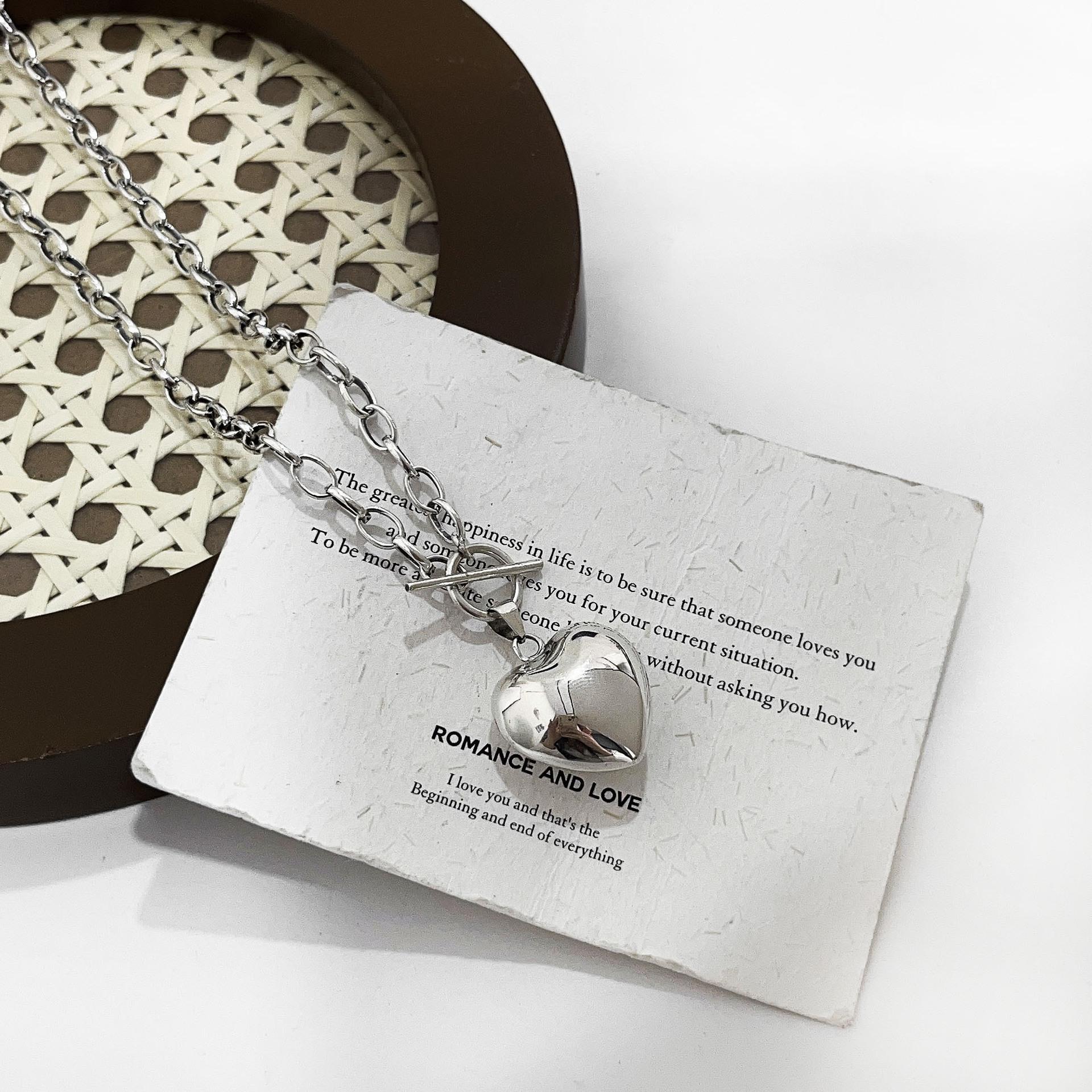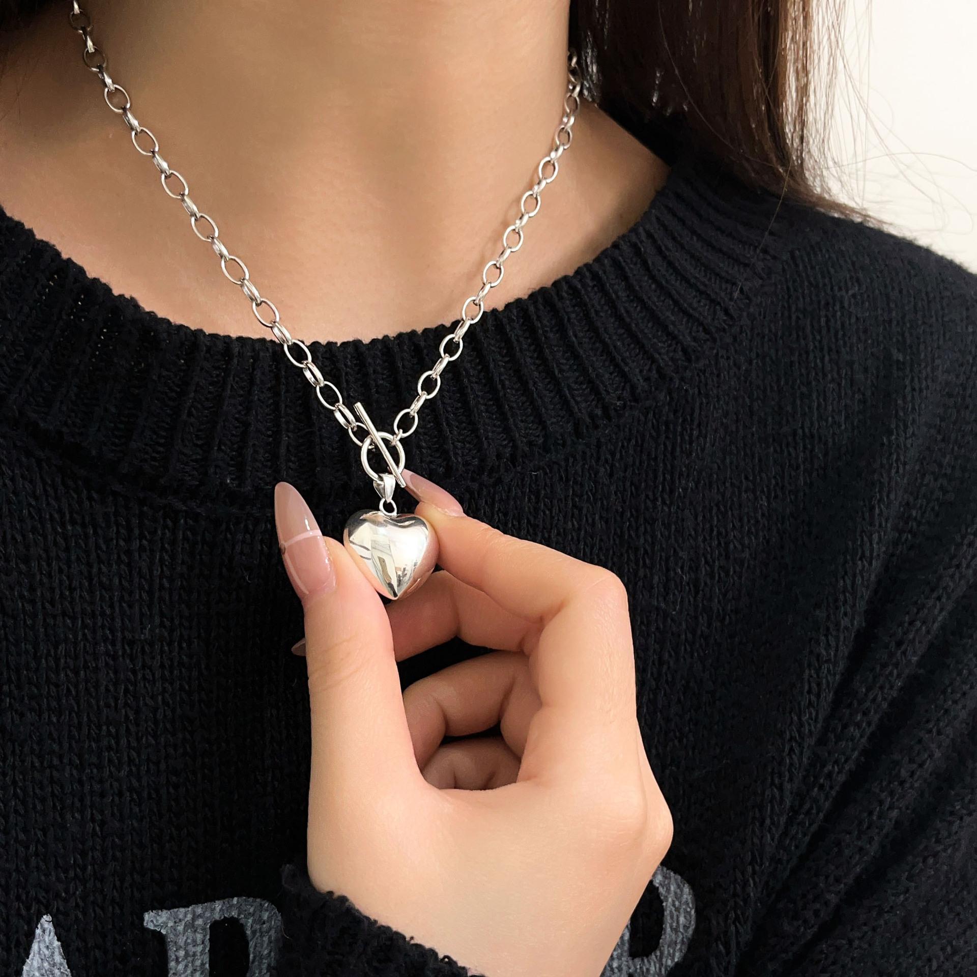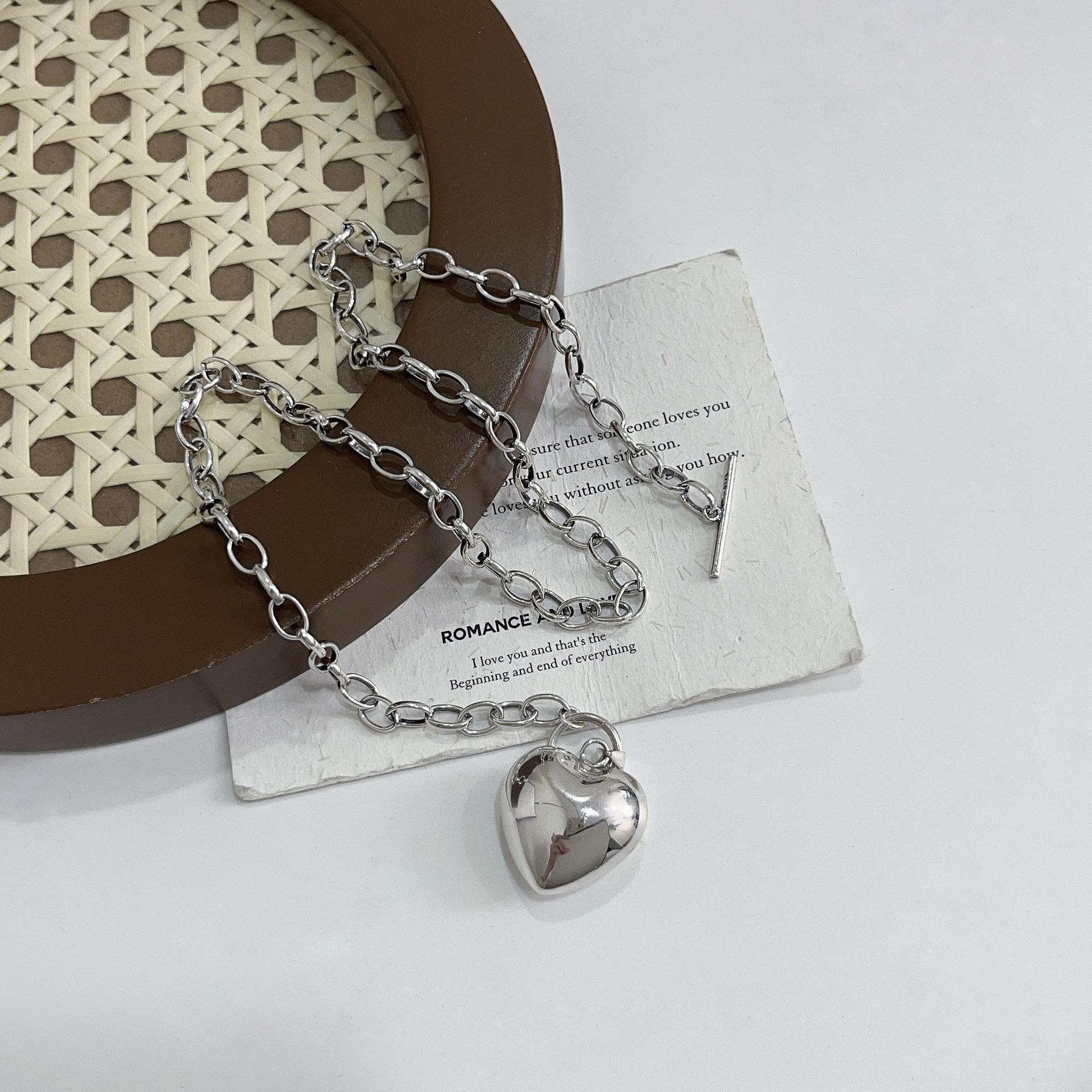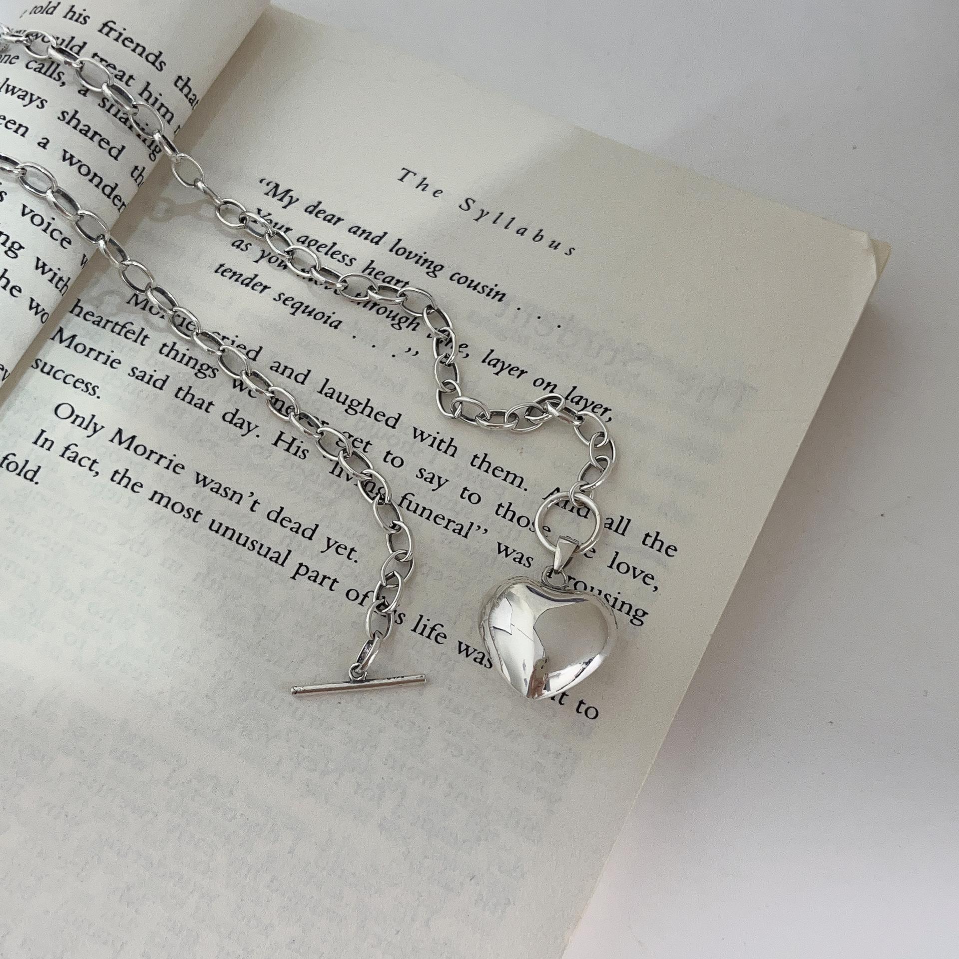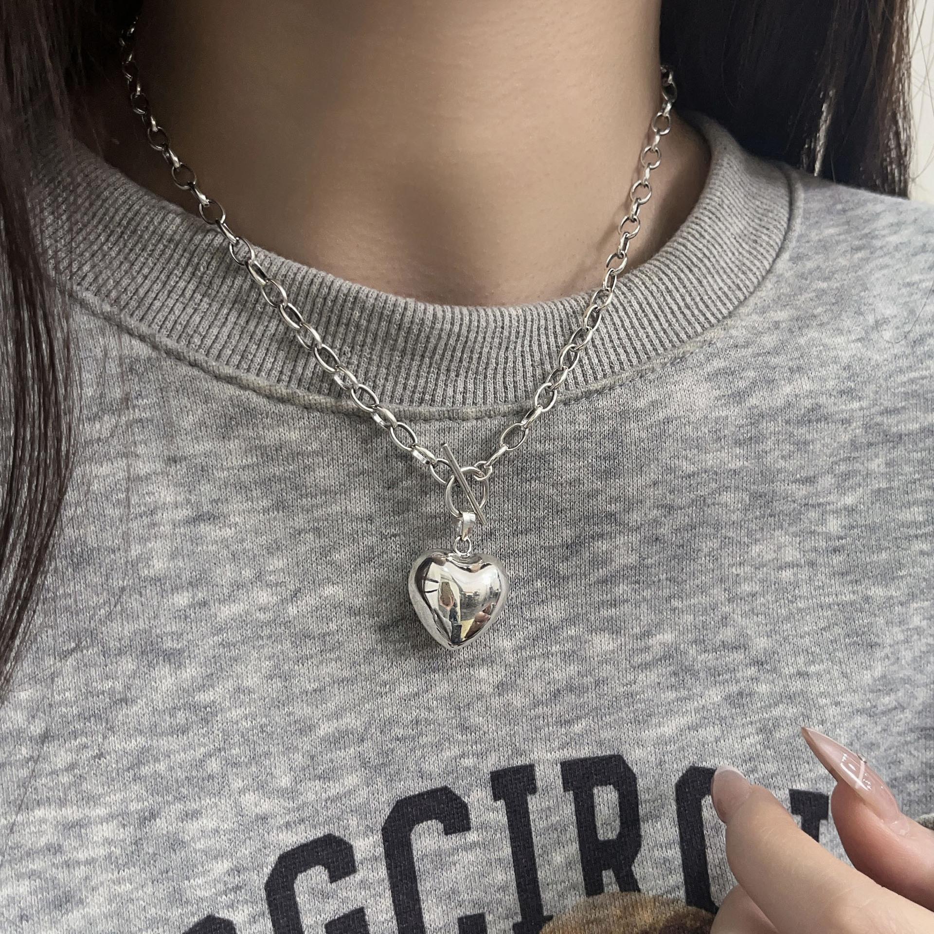 Collar de plata de ley Ruitai S925 con diseño de amor, estilo europeo-coreano, sencillo, de alta calidad, combinable con todo, estilo de celebridad de Internet, cadena de clavícula.
