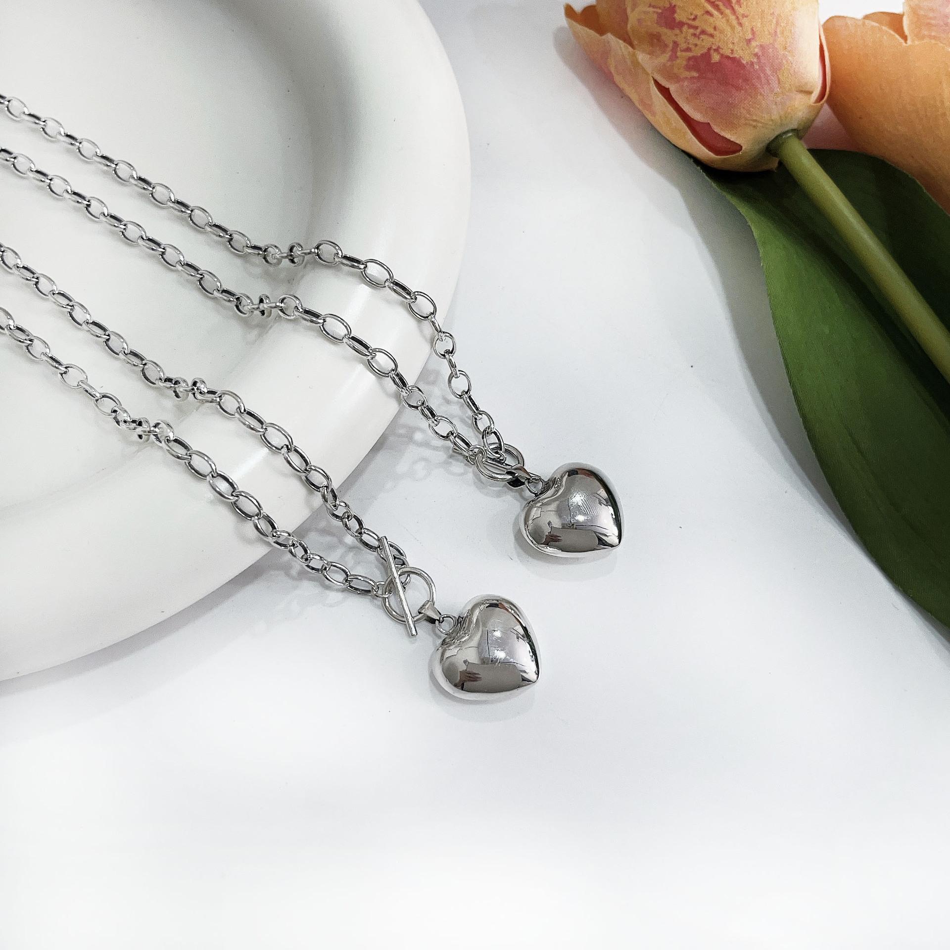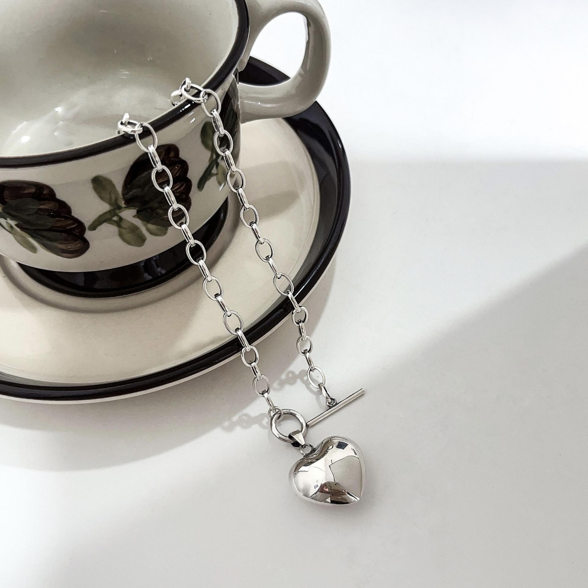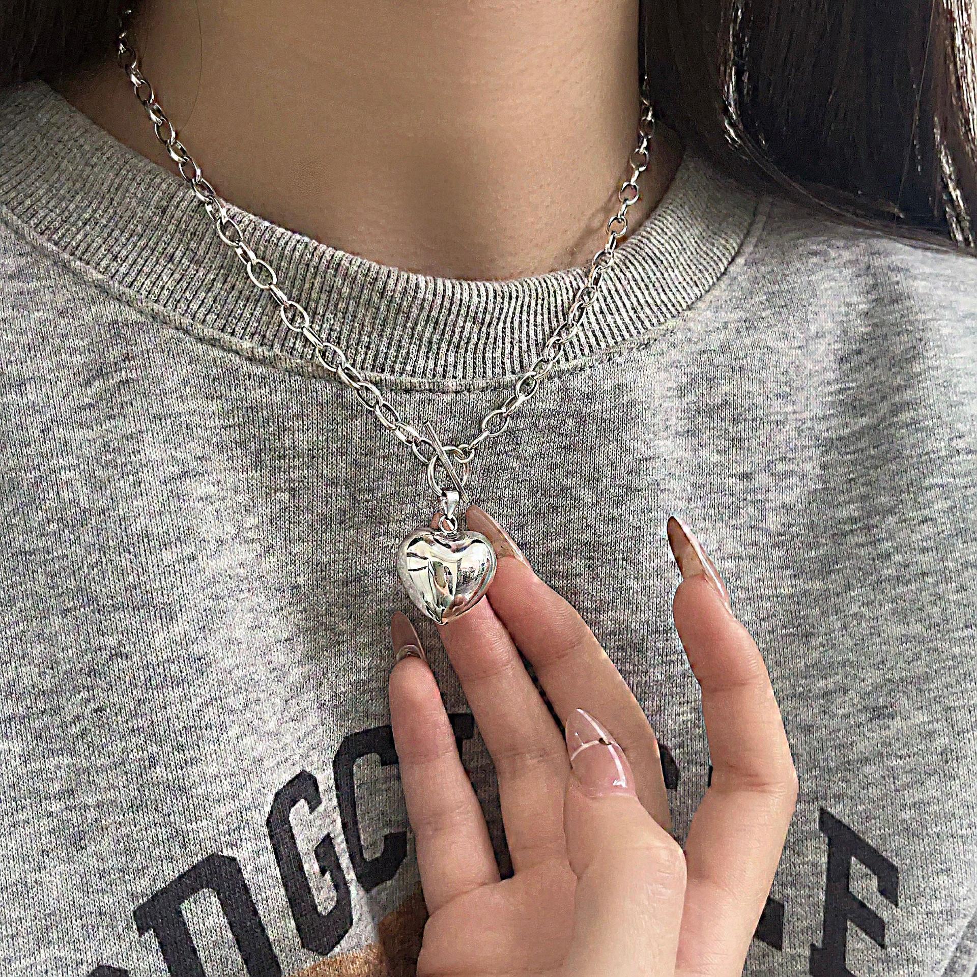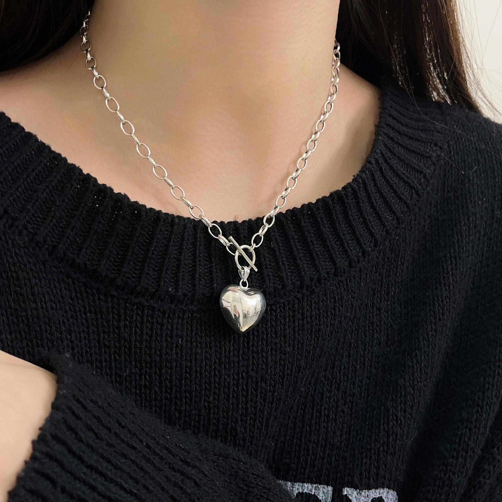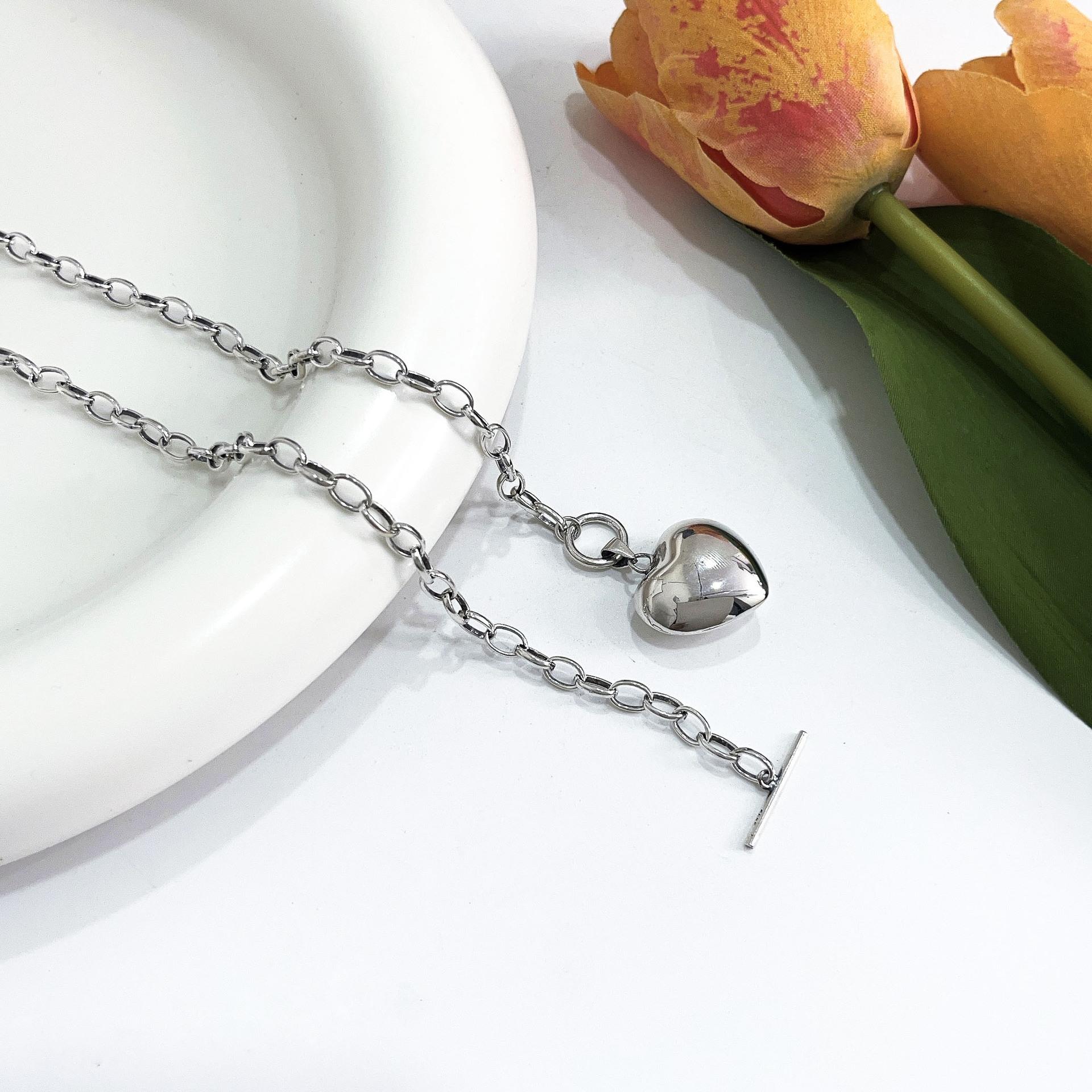 Collar de plata de ley Ruitai S925 con diseño de amor, estilo europeo-coreano, sencillo, de alta calidad, combinable con todo, estilo de celebridad de Internet, cadena de clavícula.
