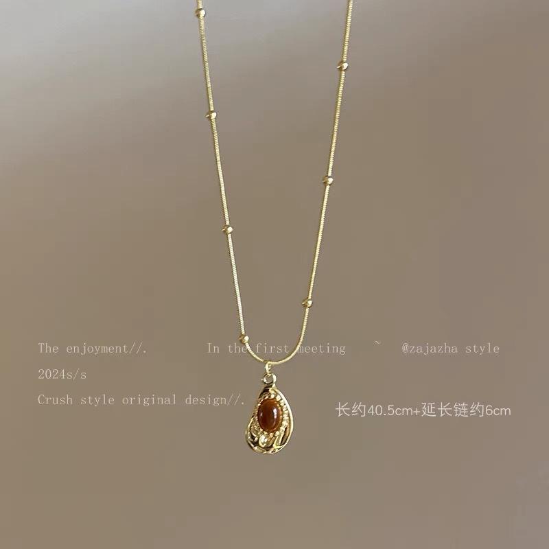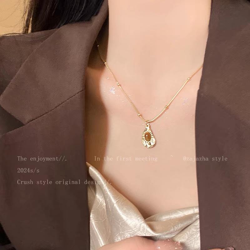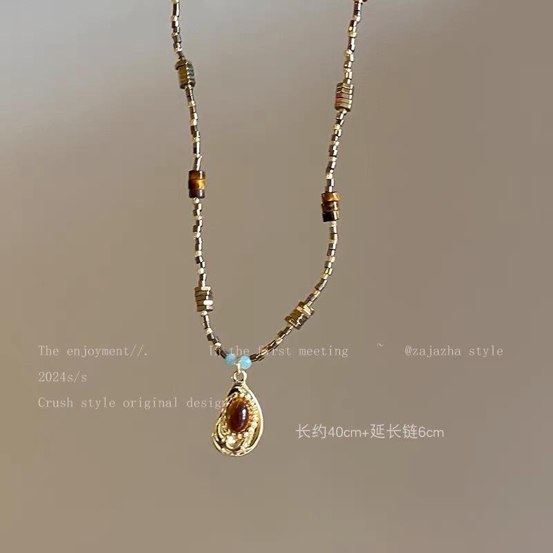 Collar tejido natural de ojo de tigre para mujer, estilo retro Maillard, elegante accesorio 2024, nueva cadena de clavícula de alta gama.