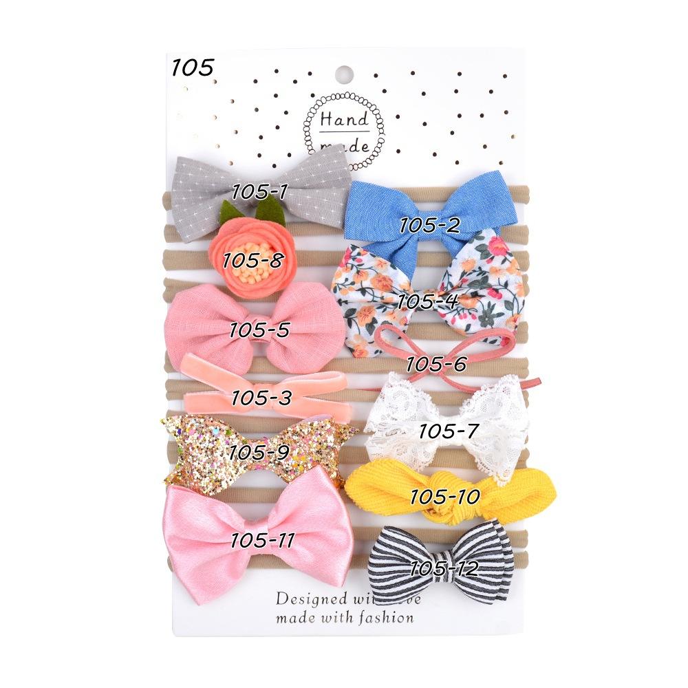 [Nombre] Amazon lazo para bebé accesorios para el cabello diadema elástica de nailon para niños 12 piezas por juego de tarjeta adorno para la cabeza de bebé 105