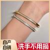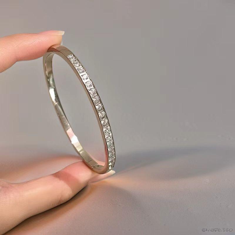 Pulsera curva transfronteriza europea y americana con diamantes para mujer, pulsera con hebilla de acero inoxidable chapada en oro rosa, pulsera de acero de titanio con diamantes cuadrados para mujer