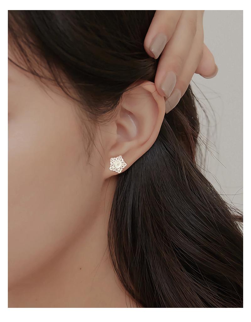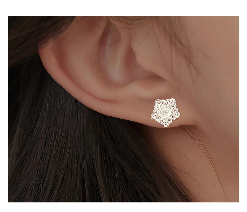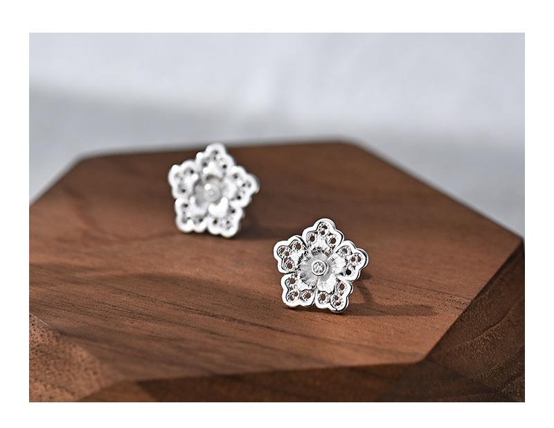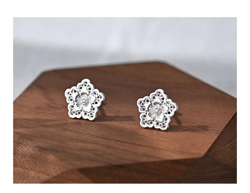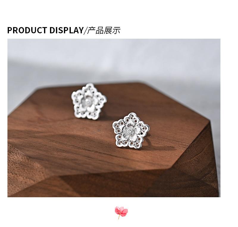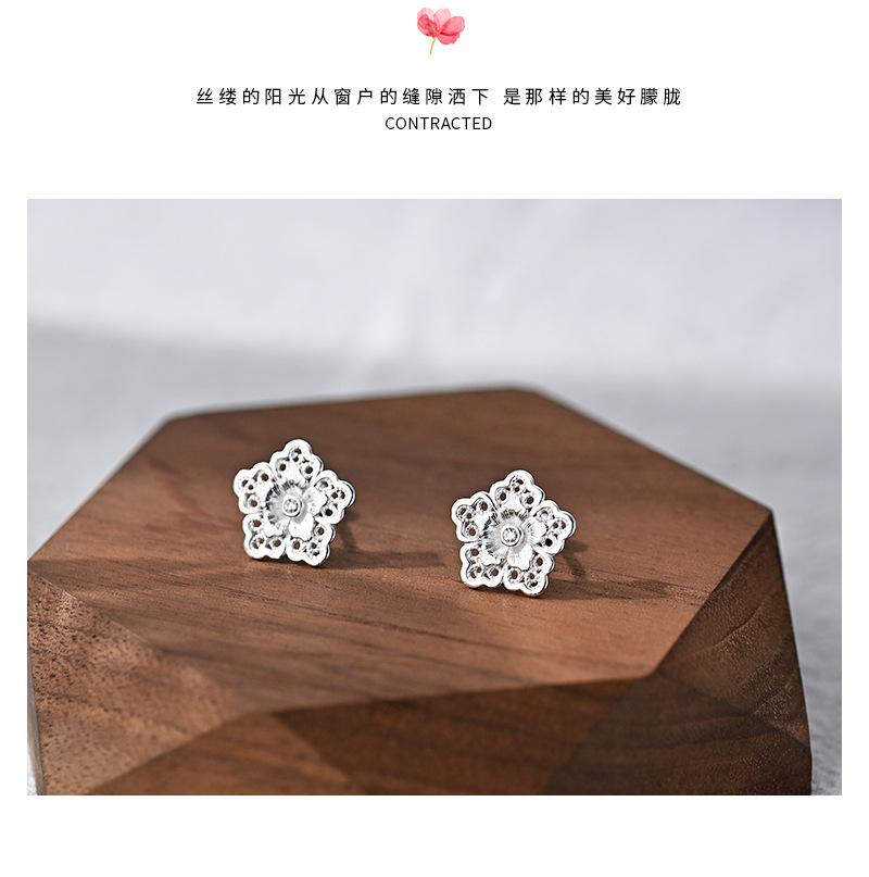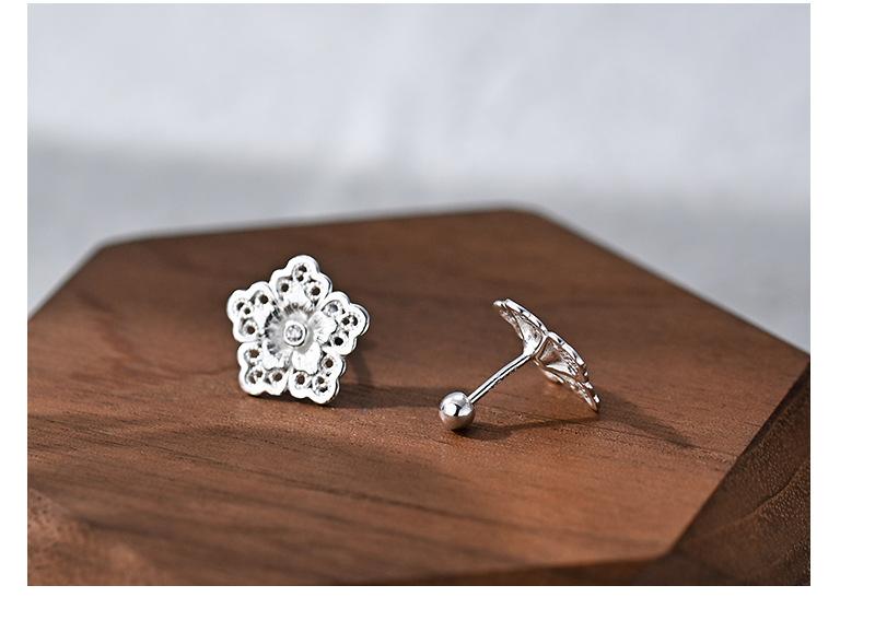 Aretes S999 de Plata con Corte Simple para Mujer con Flores, No es Necesario Quitar los Tornillos al Dormir, Perforación de Oreja Joyería de Oreja C01340