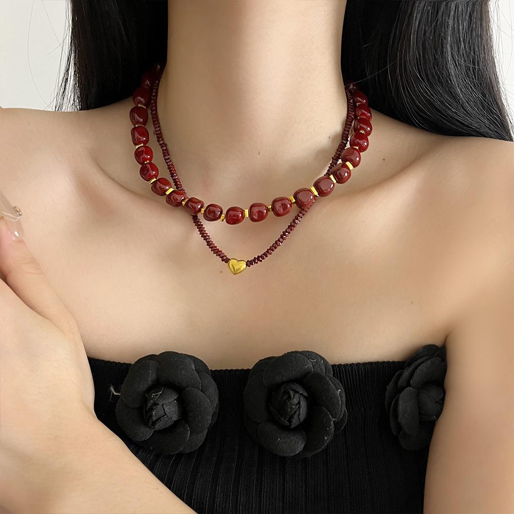 Nuevo collar de cuentas de ágata roja de estilo chino hecho a mano para mujer, elegante collar vintage con cadena de clavícula multicapa.