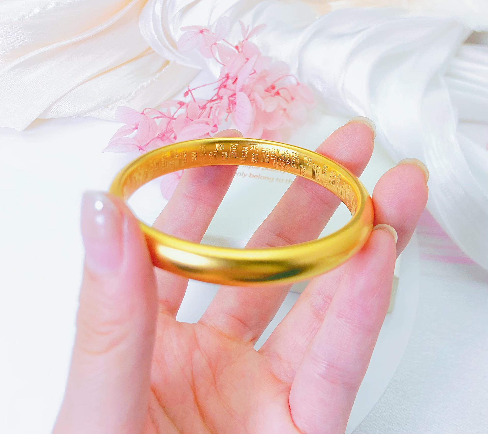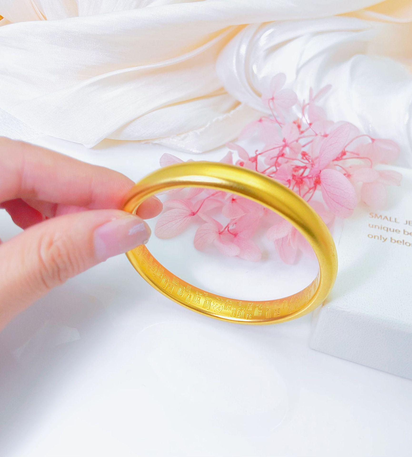 El mismo estilo que la tienda de oro, Sutra del Corazón grabado, Pulsera de loto con barro en el reverso, Larga duración, De alta gama, Pulsera de oro arena antigua para mujer