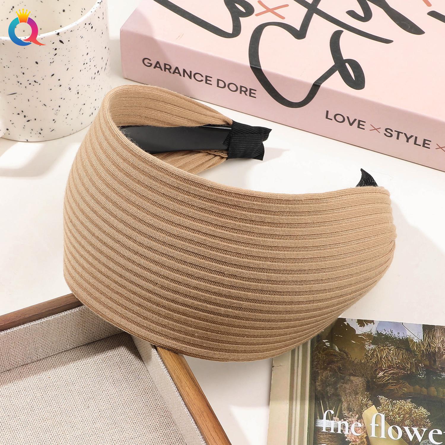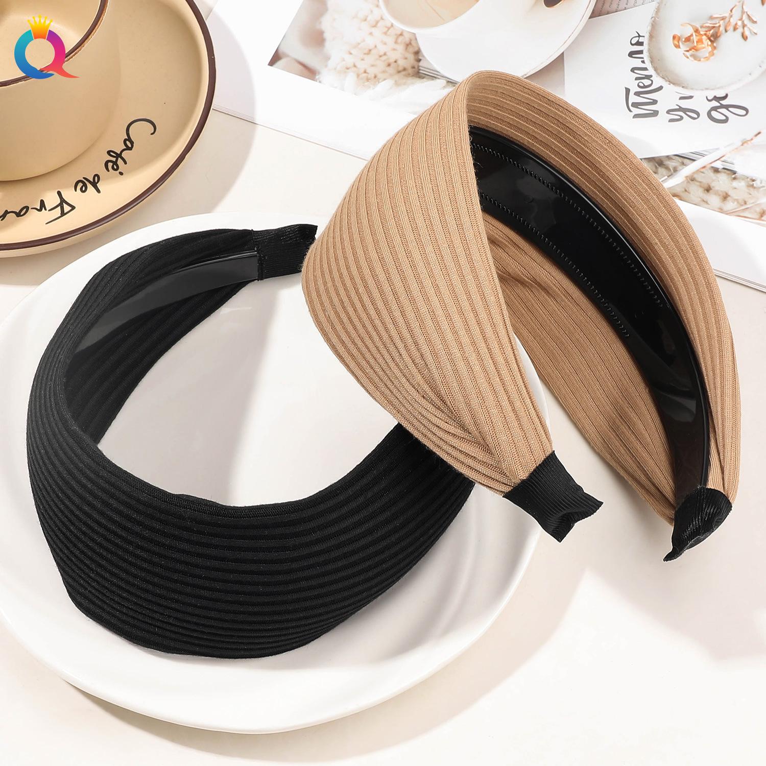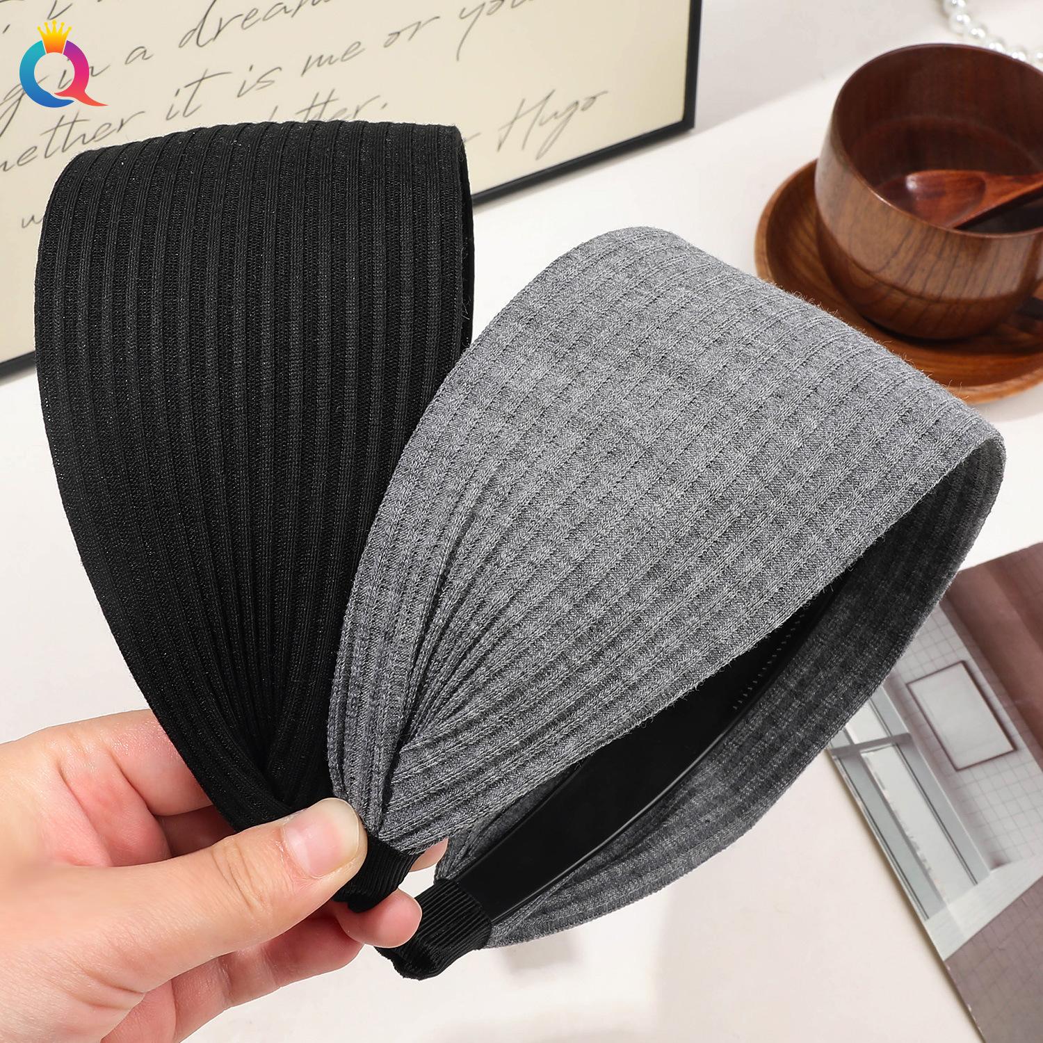 Diadema Qiyue retro de punto con tiras anchas, banda para el cabello de color sólido con parte superior de cráneo alto, horquilla antideslizante a presión, accesorios para el cabello al por mayor