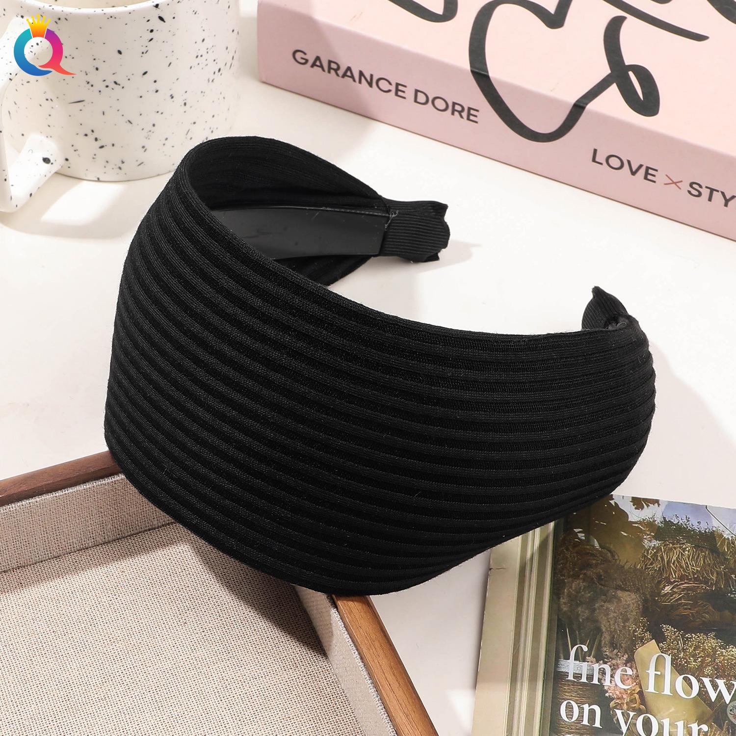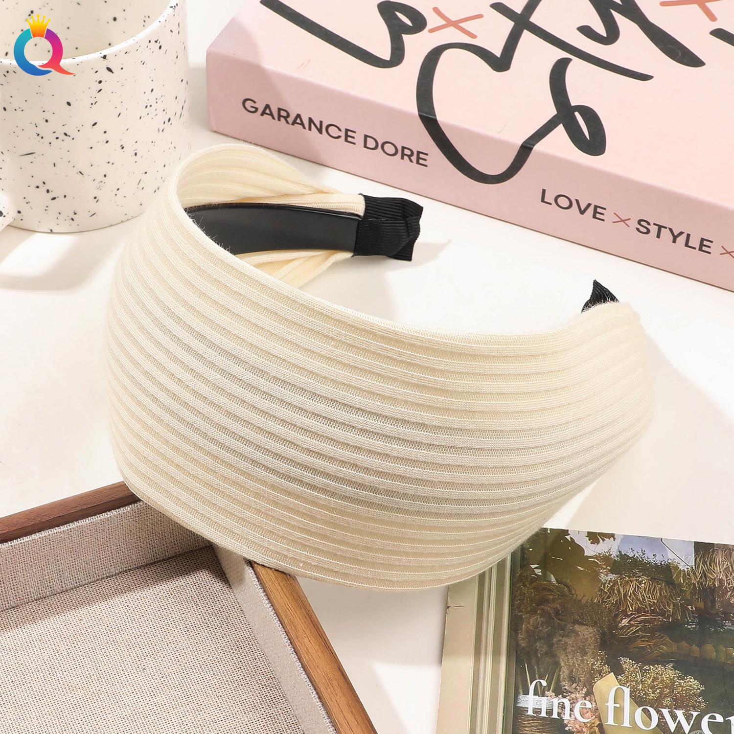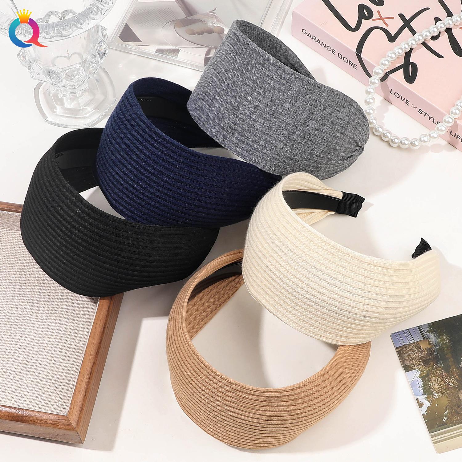 Diadema Qiyue retro de punto con tiras anchas, banda para el cabello de color sólido con parte superior de cráneo alto, horquilla antideslizante a presión, accesorios para el cabello al por mayor