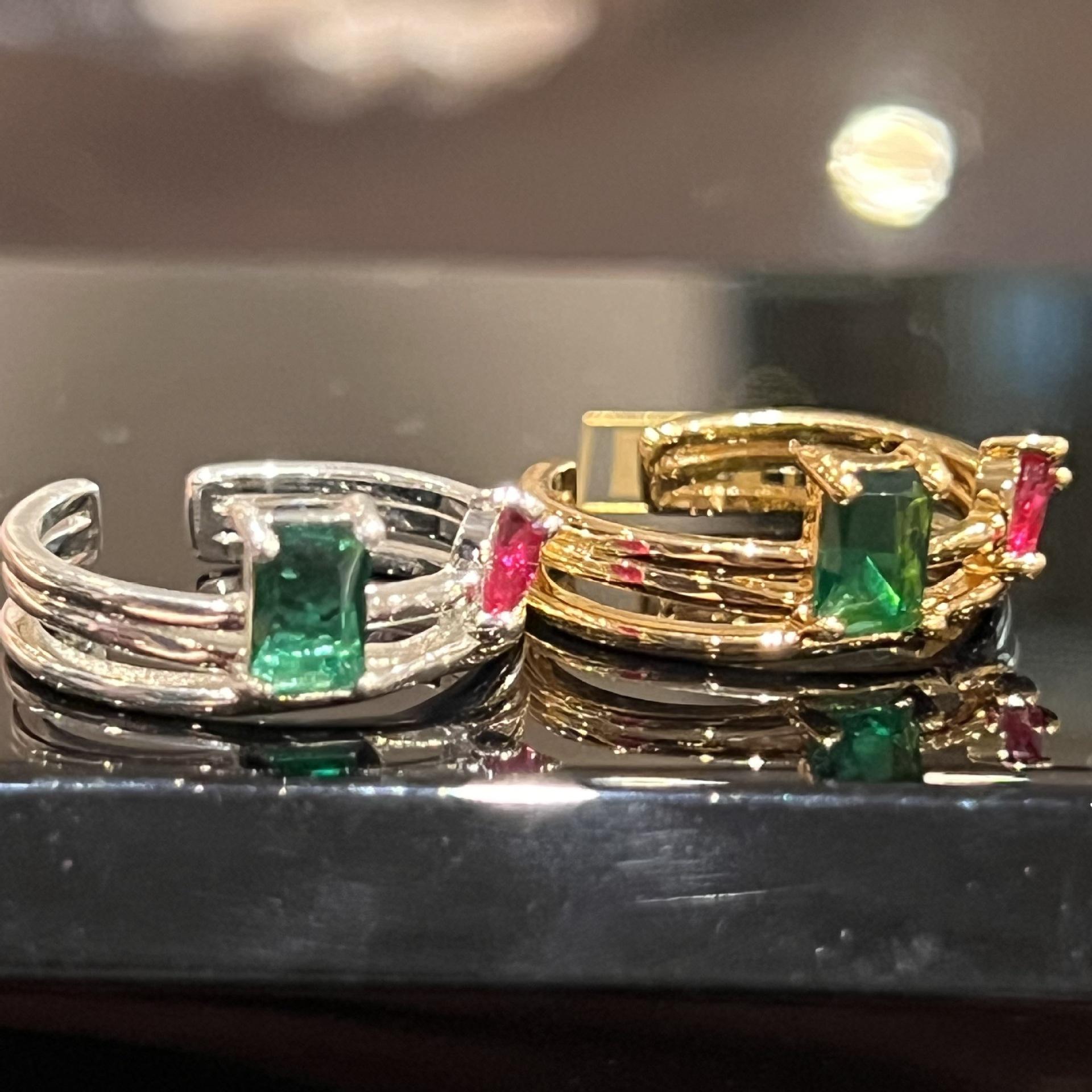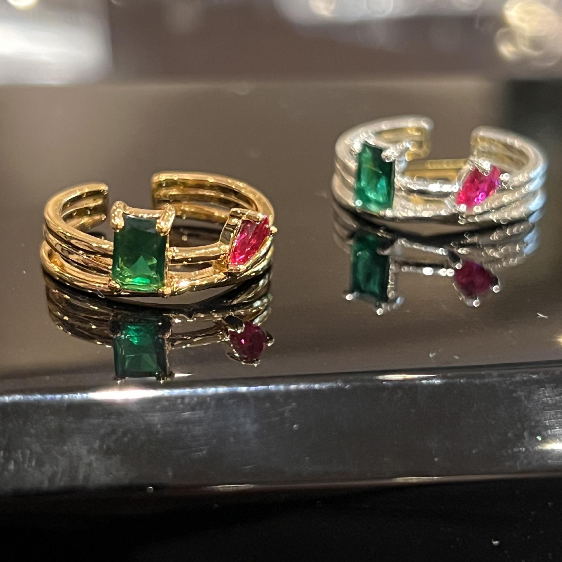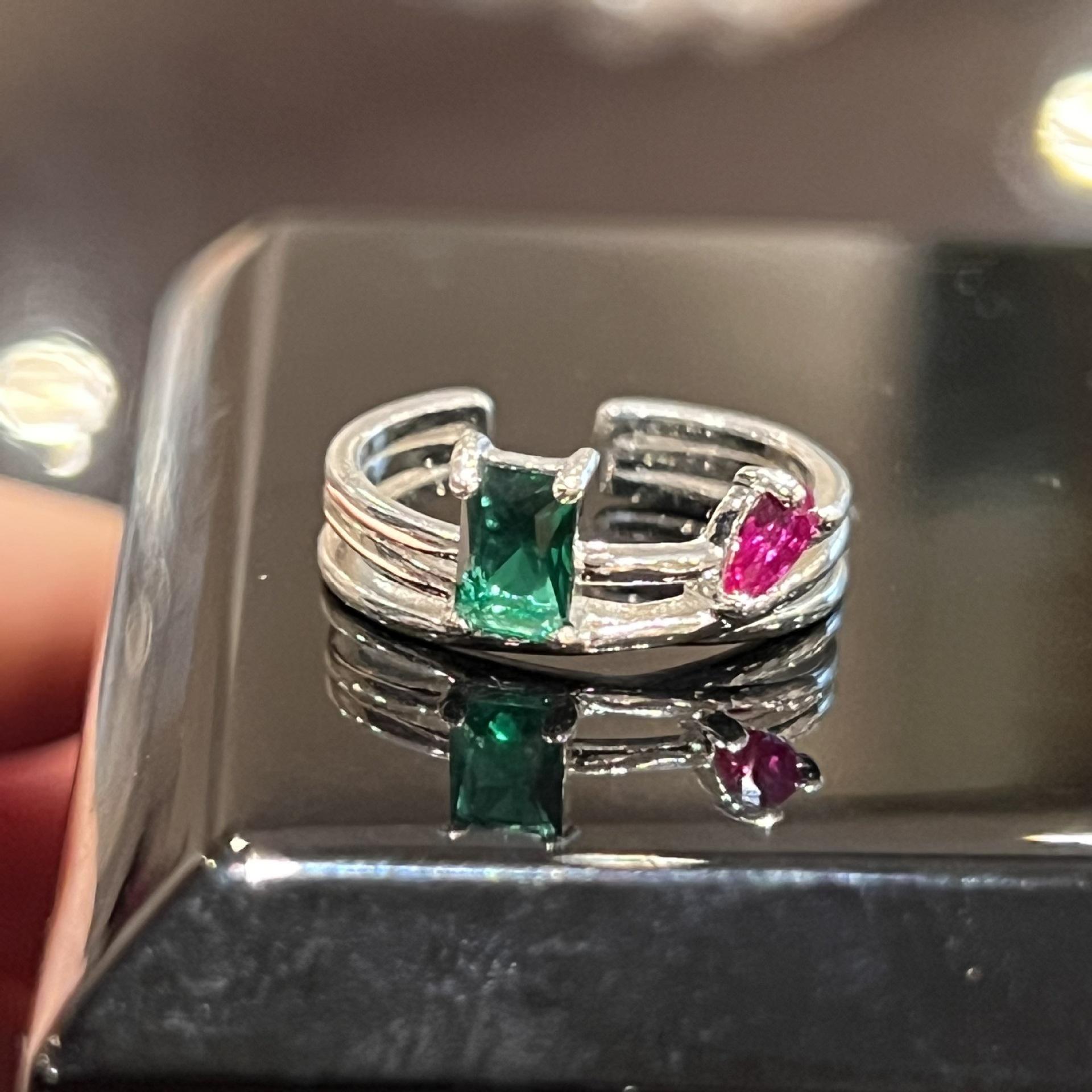 Nuevo Anillo Tesoro de Circonita Roja y Verde con Sentido Retro de Alta Gama Estilo Europeo y Americano Lujo Ligero Nicho Elegante Anillo Versátil