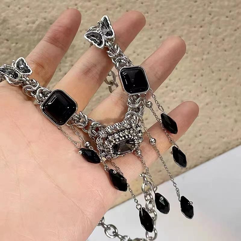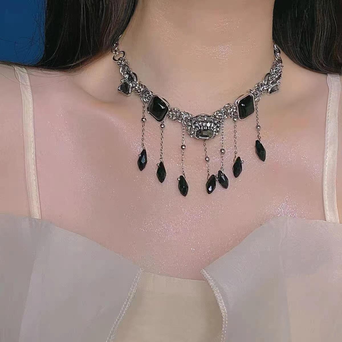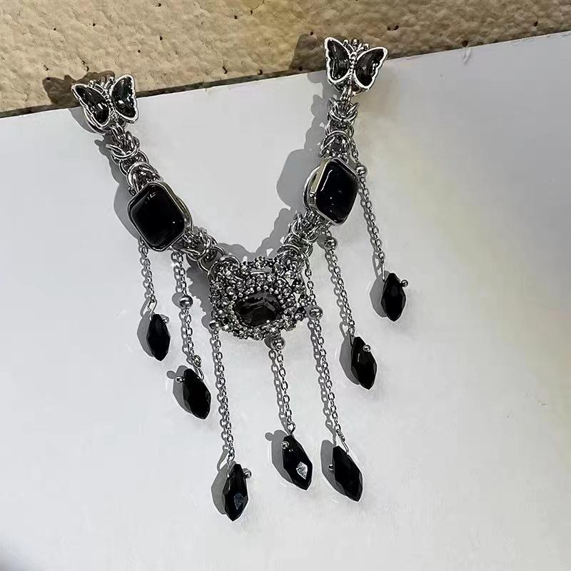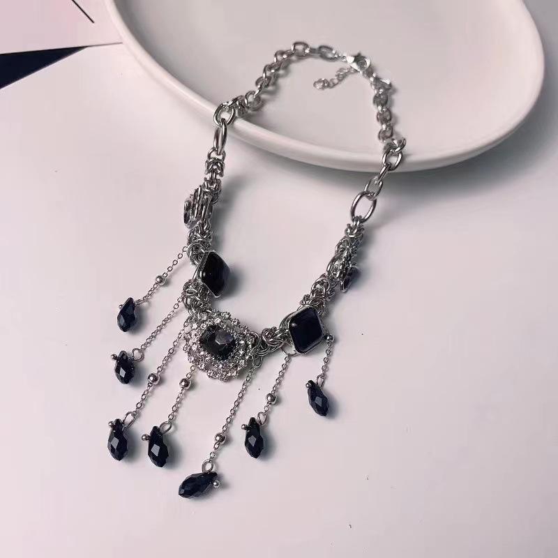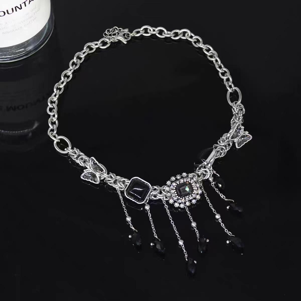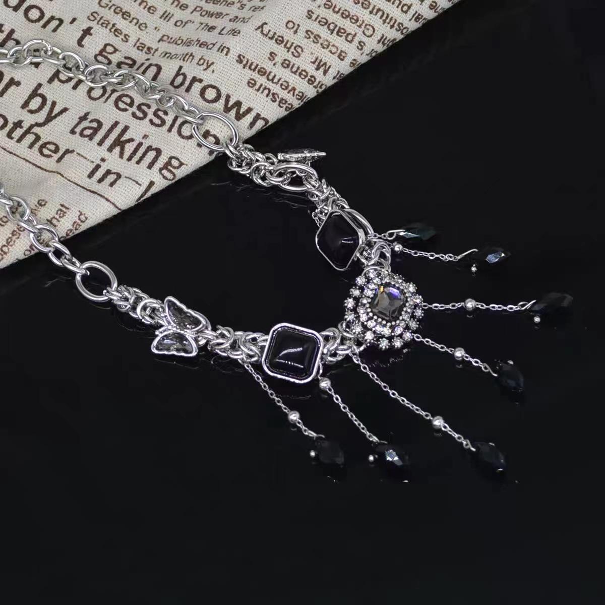 Collar vintage de cristal negro de alta calidad, de lujo, ligero, estilo europeo y americano, con diseño de mariposa exagerada, gargantilla, cadena de clavícula femenina.