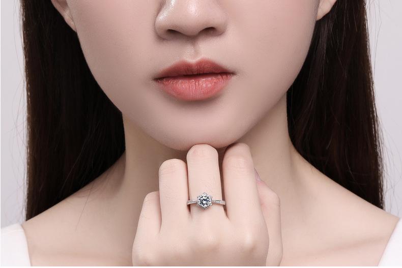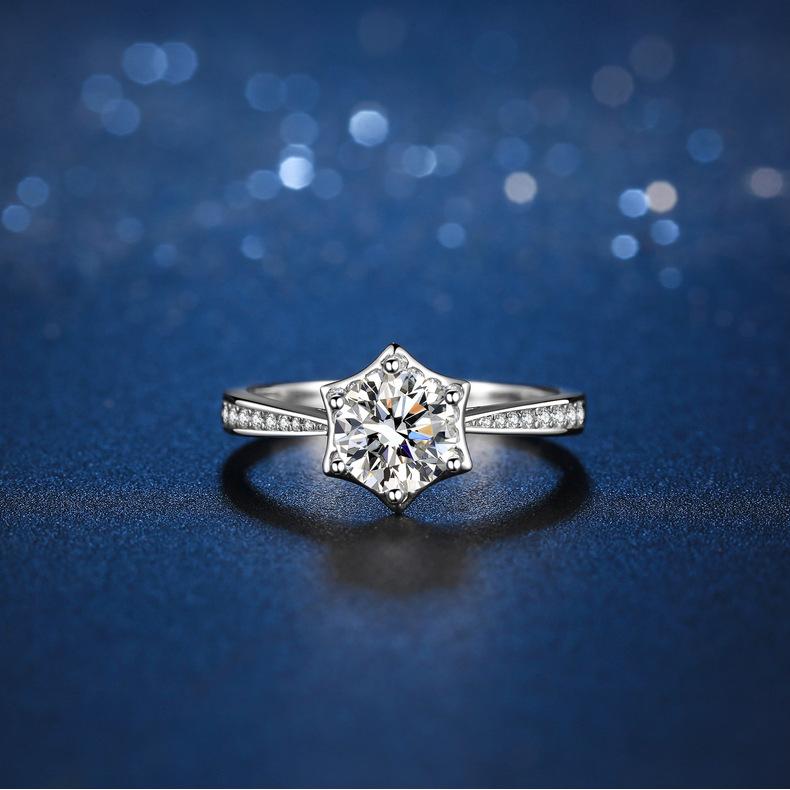 Anillo de estrella de seis puntas para mujer, imitación de moissanita, ocho corazones y ocho flechas, sencillo, de 1 quilate.