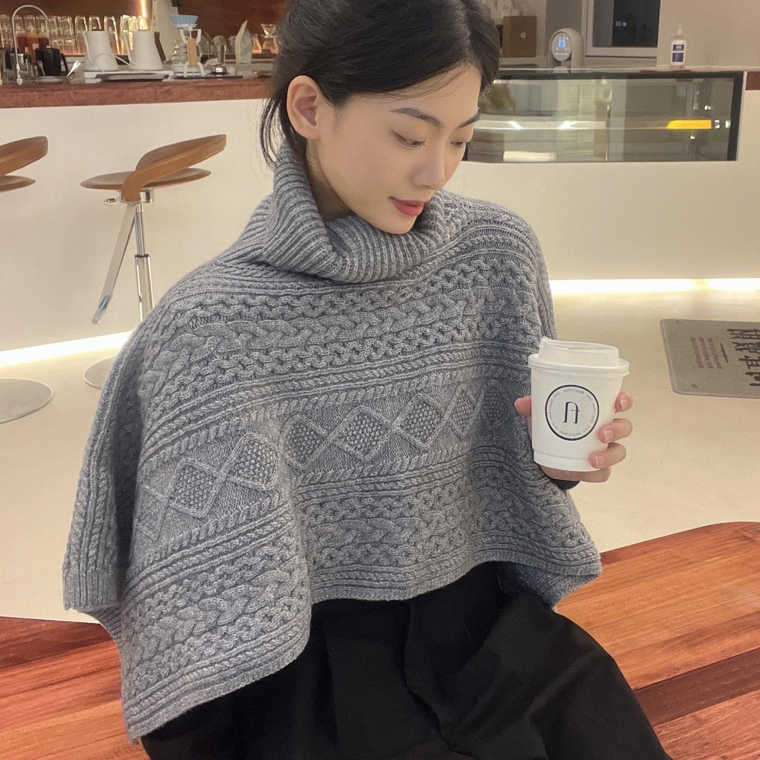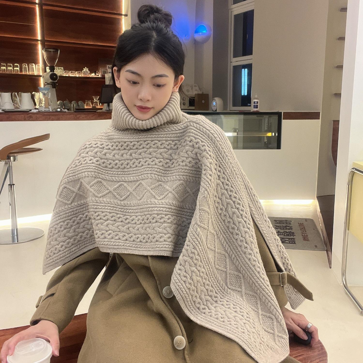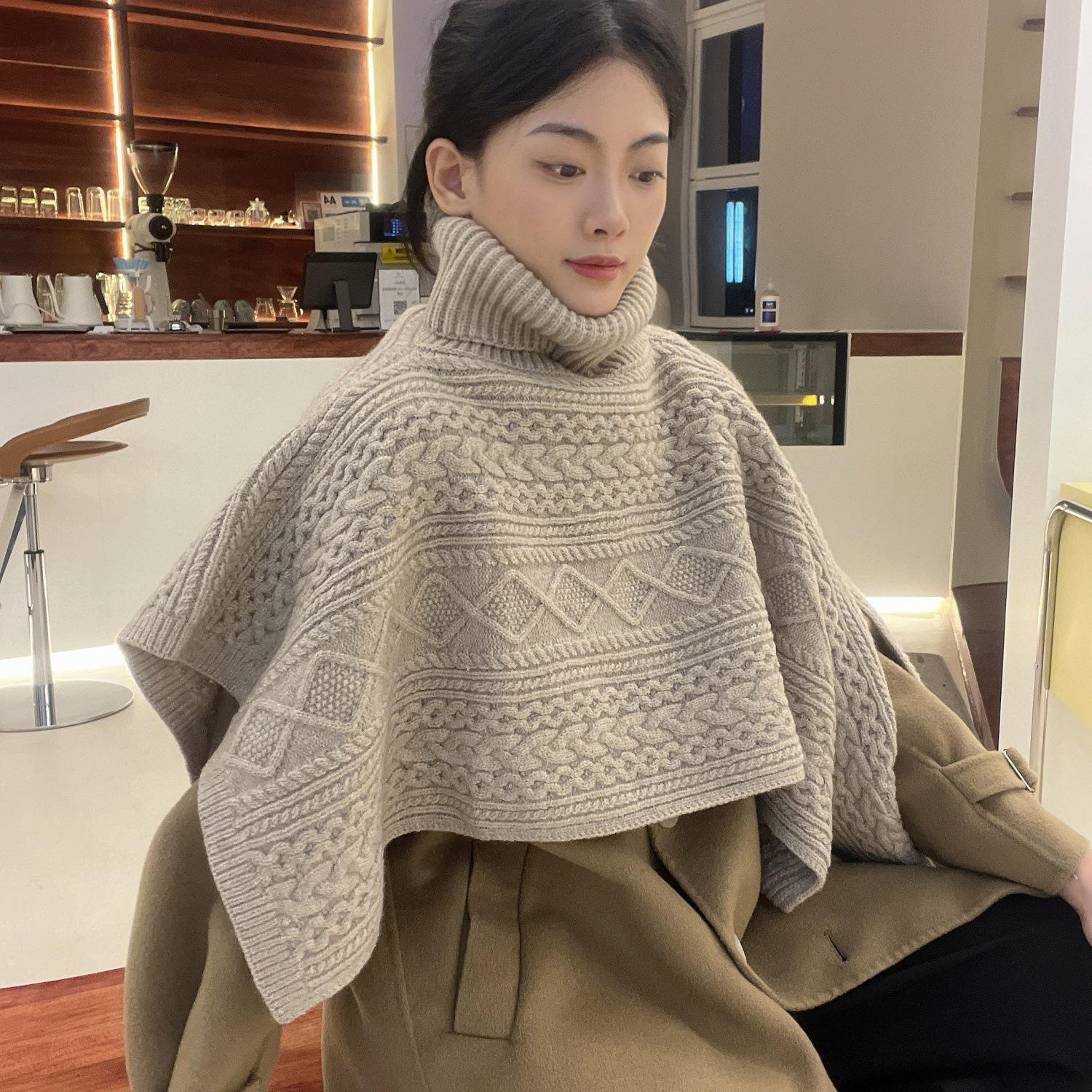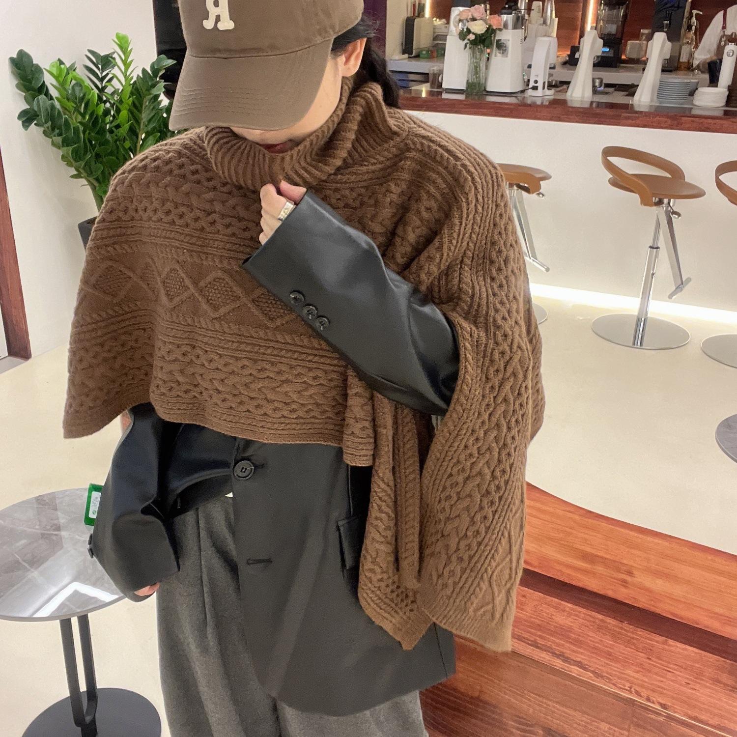 Capa estilo coreano, bufanda, prenda exterior, jersey de otoño e invierno, chal de punto, chaleco cálido para hombros, bufanda torcida para mujer
