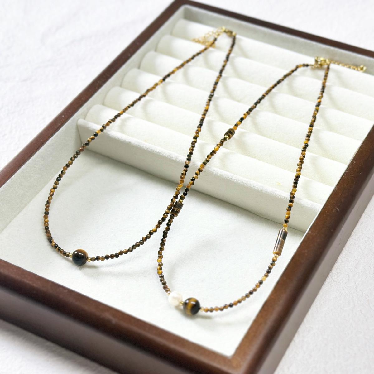 Collar Maillard original de ojo de tigre, ligero, de lujo, elegante, con cuentas vintage de piedra natural, cadena de lana para clavícula para mujer.