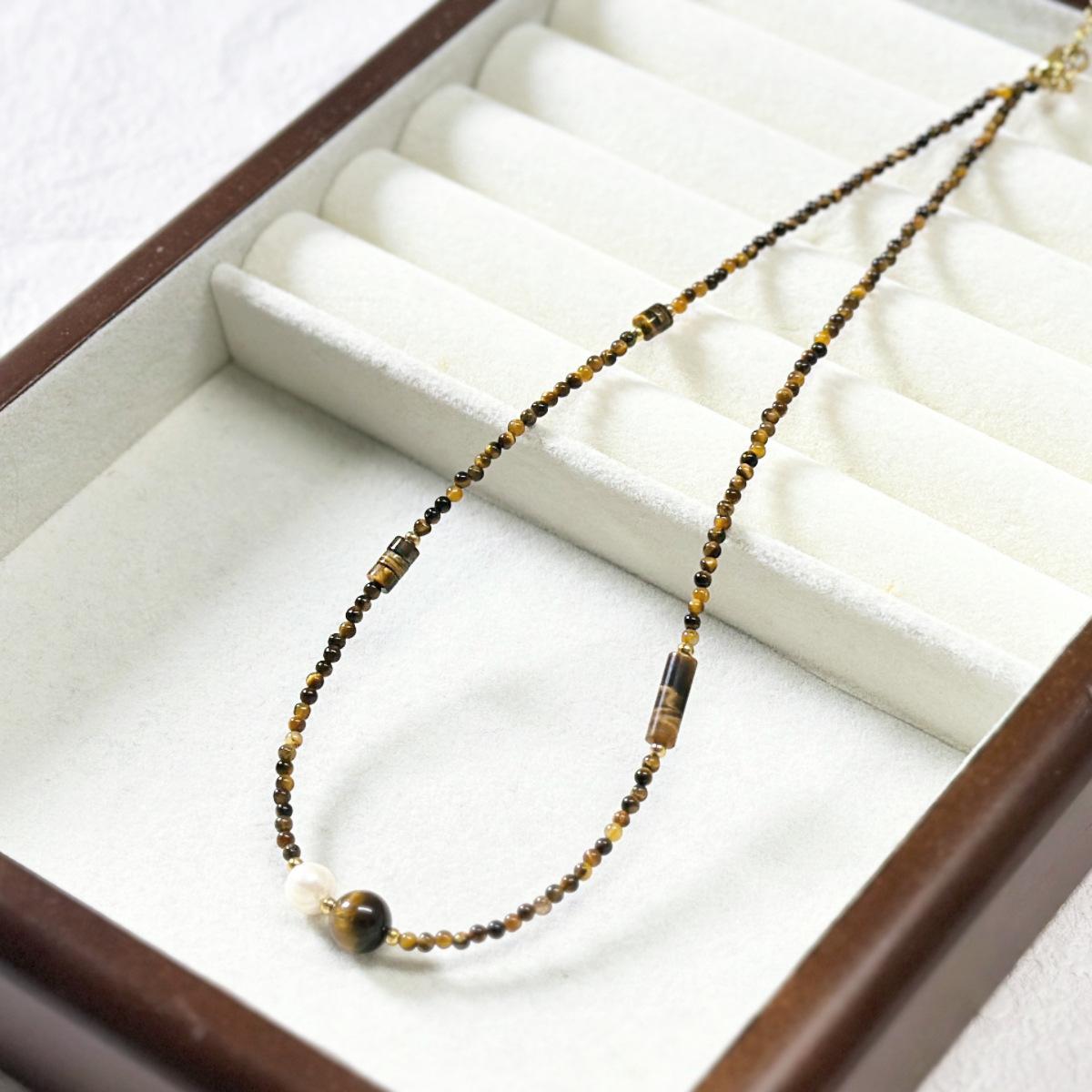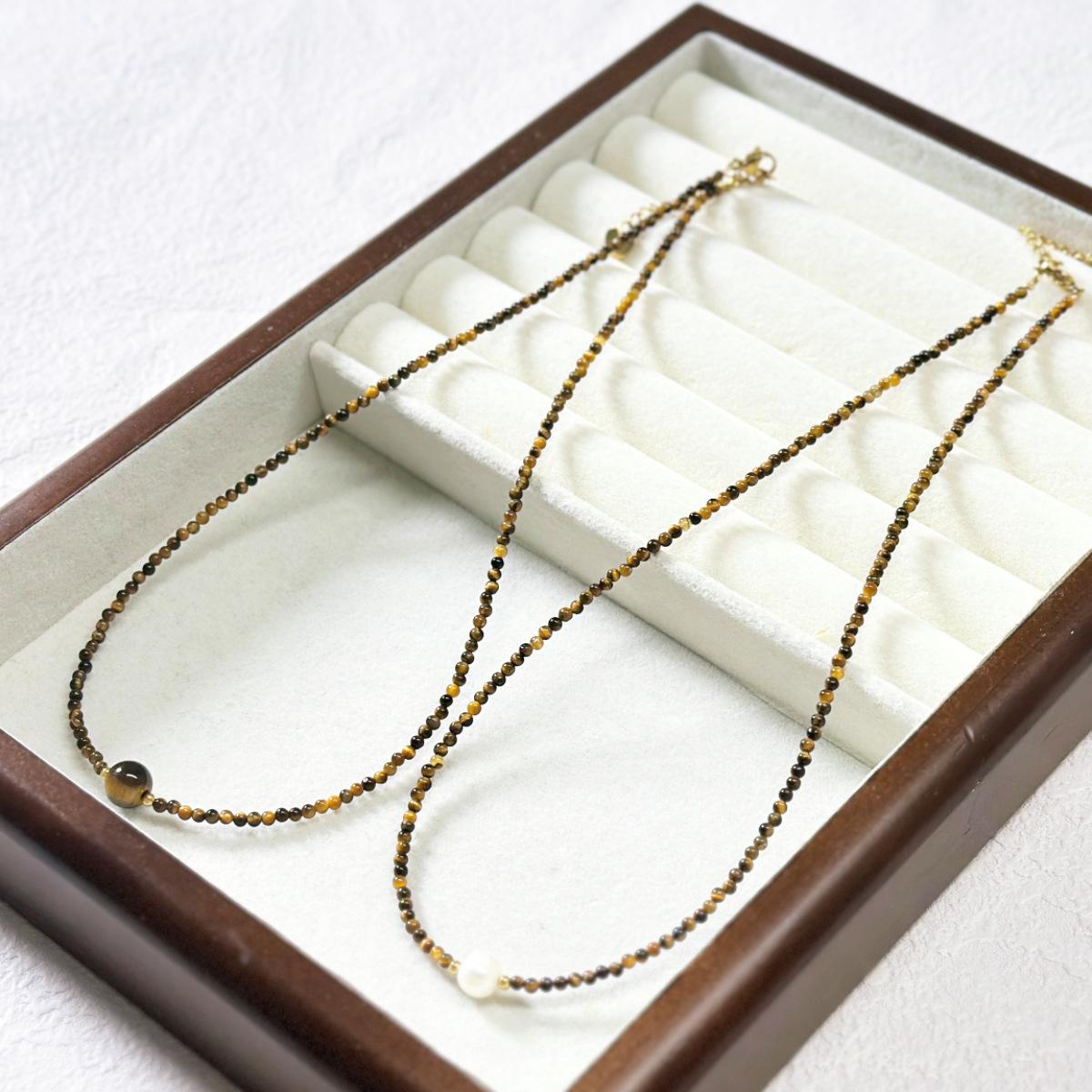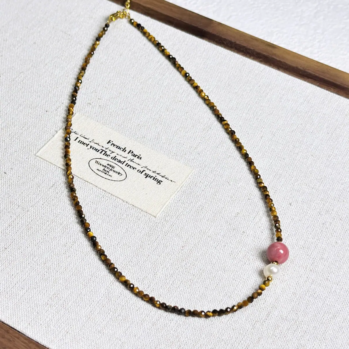 Tiger eye freshwater pearl ball necklace-titanium steel