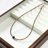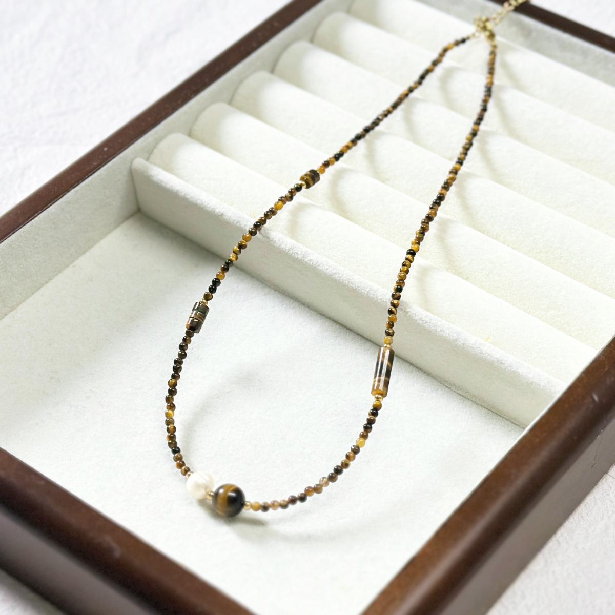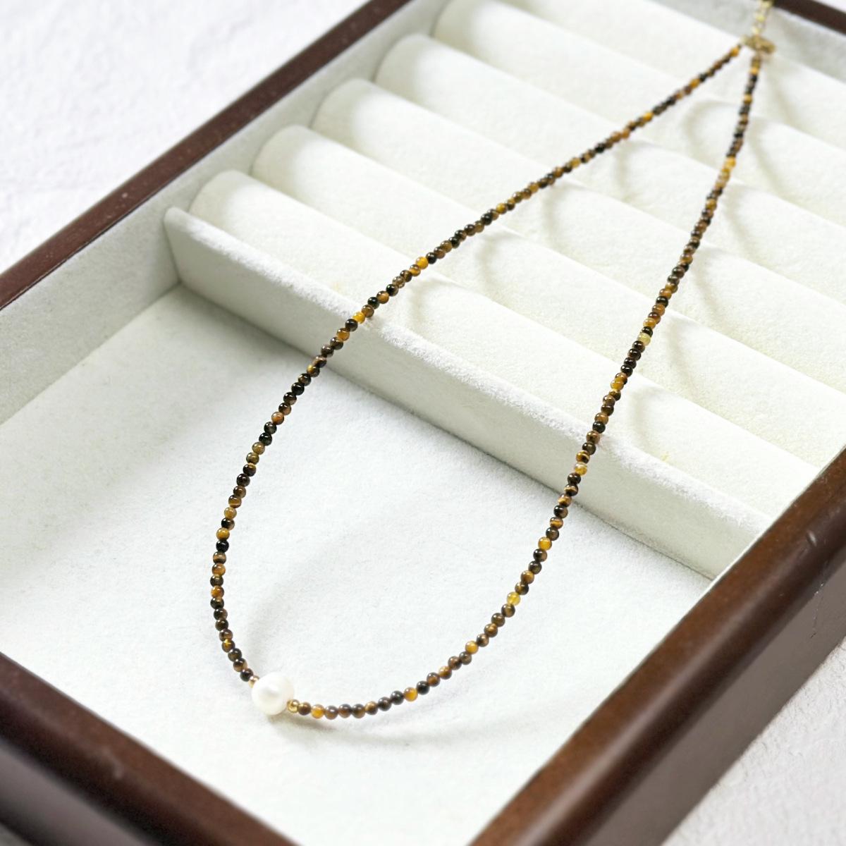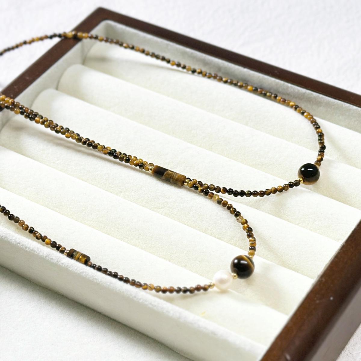 Tiger eye freshwater pearl ball necklace-titanium steel