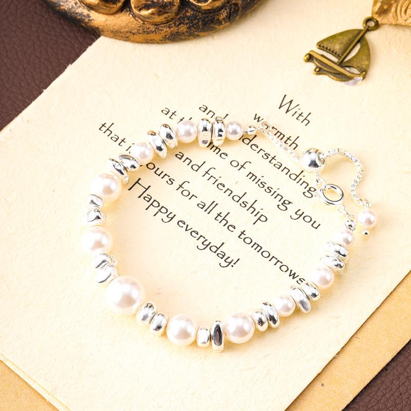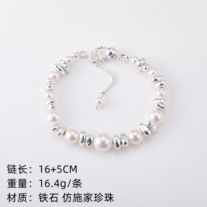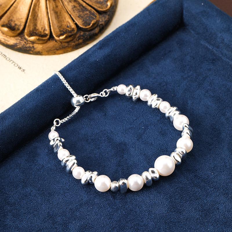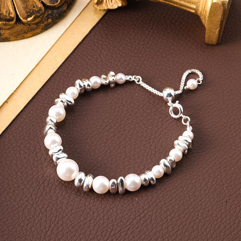 Pulsera Simple Elegante Estilo Coreano Pulsera de Perlas Plata Rota Pulsera de Diseño de Moda de Lujo Ligero de Alta Gama para Mujeres