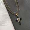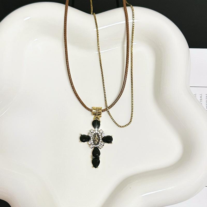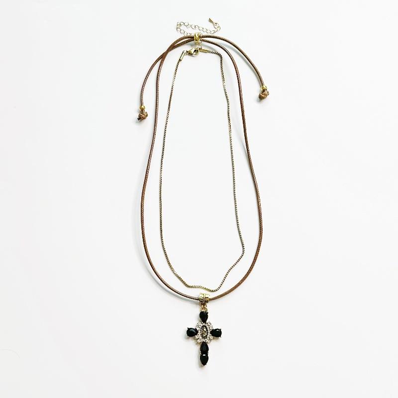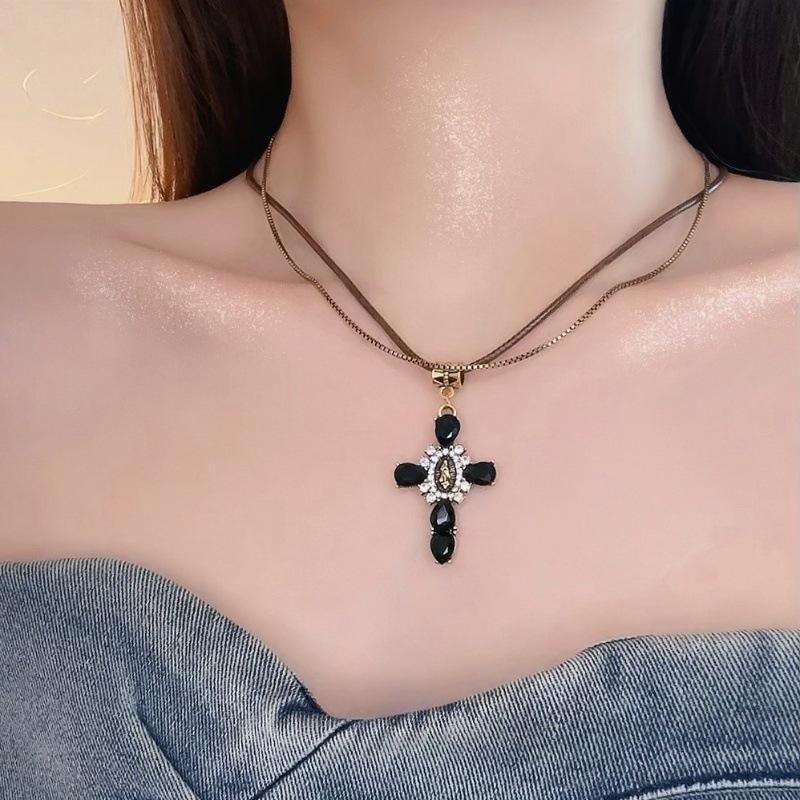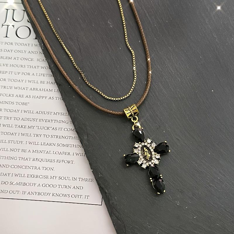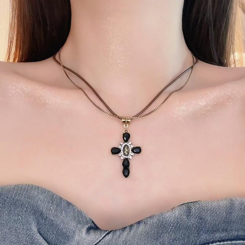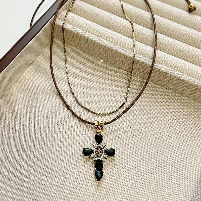 Collar Europeo y Americano Tejido Doble Capa Cruz para Mujer Nicho Retro Lujo Ligero Cadena Clavícula Diseño de Personalidad Única Cadena Collar Verano