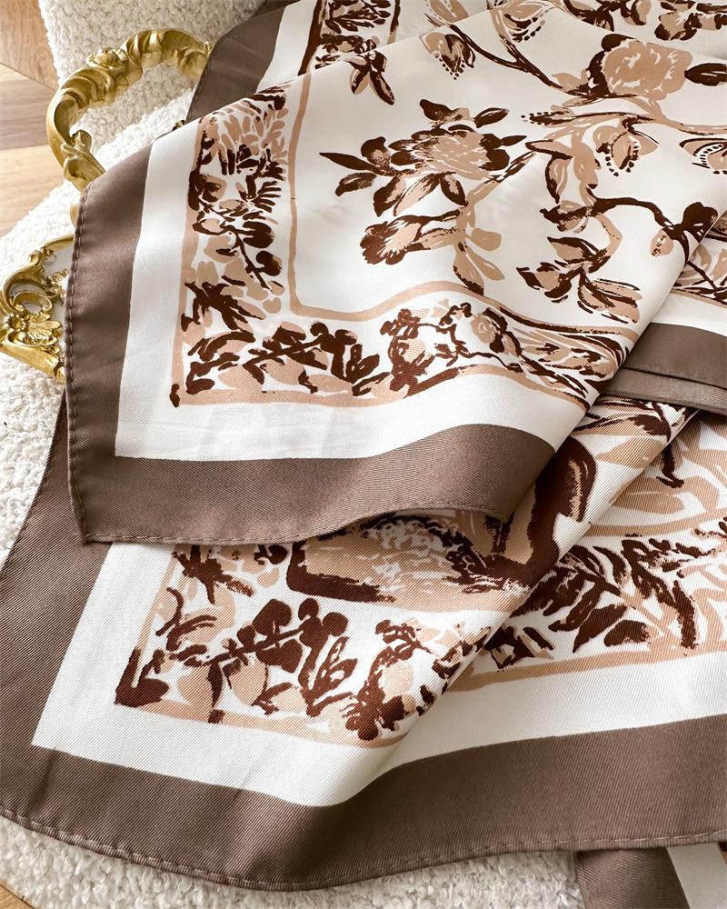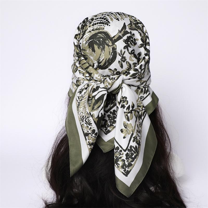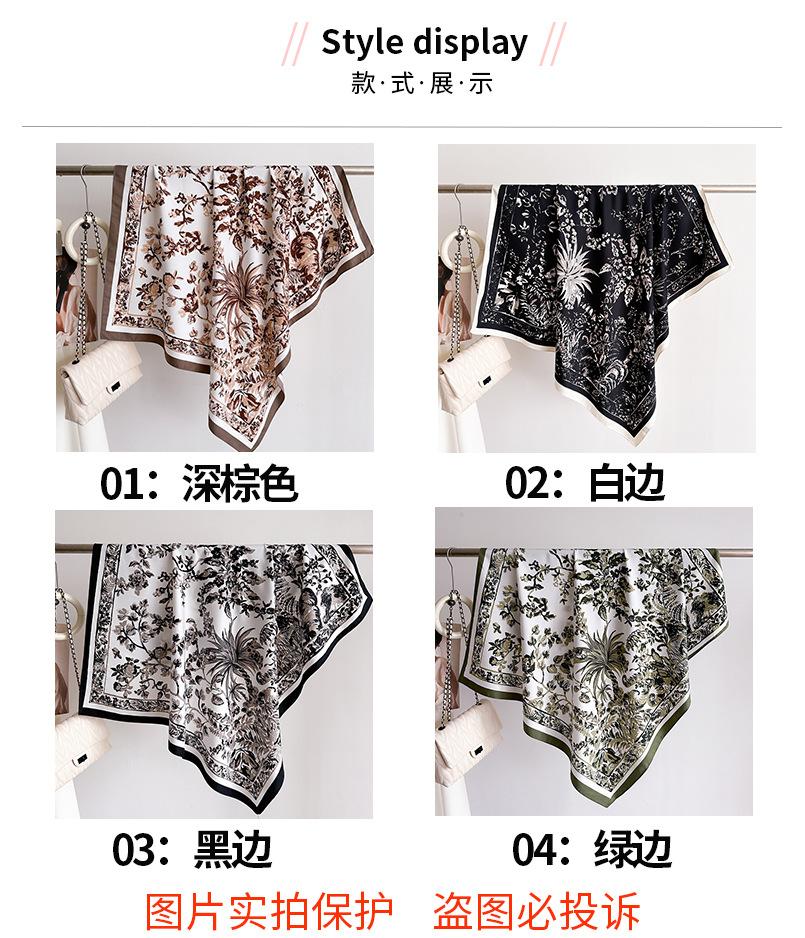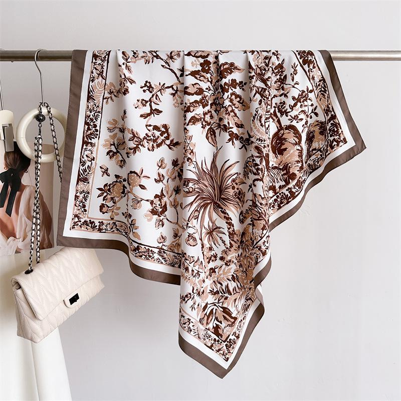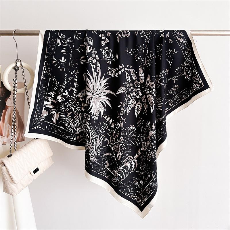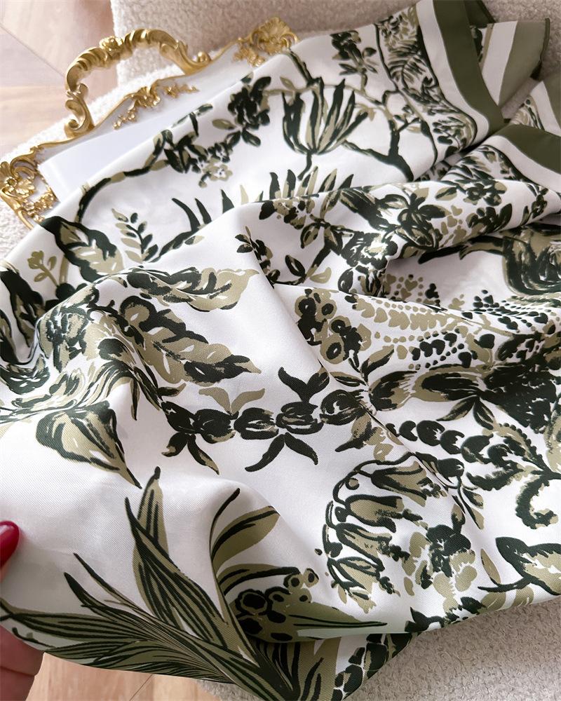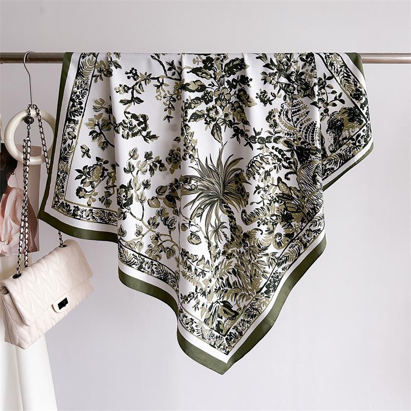 Moda Europea y Americana Planta Flor 90 Imitación Seda Pañuelo Cuadrado Grande Vintage Estampado Chal Combinable Pañuelo de Seda Oblicuo Cinta