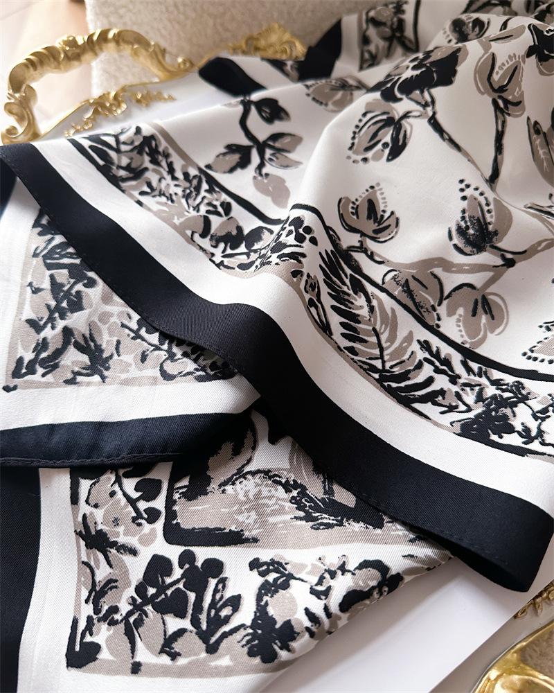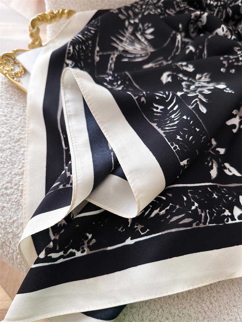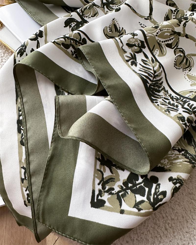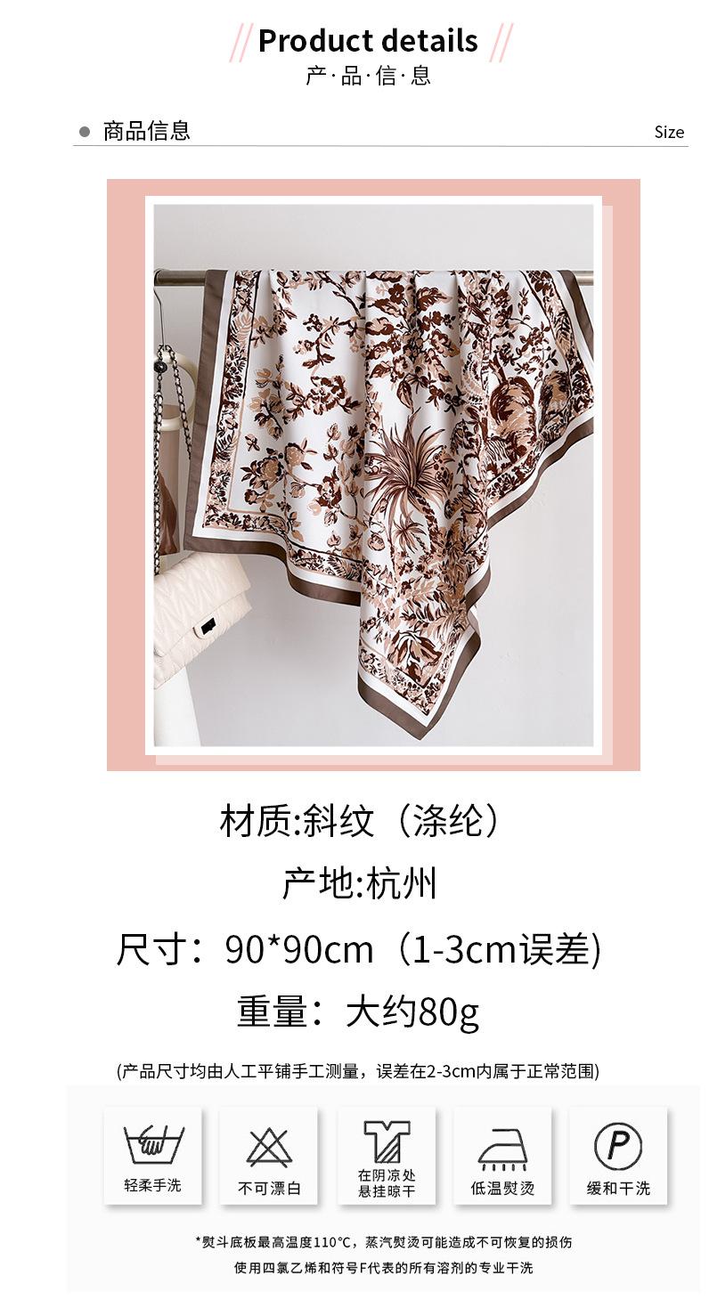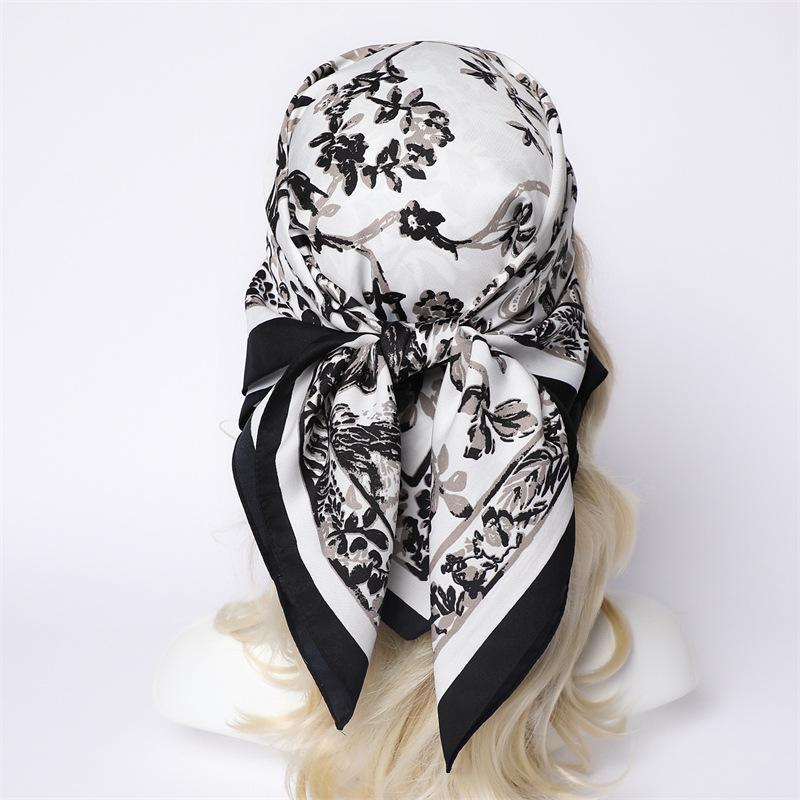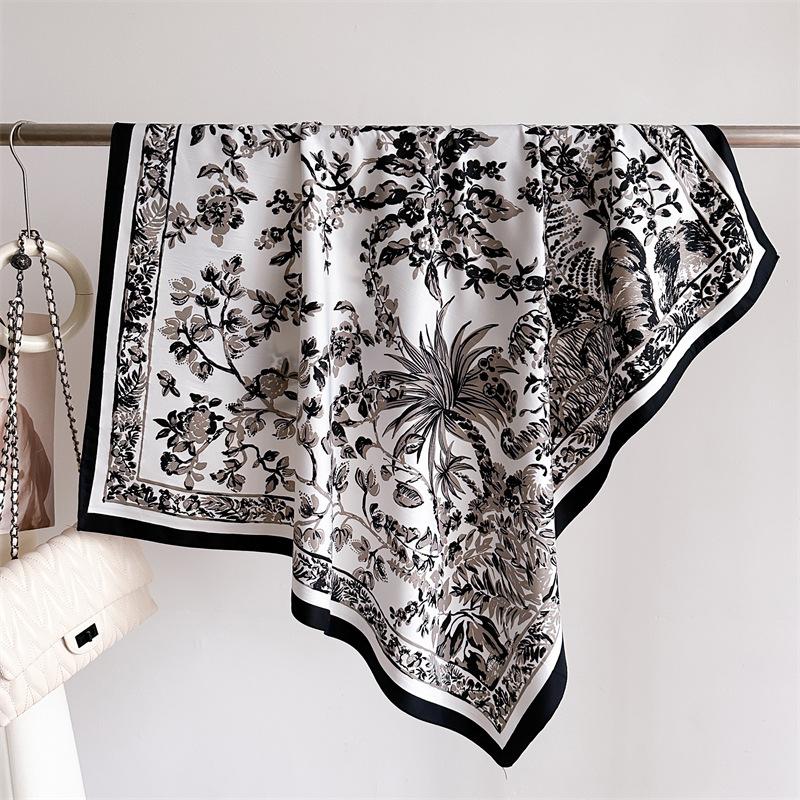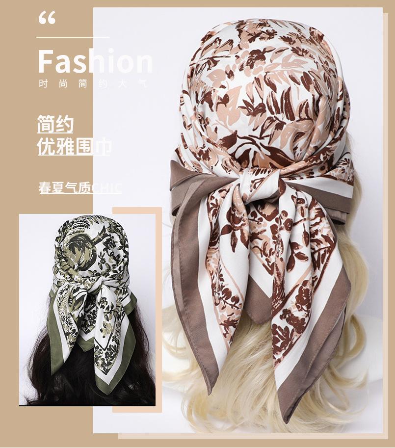 Moda Europea y Americana Planta Flor 90 Imitación Seda Pañuelo Cuadrado Grande Vintage Estampado Chal Combinable Pañuelo de Seda Oblicuo Cinta