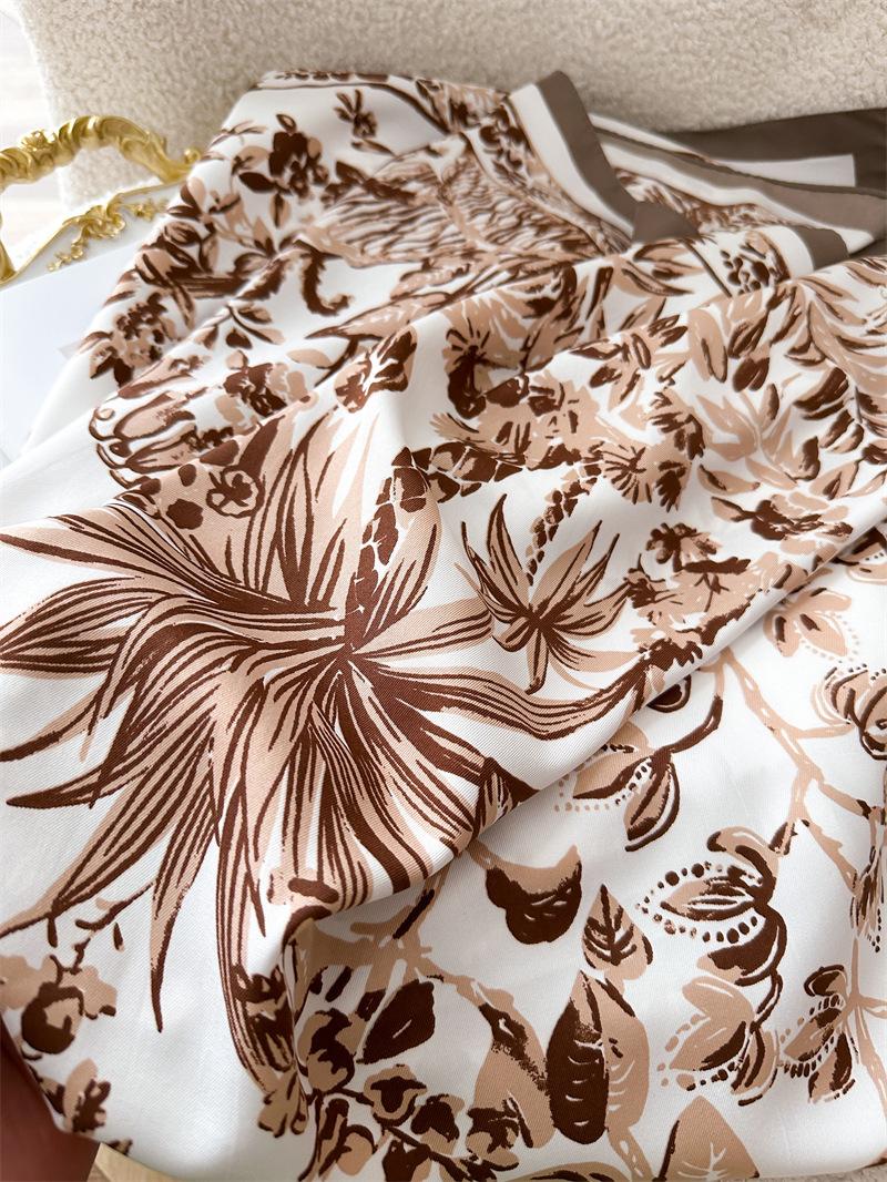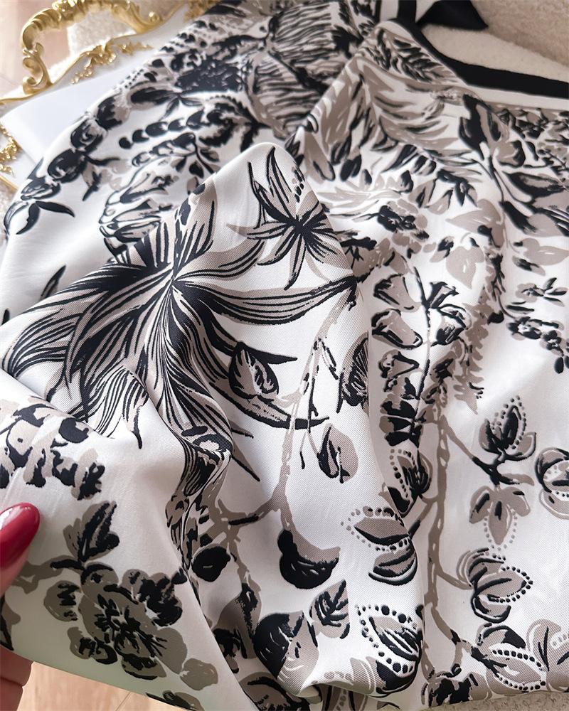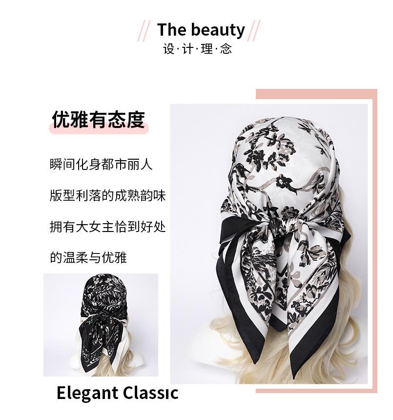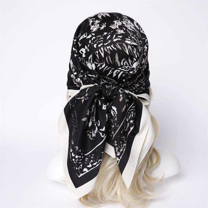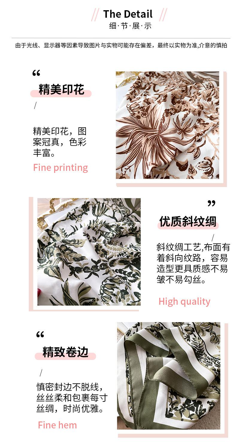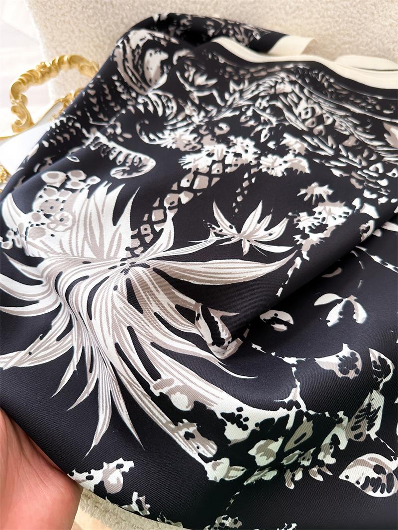 Moda Europea y Americana Planta Flor 90 Imitación Seda Pañuelo Cuadrado Grande Vintage Estampado Chal Combinable Pañuelo de Seda Oblicuo Cinta