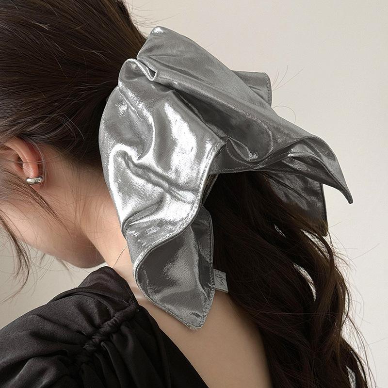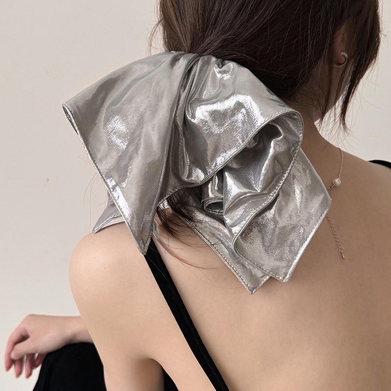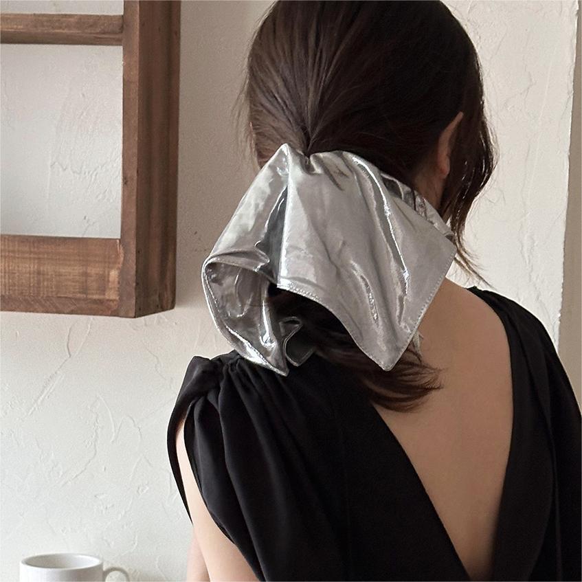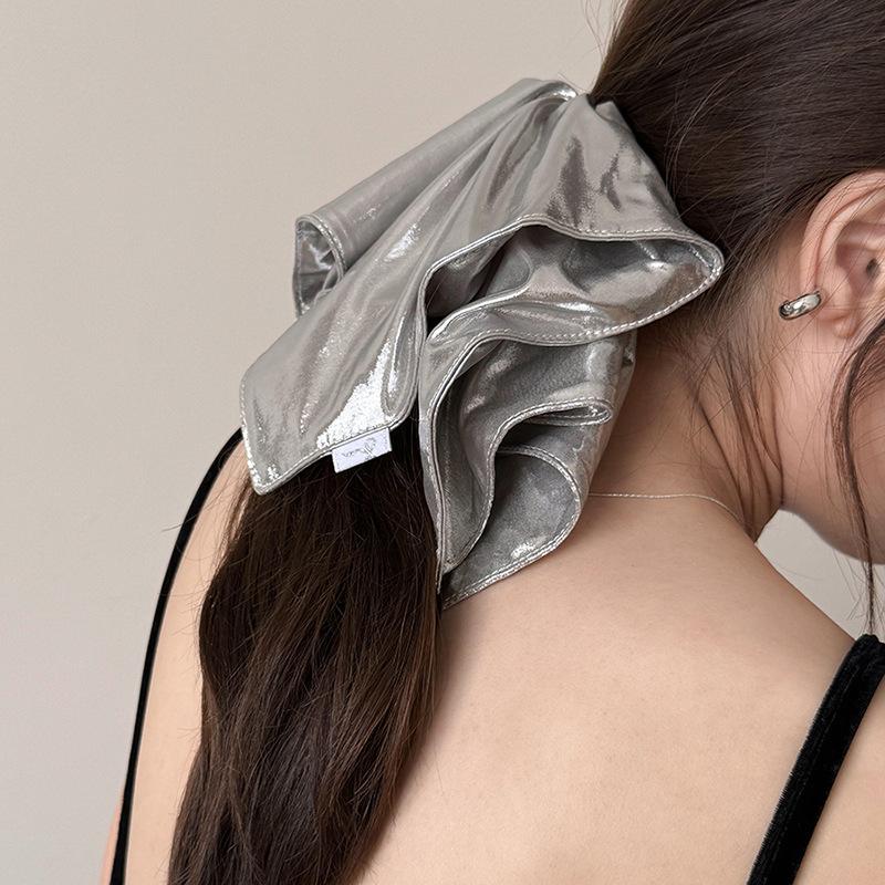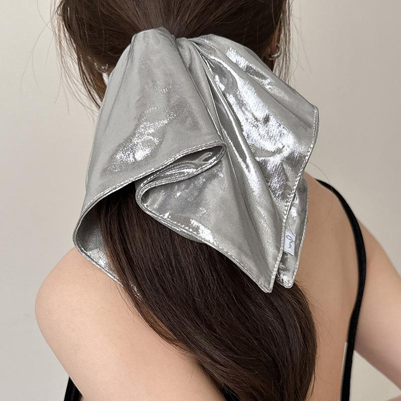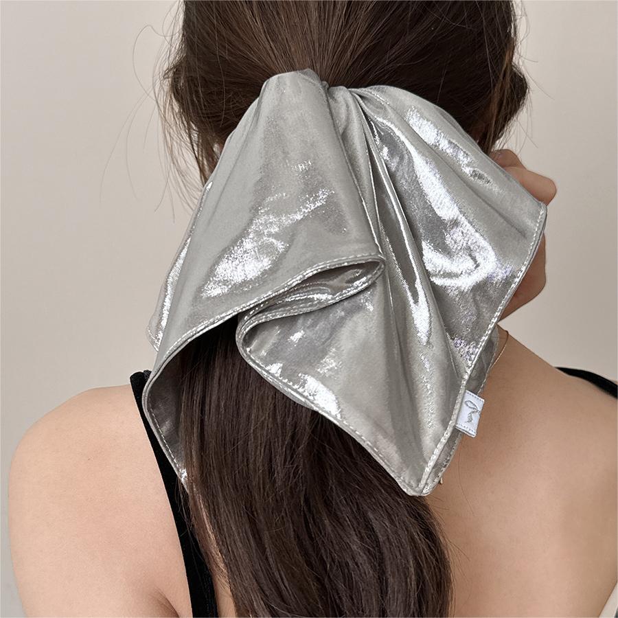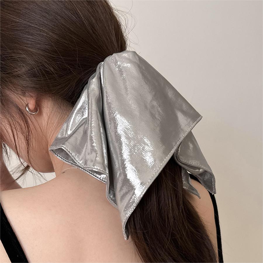 Estilo Coreano Cara Brillante Plata Cuadrado Anillo para el Cabello Intestino Grueso Moda Elegante Cuerda para el Cabello Nicho de Gama Alta Cuerda para el Cabello Tocado para Mujer
