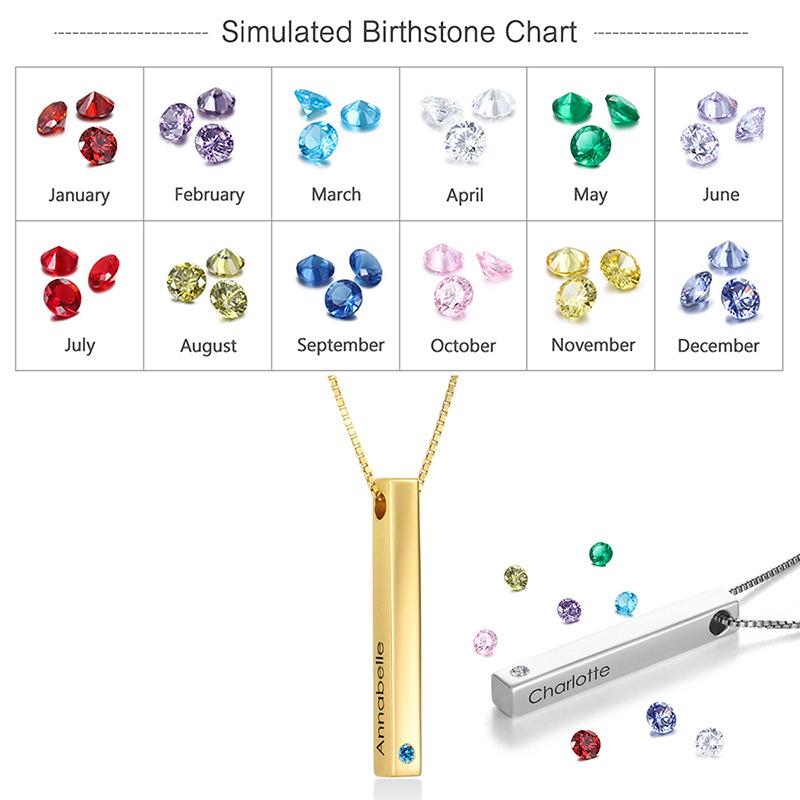 [Nombre del producto]: Collar grabado de barra cuadrada de piedra natal