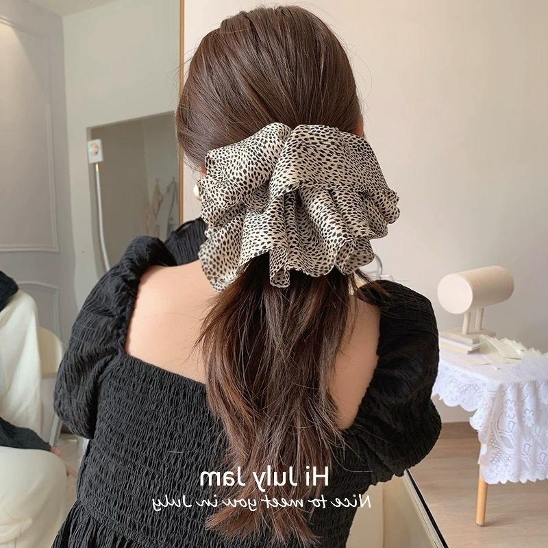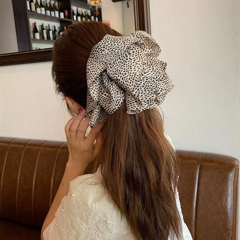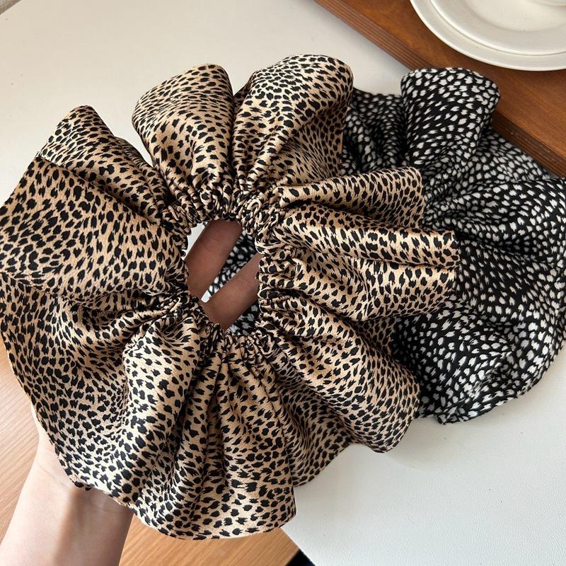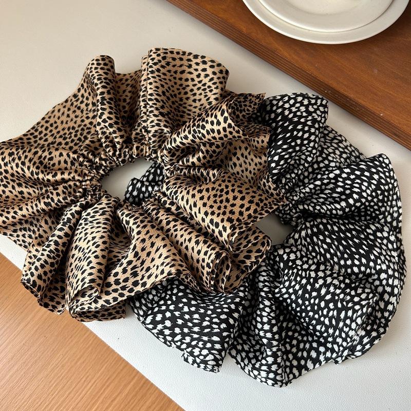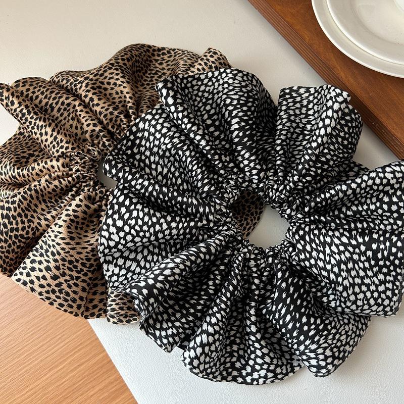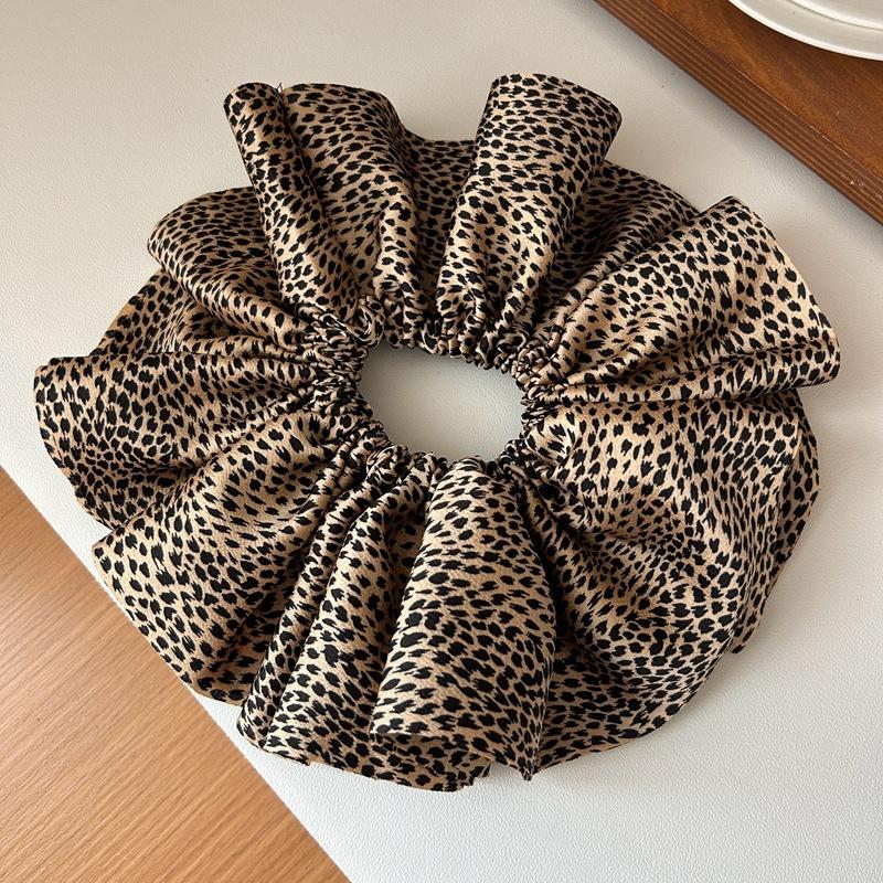 Estilo Coreano Estampado Leopardo Satén Flor Grande Cuerda para el Cabello Moda Nuevo Anillo para el Cabello Intestino Grueso de Alta Gama Elegante Diadema para Cola de Caballo Baja