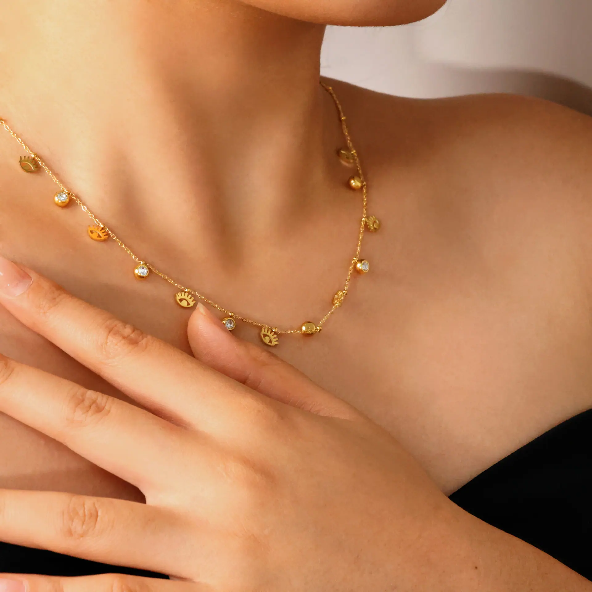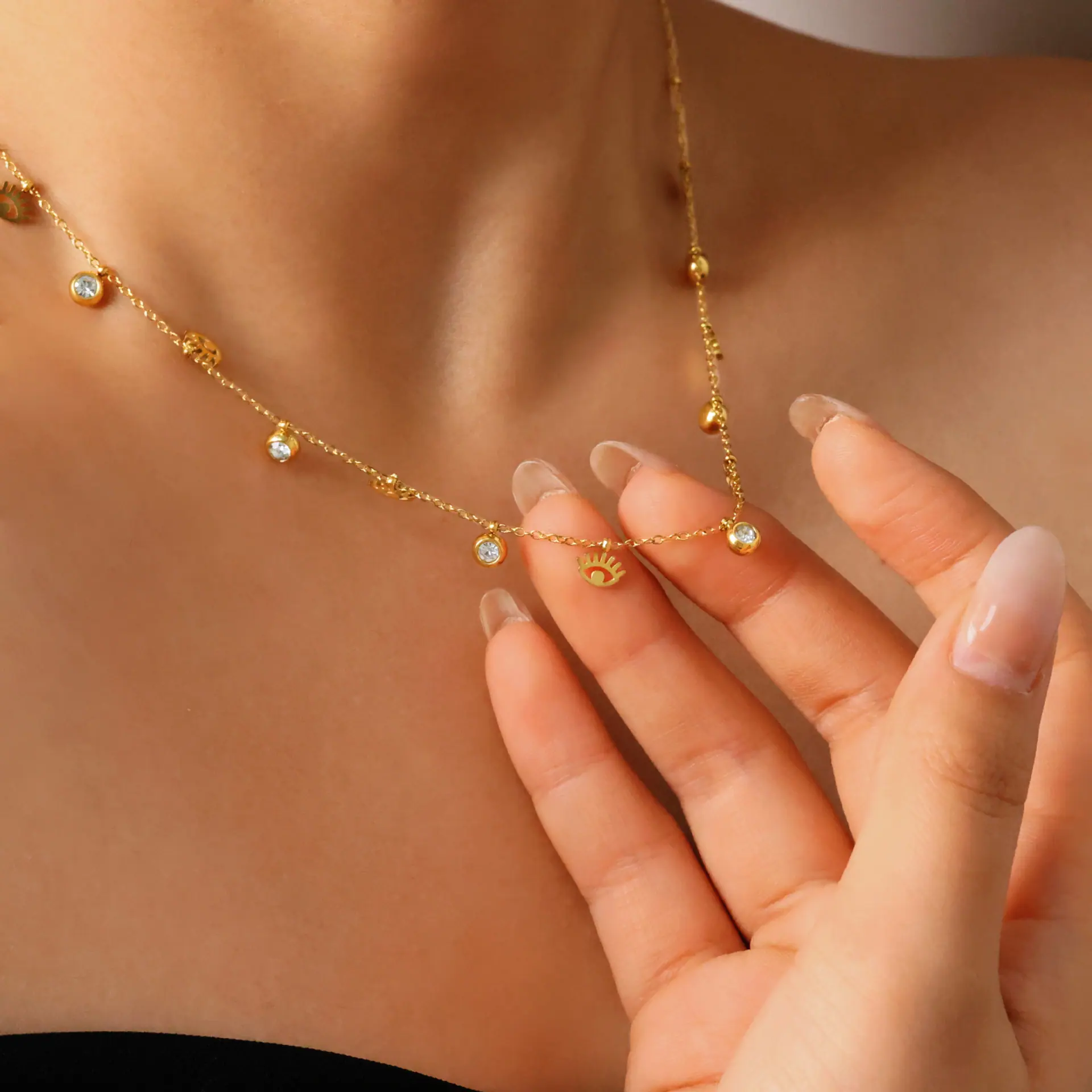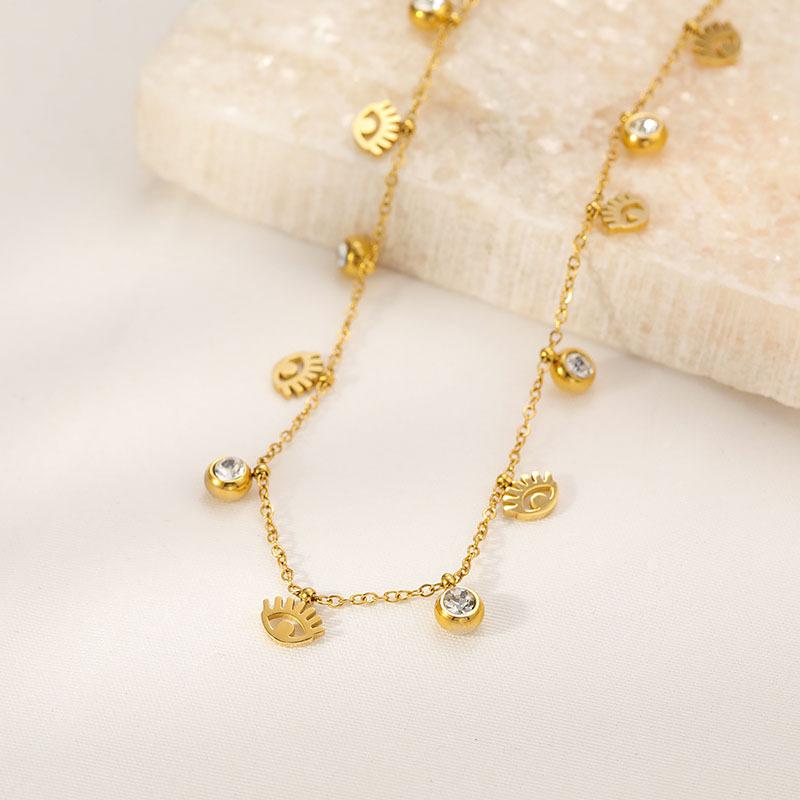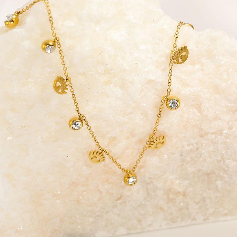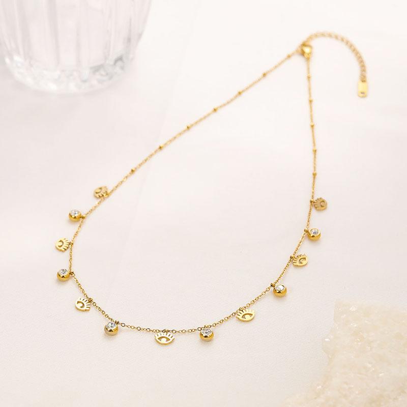 Cadena Clavícula Retro Nicho Francés Lujo Ligero Moda Elegante Colgante Ojo Acero Titanio Collar Mujer Venta al por Mayor de Fábrica Todo Combina