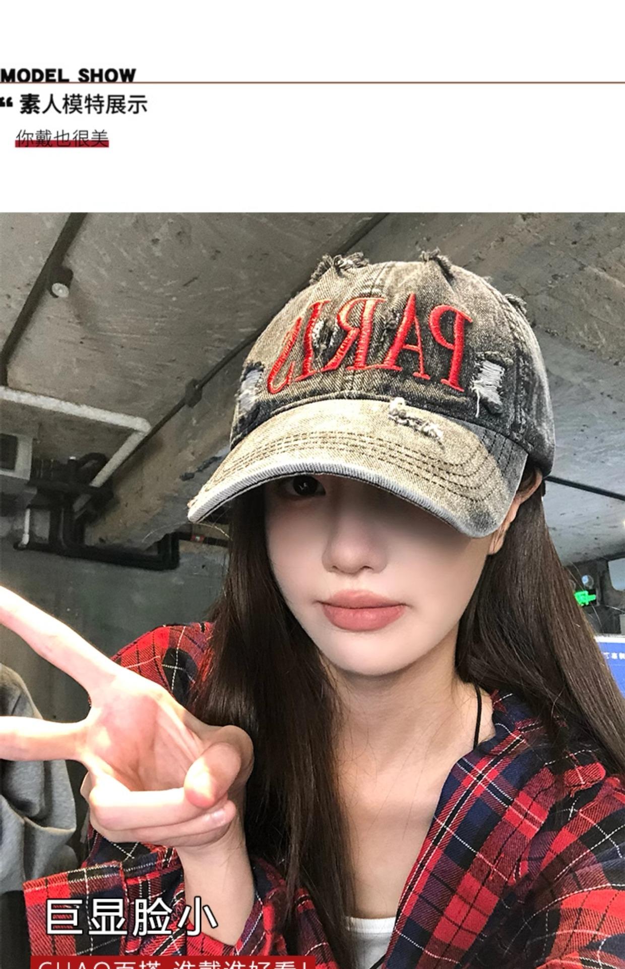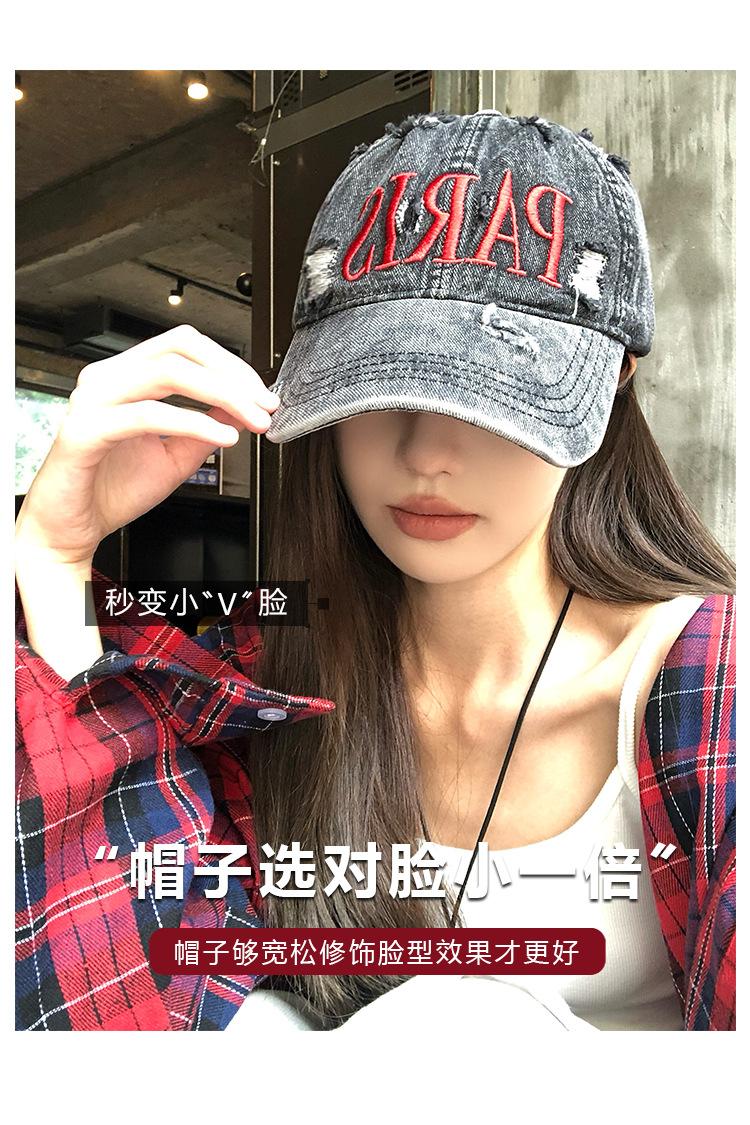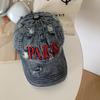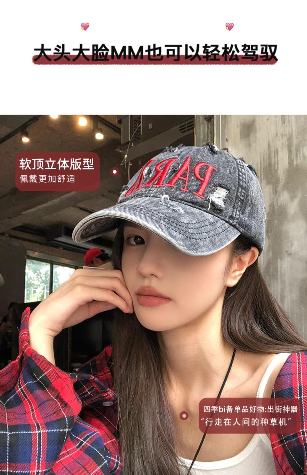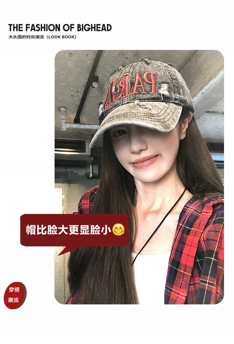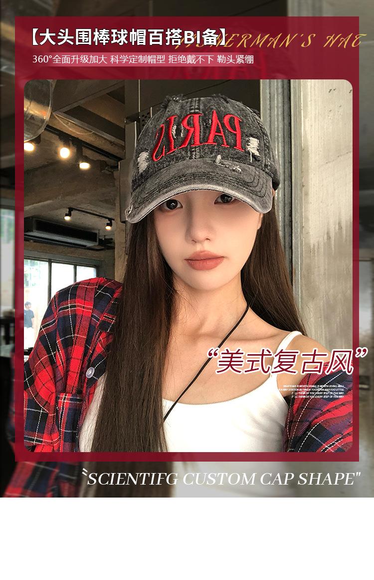 Gorra de Béisbol de Mezclilla Vieja con Agujero Bordado del Alfabeto Americano para Mujer, Chica Caliente Urbana Retro, Cabeza Grande, Ala Ancha