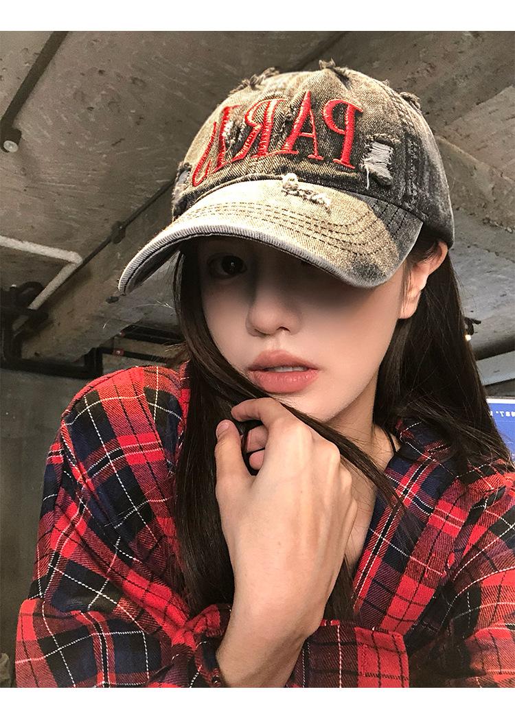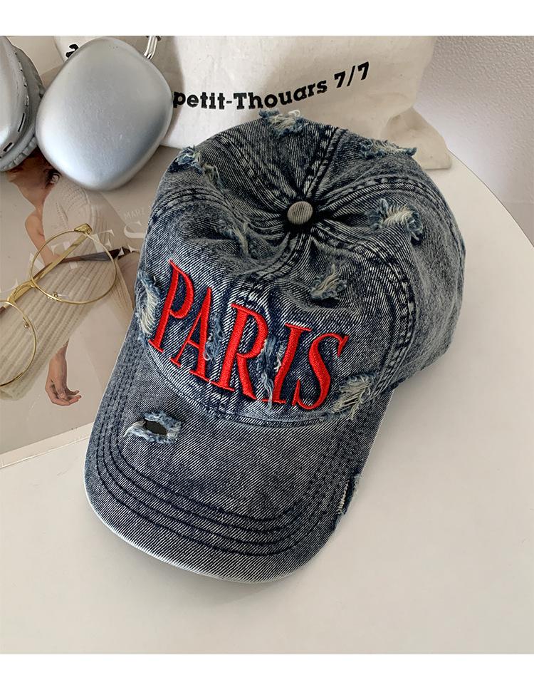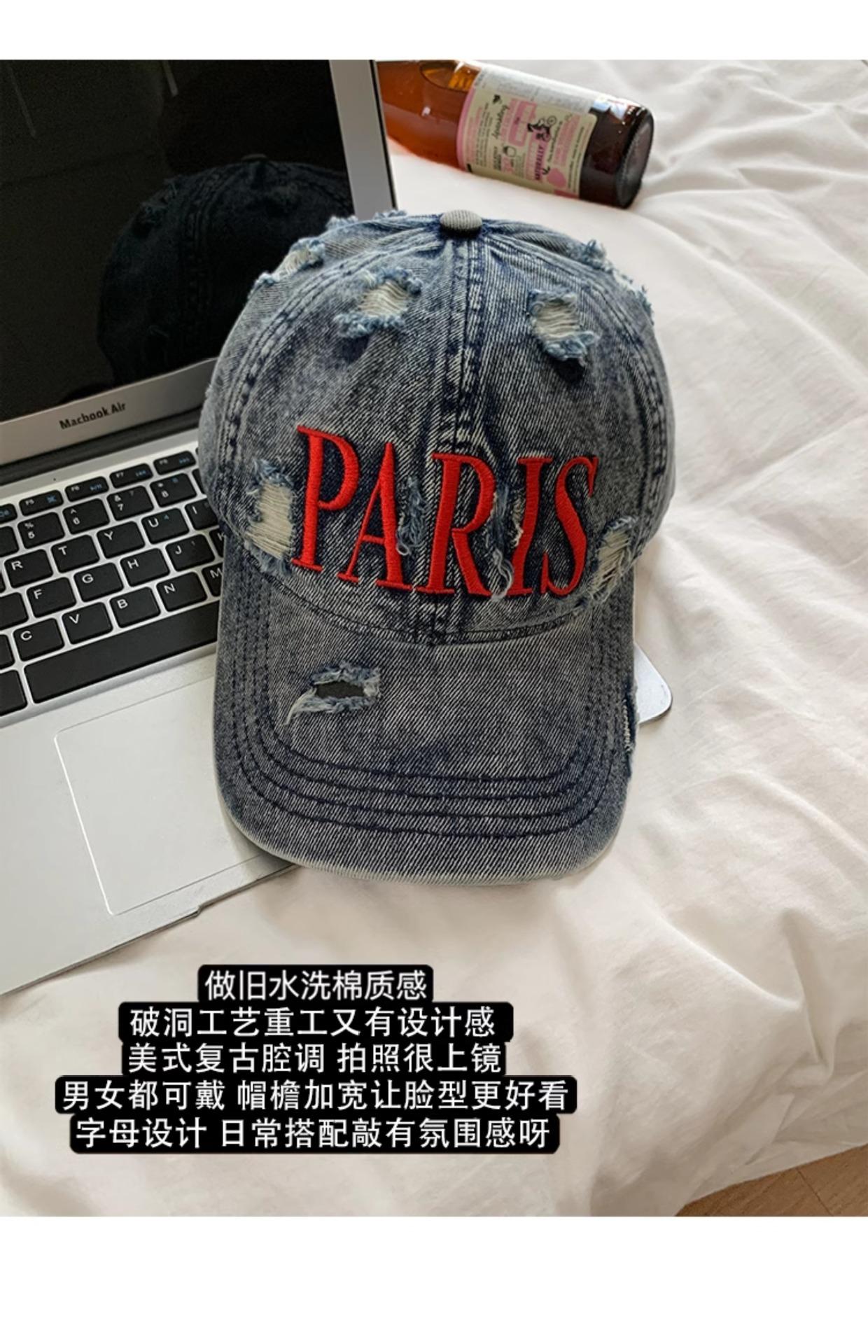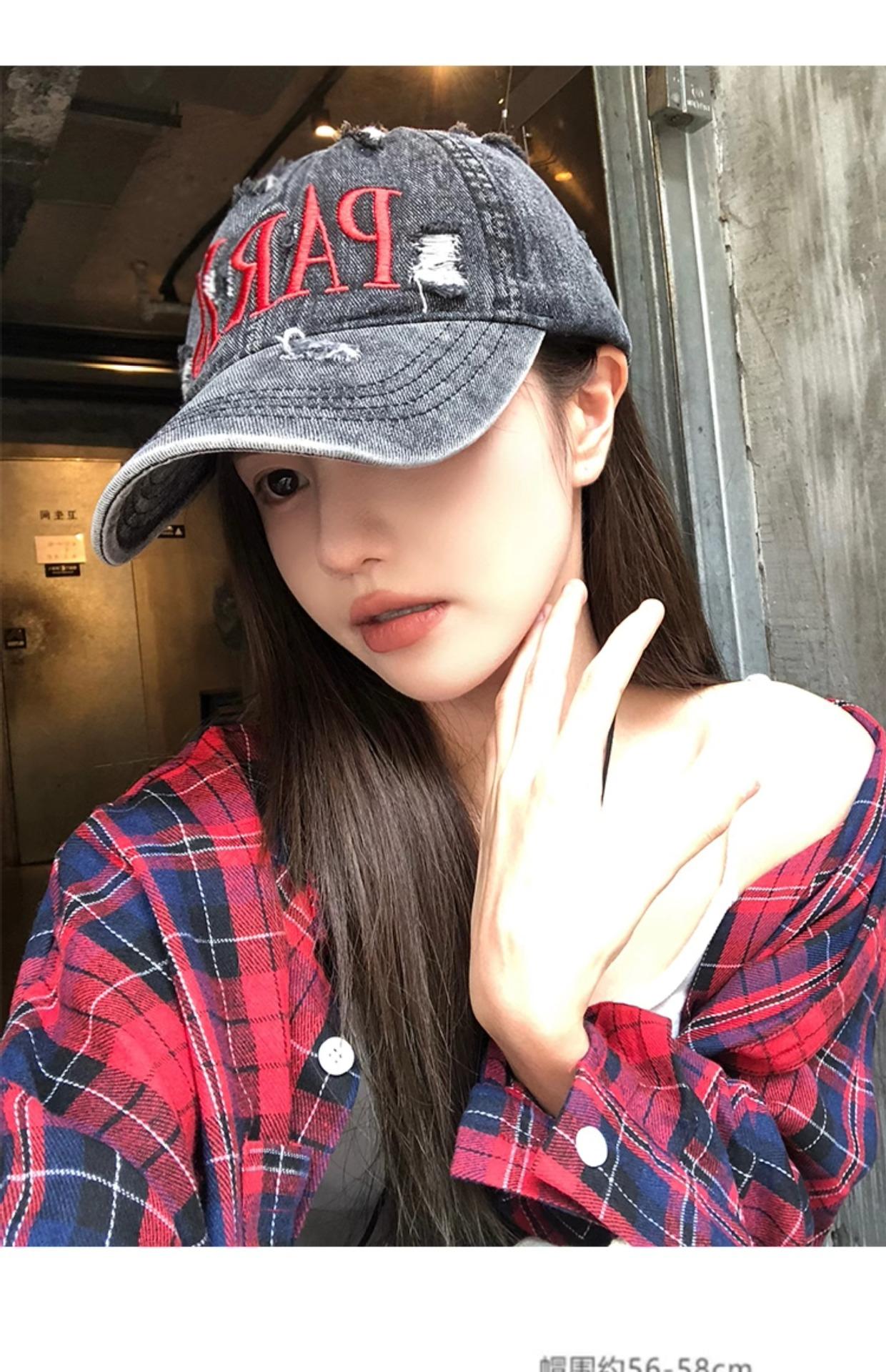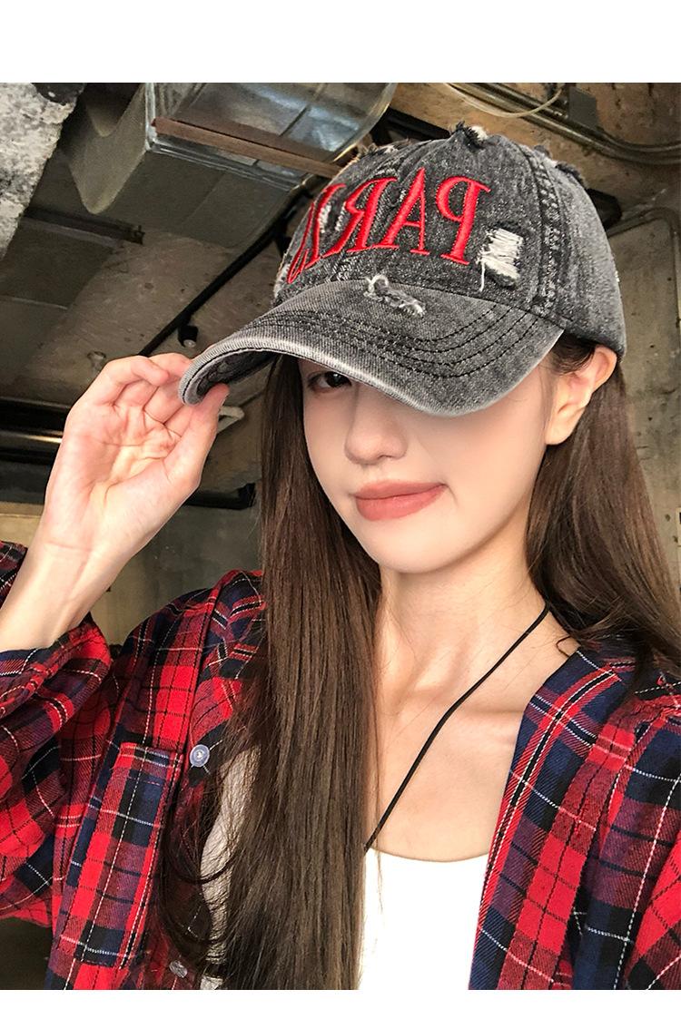 Gorra de Béisbol de Mezclilla Vieja con Agujero Bordado del Alfabeto Americano para Mujer, Chica Caliente Urbana Retro, Cabeza Grande, Ala Ancha