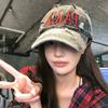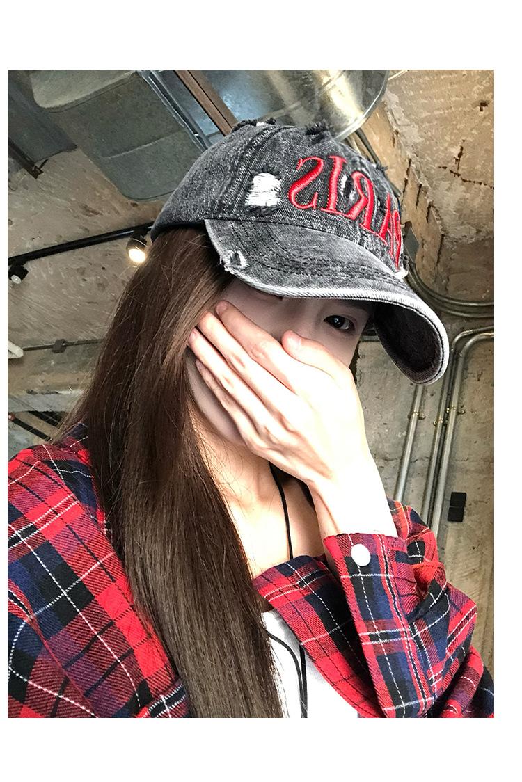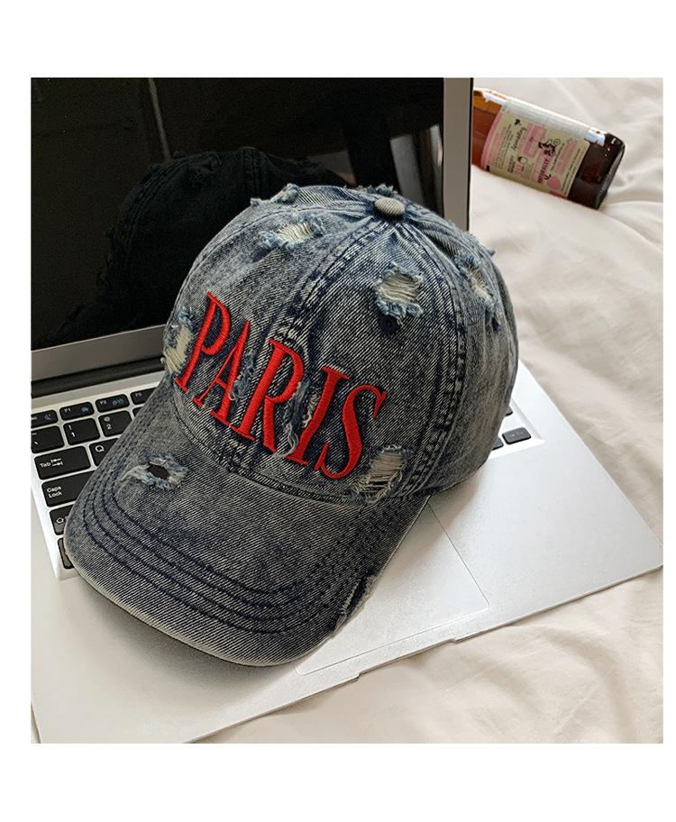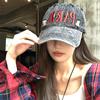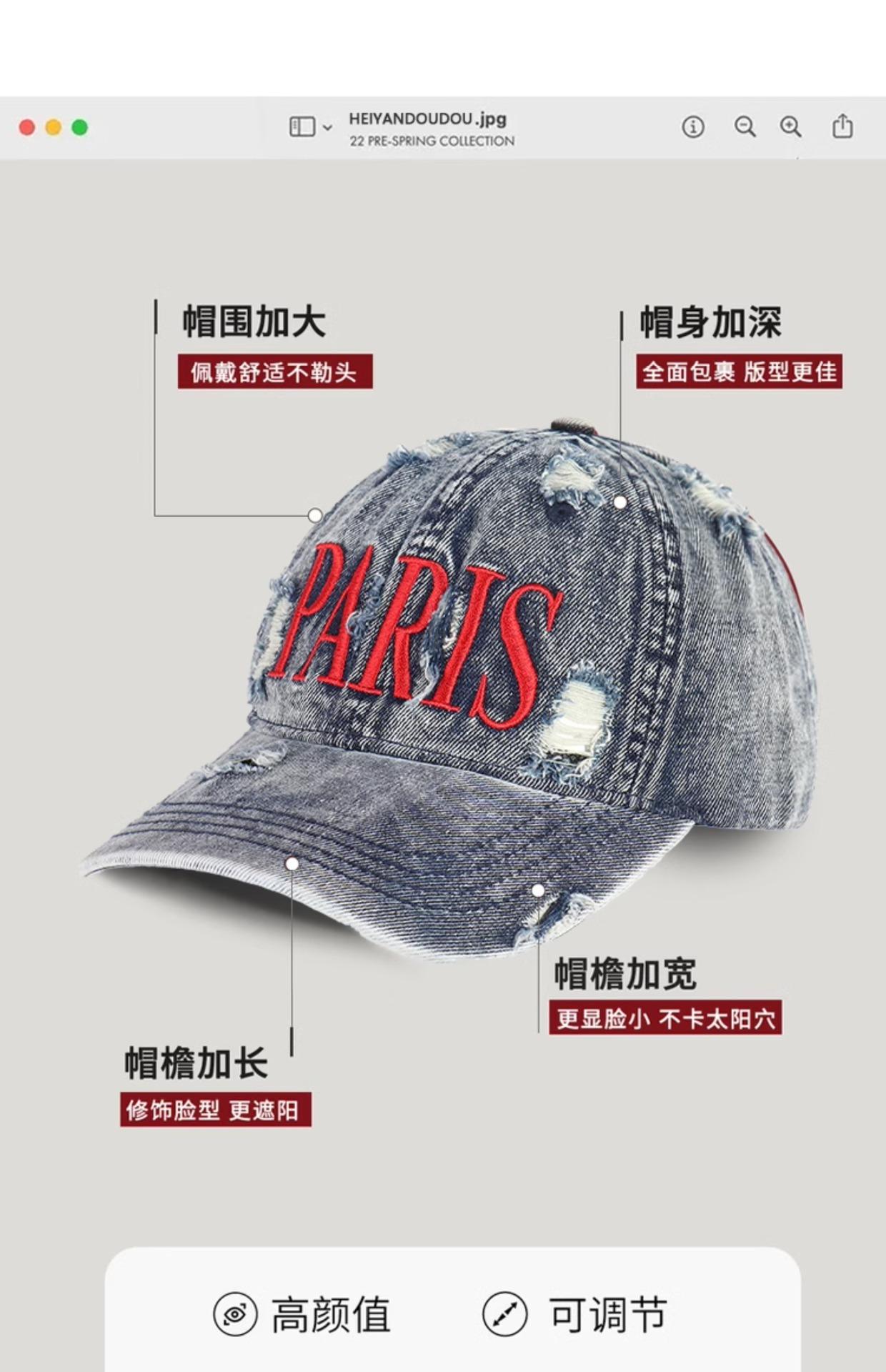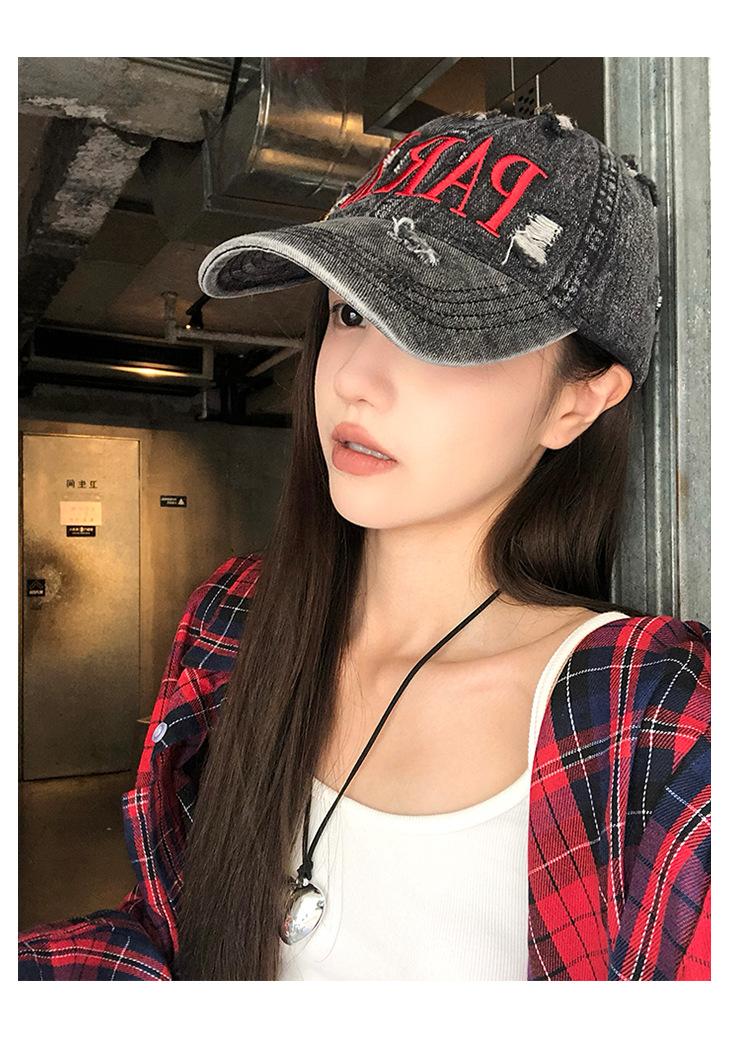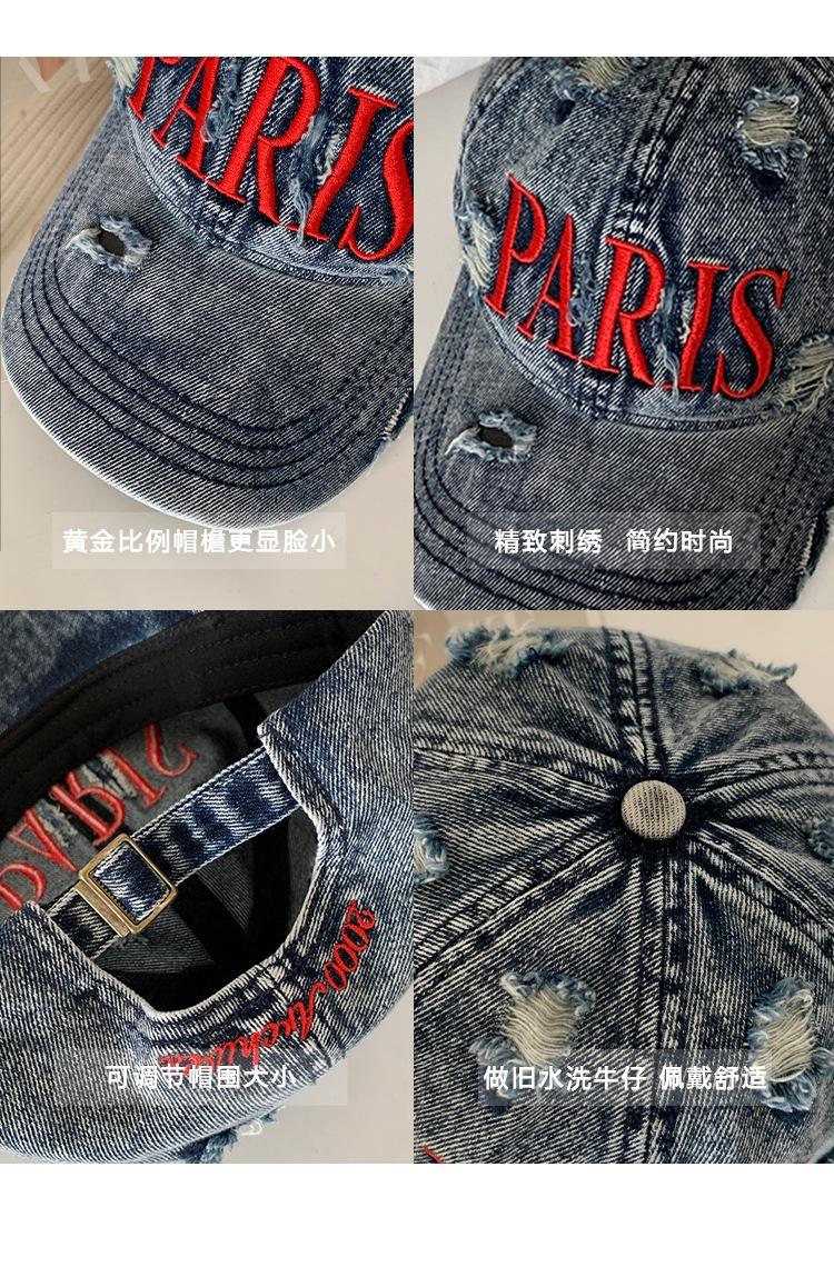 Gorra de Béisbol de Mezclilla Vieja con Agujero Bordado del Alfabeto Americano para Mujer, Chica Caliente Urbana Retro, Cabeza Grande, Ala Ancha