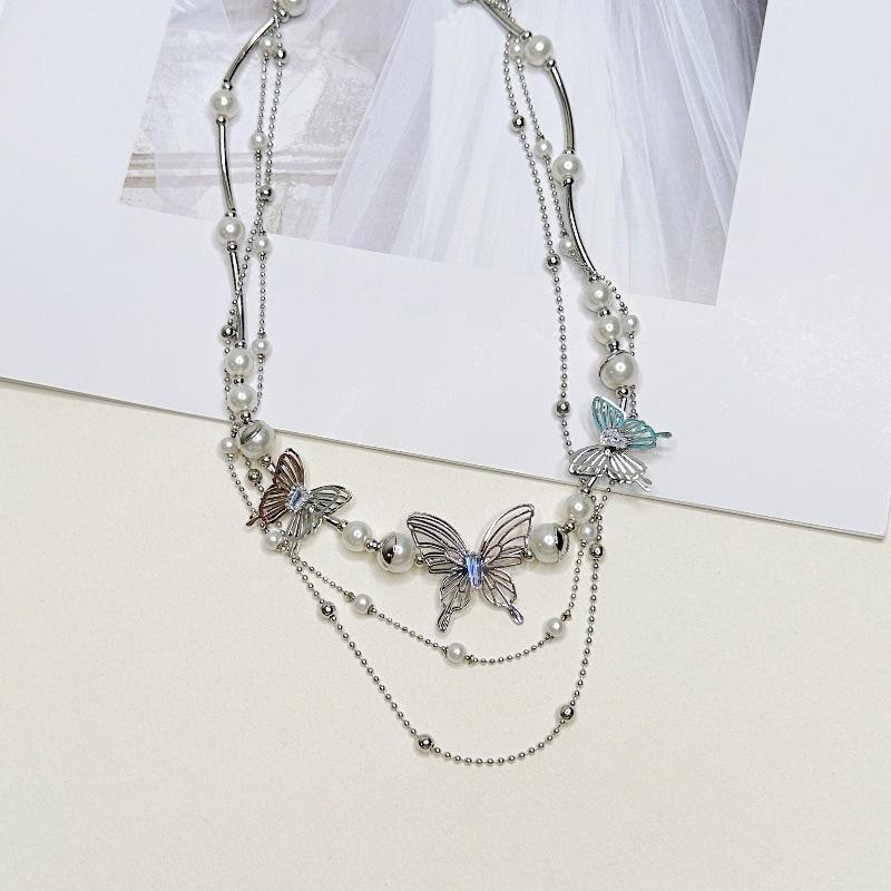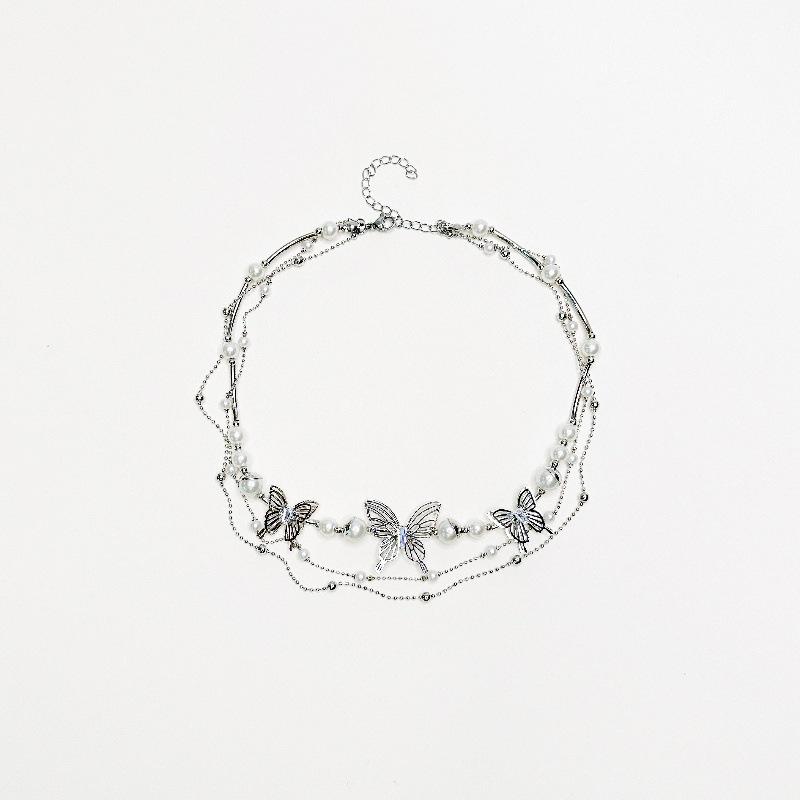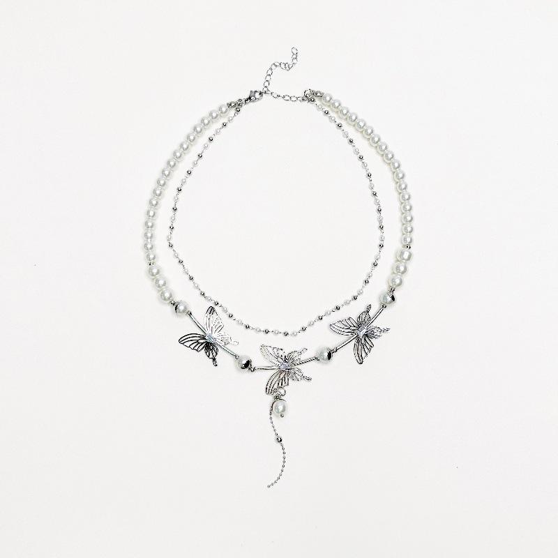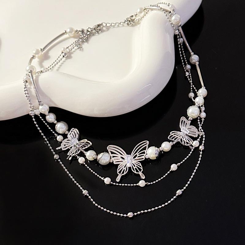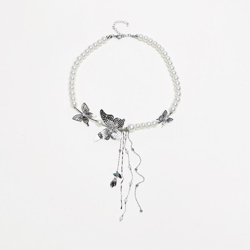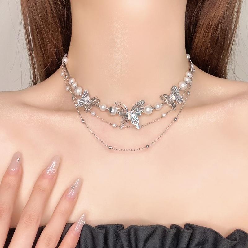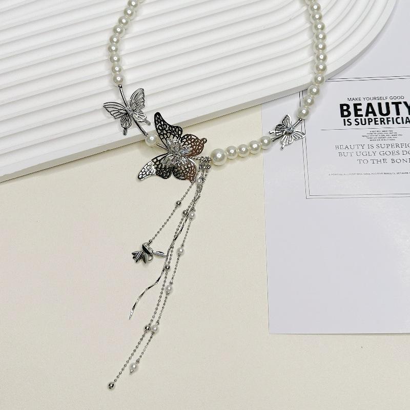 Collar con lazo de cristal y perla para mujer, gargantilla ligera de lujo con cadena de clavícula superior (2024)