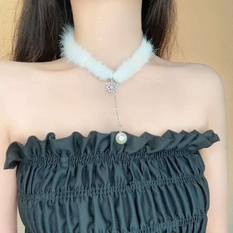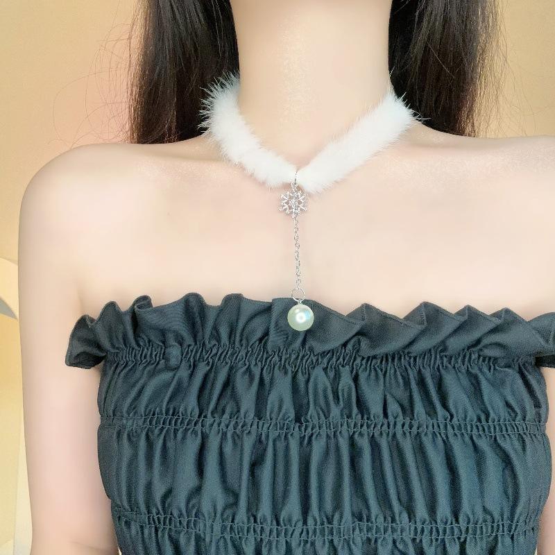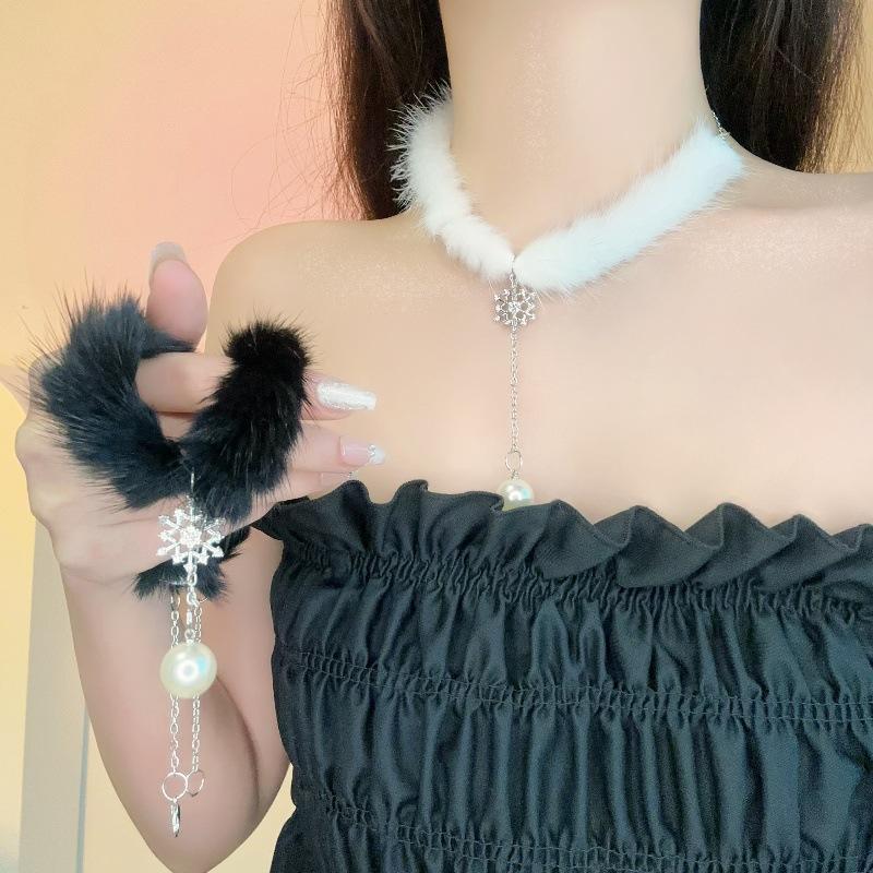Collar colgante de copo de nieve navideño peludo de otoño e invierno 2023 nueva atmósfera exquisito de alta gama versátil cadena clavicular