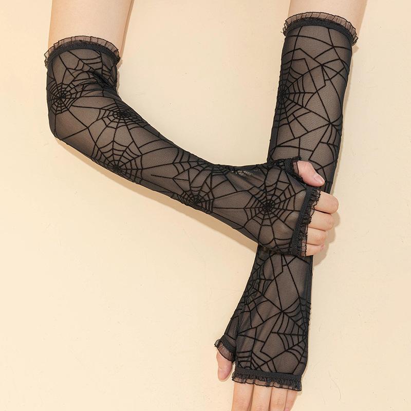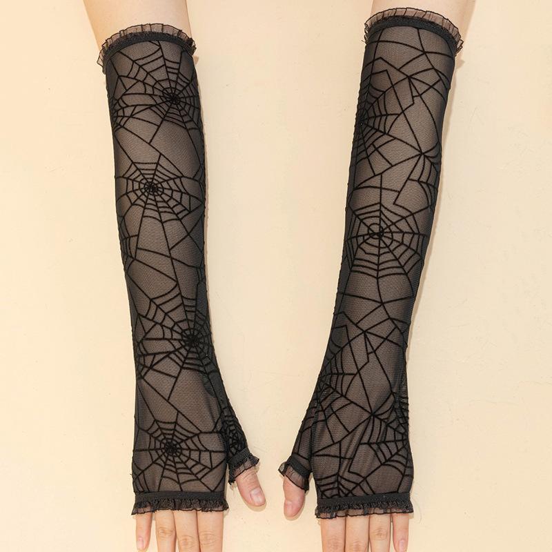 Guantes con dedos exhalados de telaraña transfronterizos para Halloween, disfraces de graduación, cosplay, guantes de actuación, guantes de fiesta