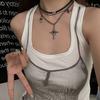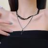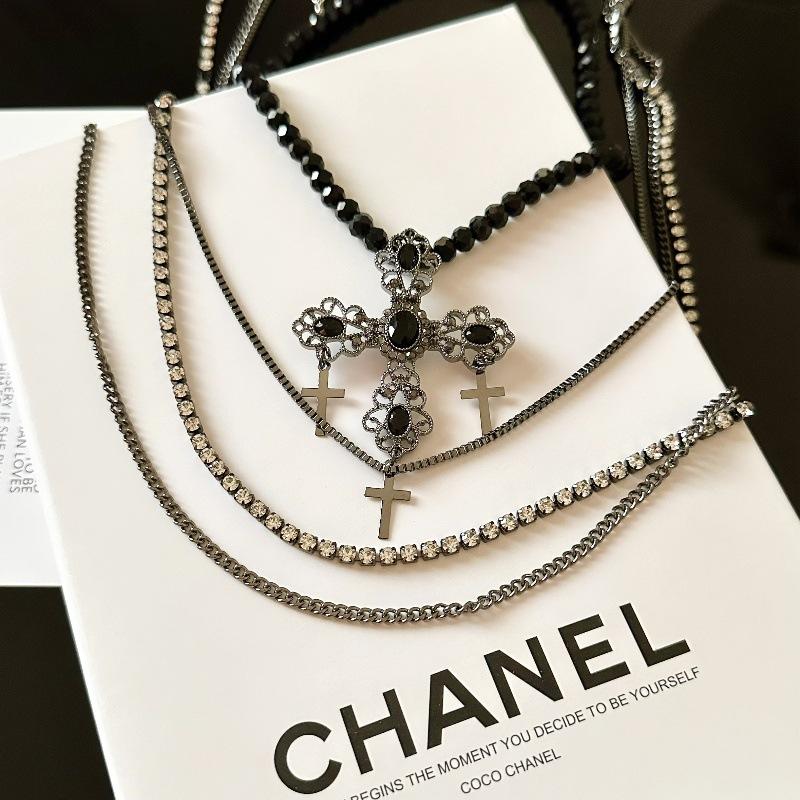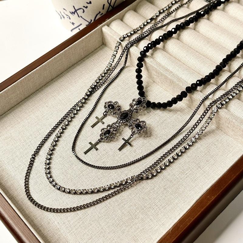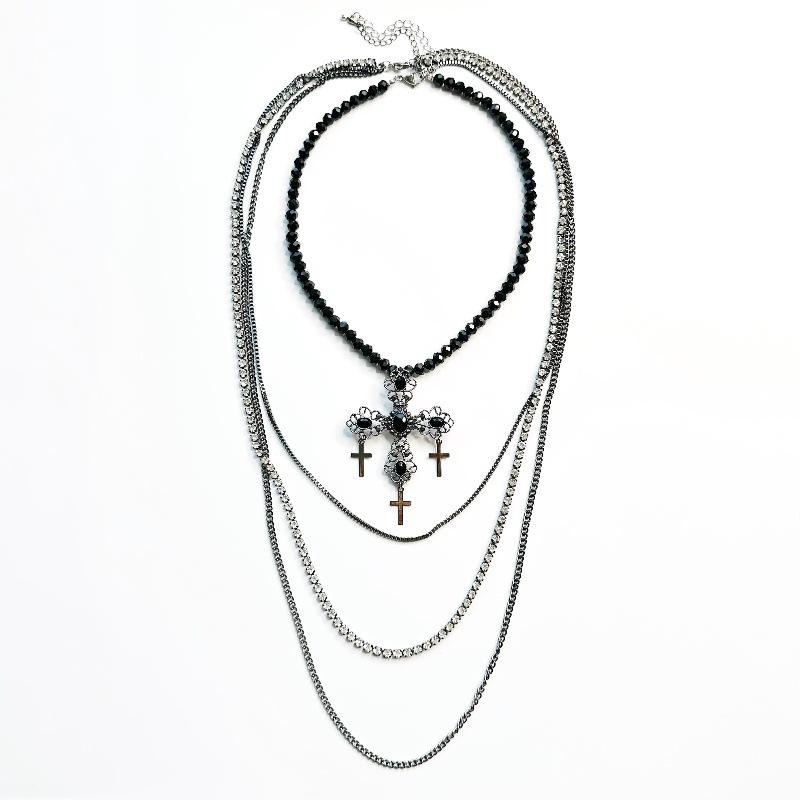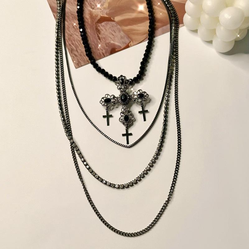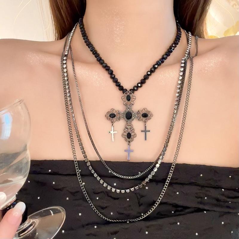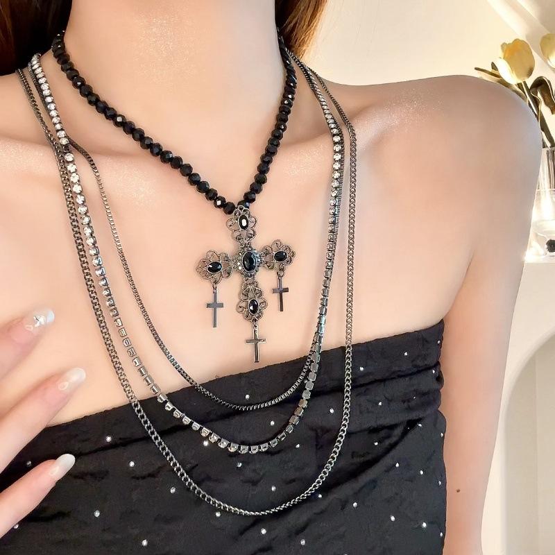 Collar de cuentas apiladas multicapa con diseño de cruz retro punk de Diablo, con diamantes, para mujer, estilo Spice Girl, personalizado, cadena de clavícula moderna